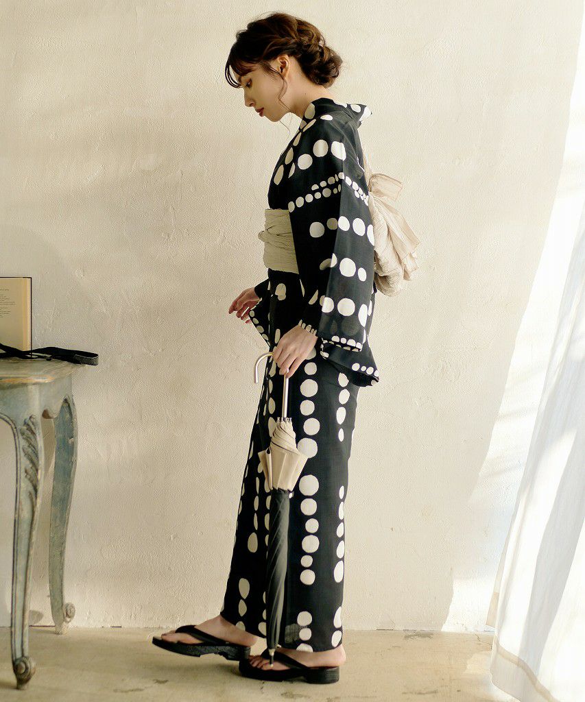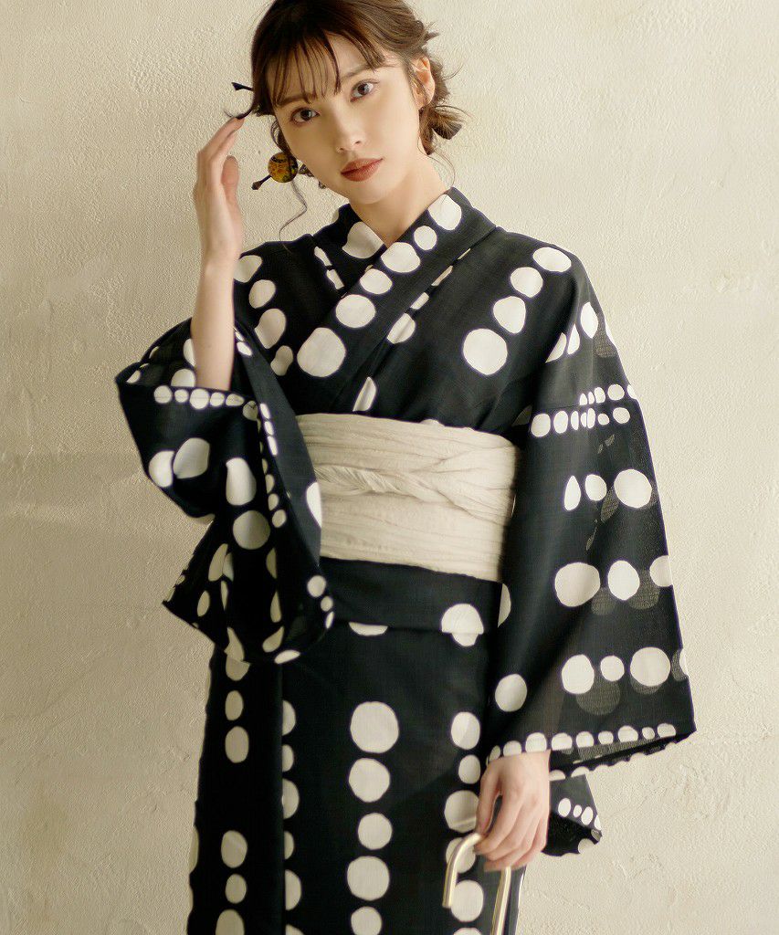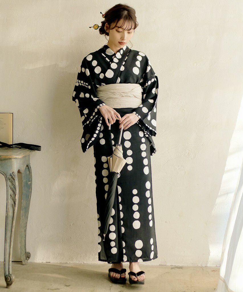 如月の椿(墨色) 2025 浴衣5点セット(ゆかた・帯・下駄・着付けマニュアル・腰ひも)