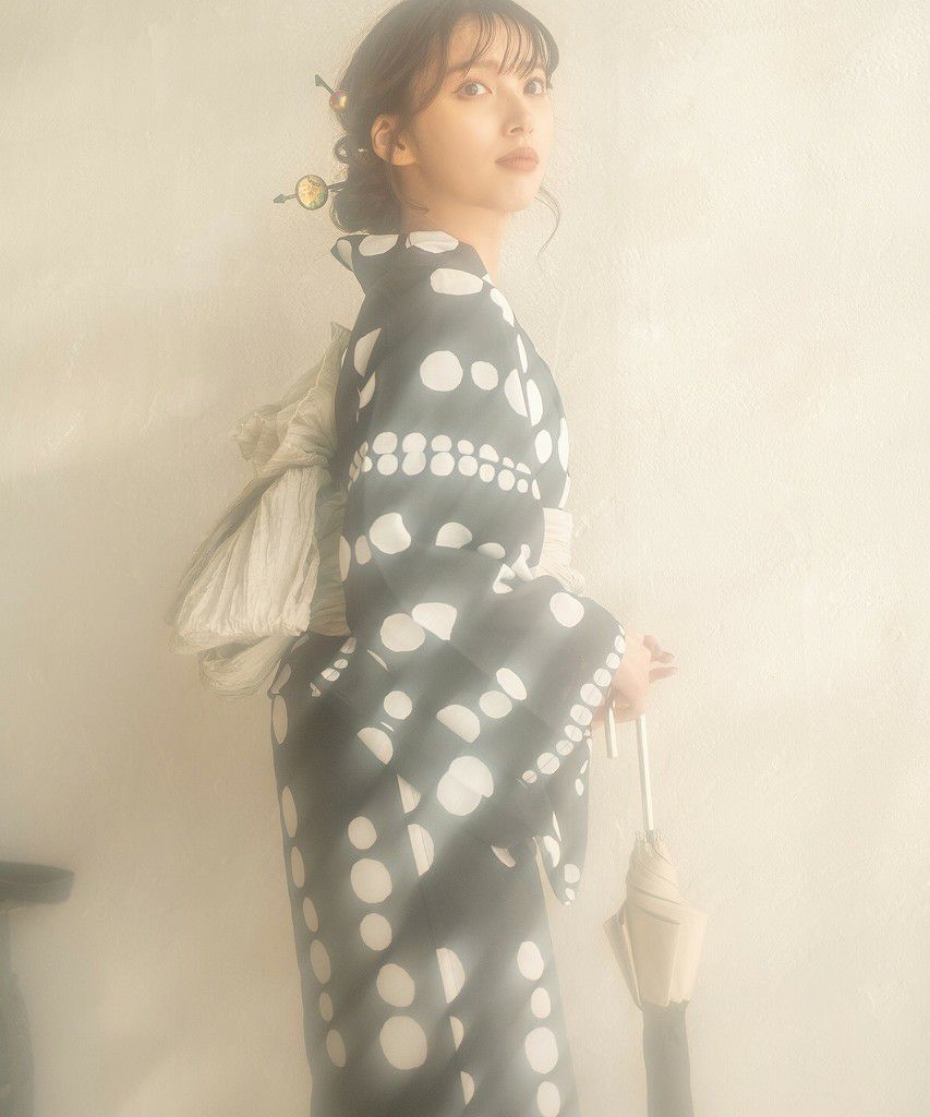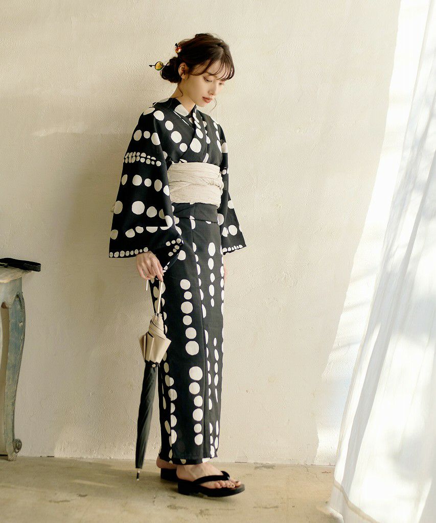 夏色の向日葵しらべ(墨色) 2025 浴衣5点セット(ゆかた・帯・下駄・着付けマニュアル・腰ひも)