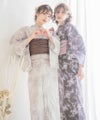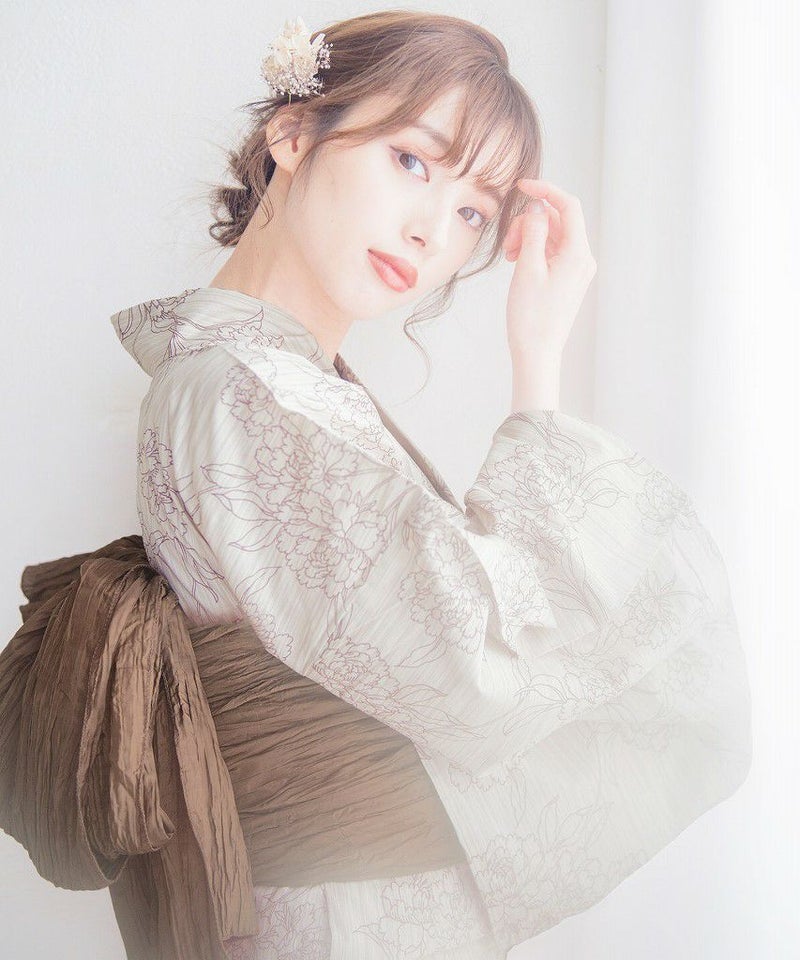浴衣5点セット(ゆかた・帯・下駄・着付けマニュアル・腰ひも) メルティラテ