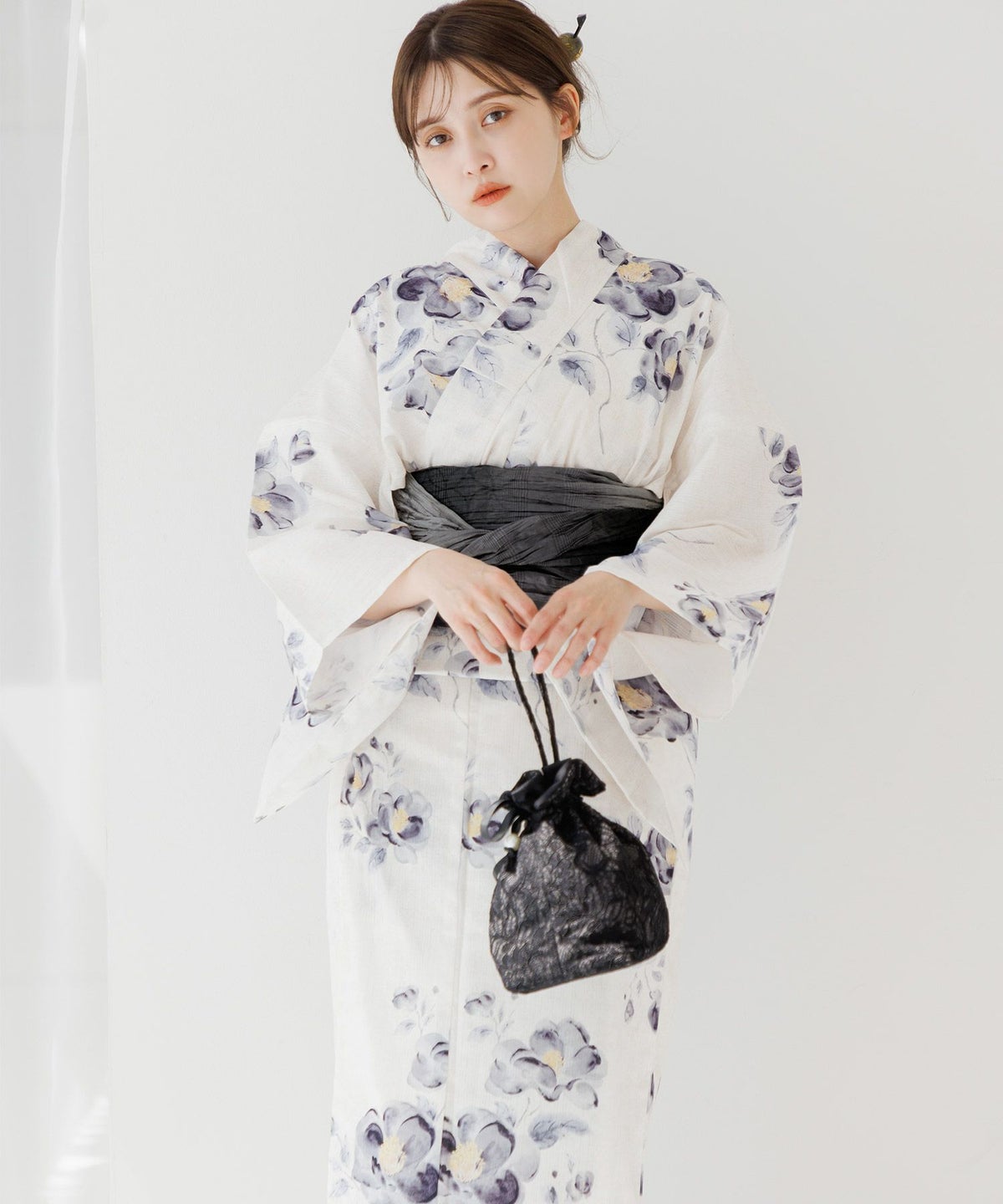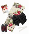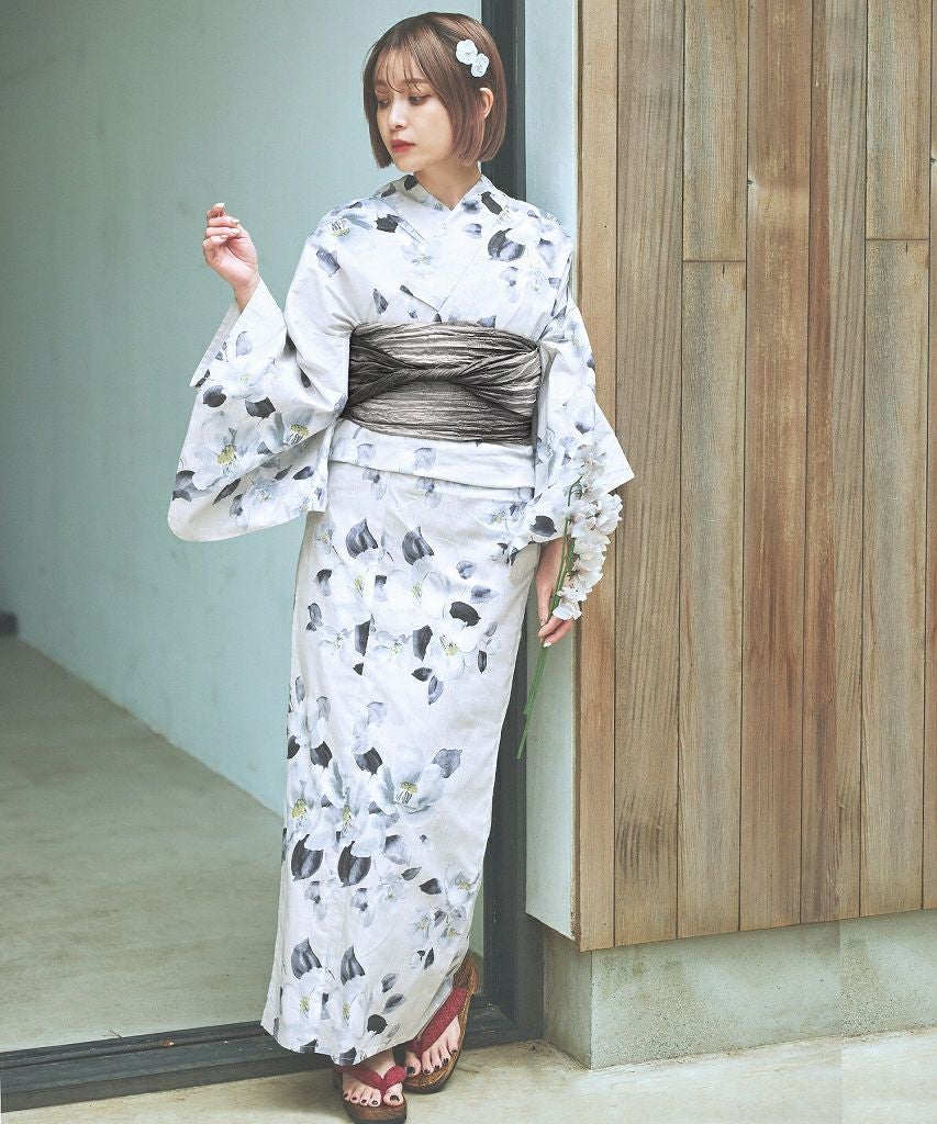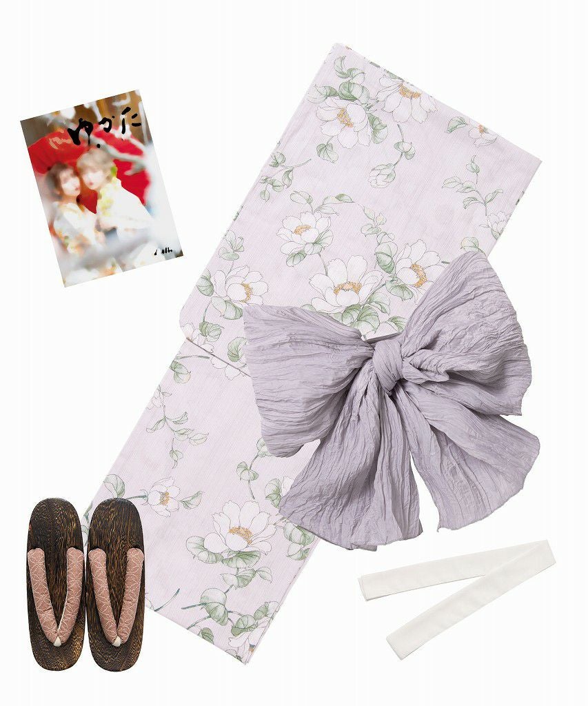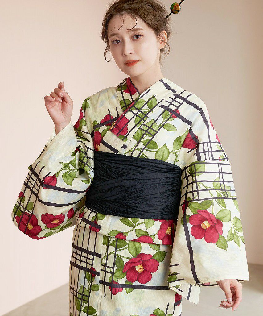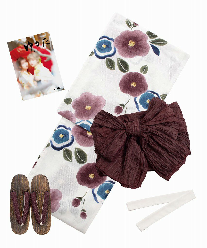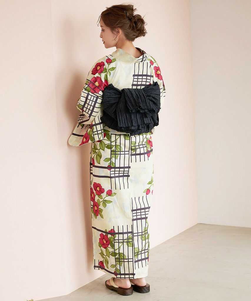 浴衣5点セット(ゆかた・帯・下駄・着付けマニュアル・腰ひも) 浮世の丸椿