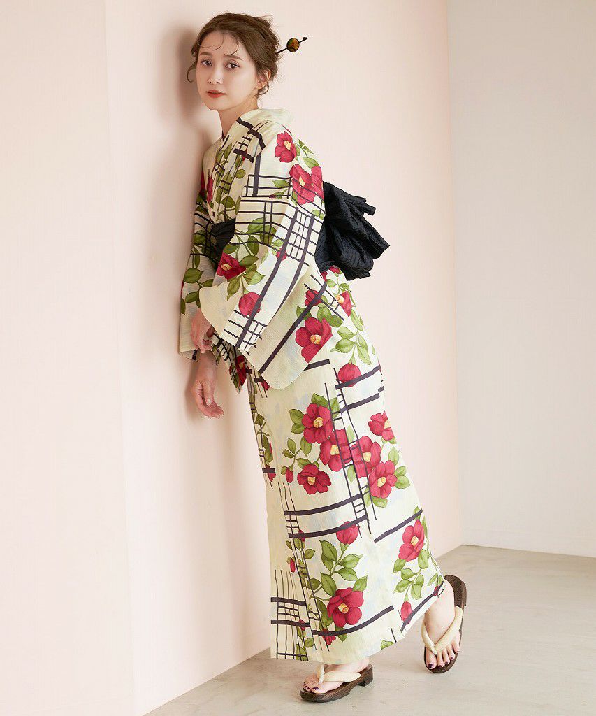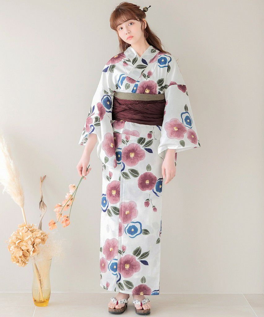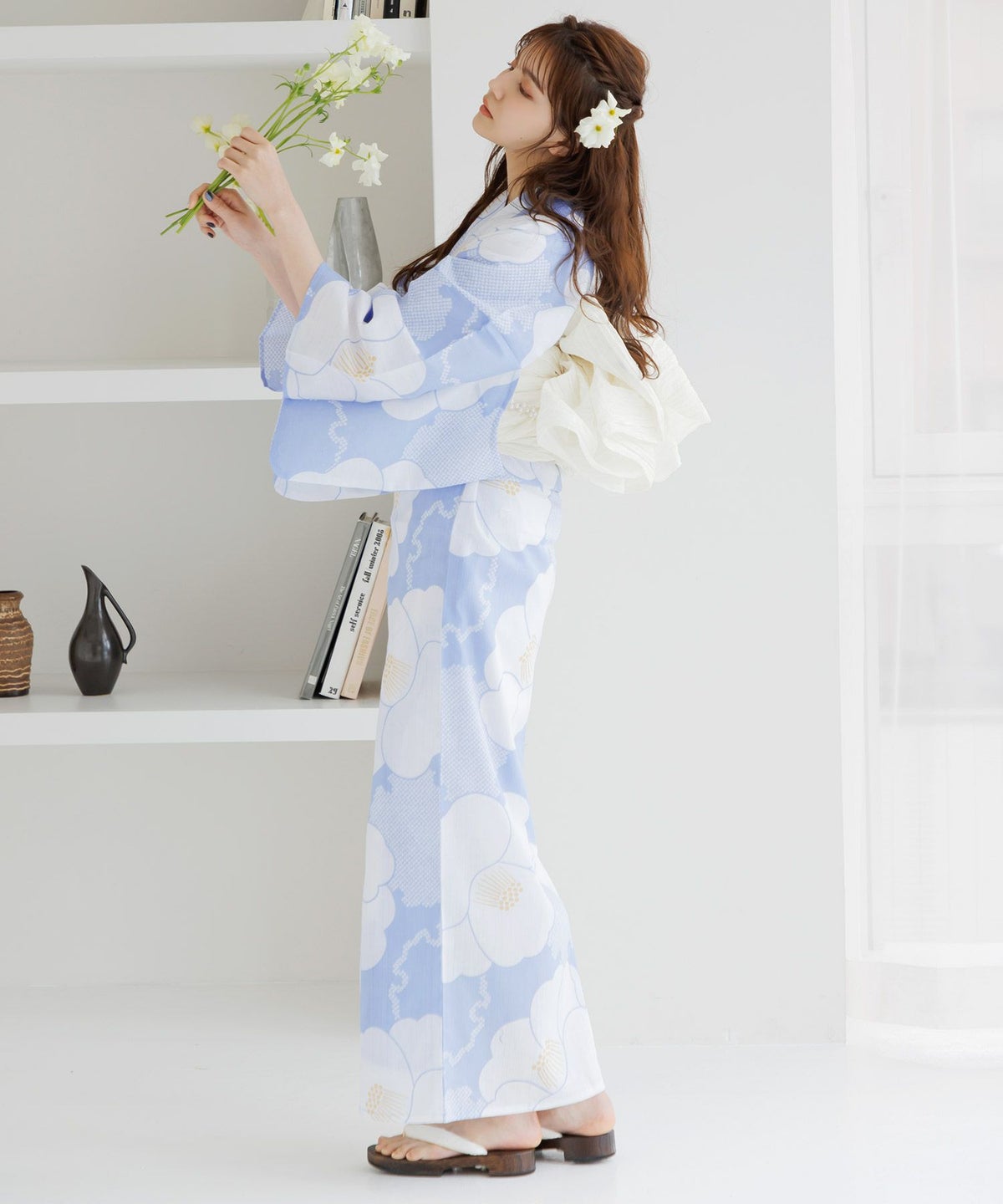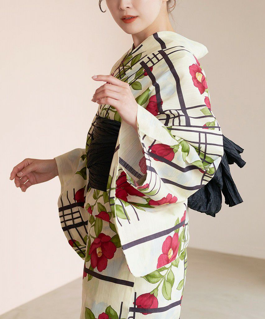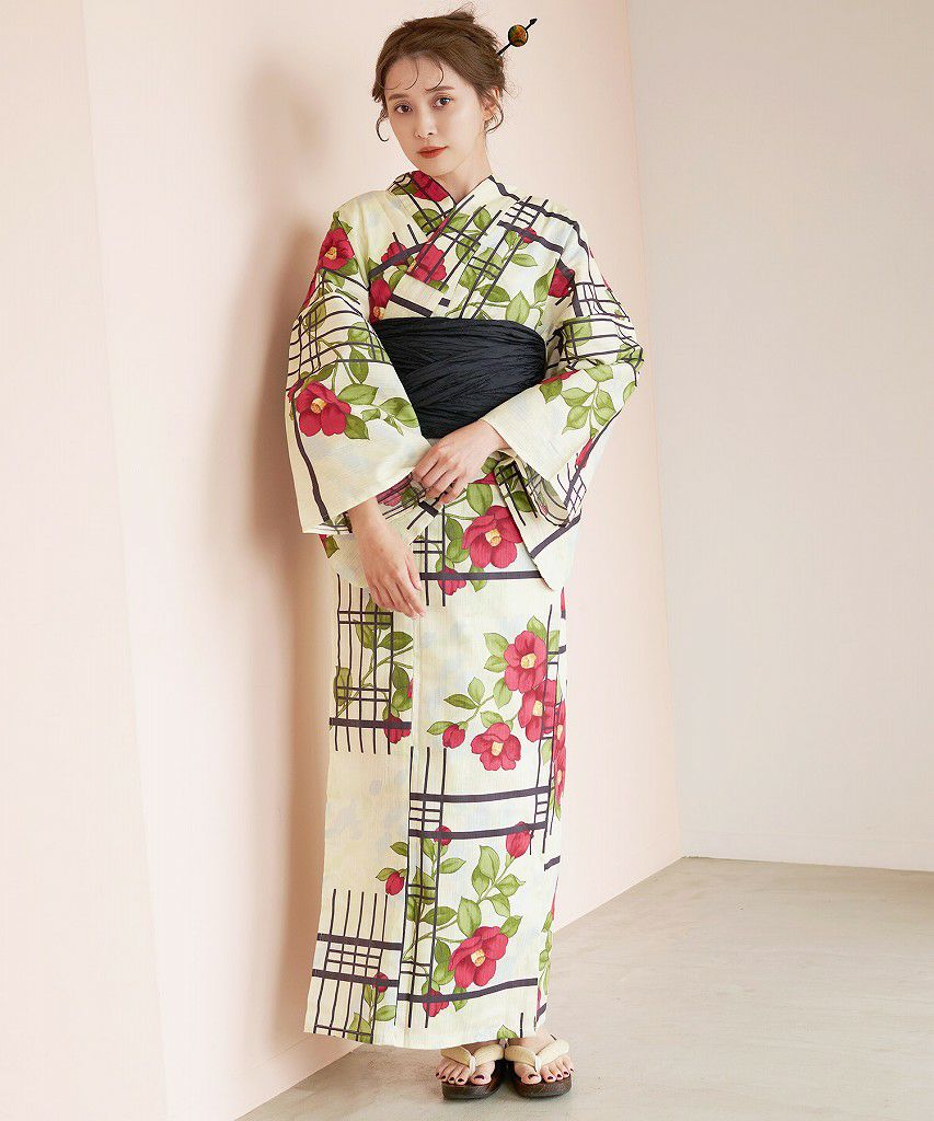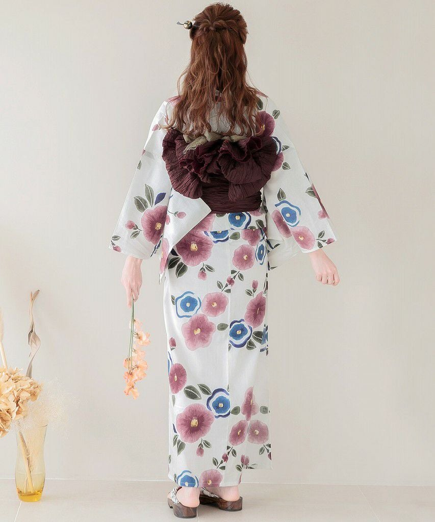 浴衣5点セット(ゆかた・帯・下駄・着付けマニュアル・腰ひも) 浮世の丸椿