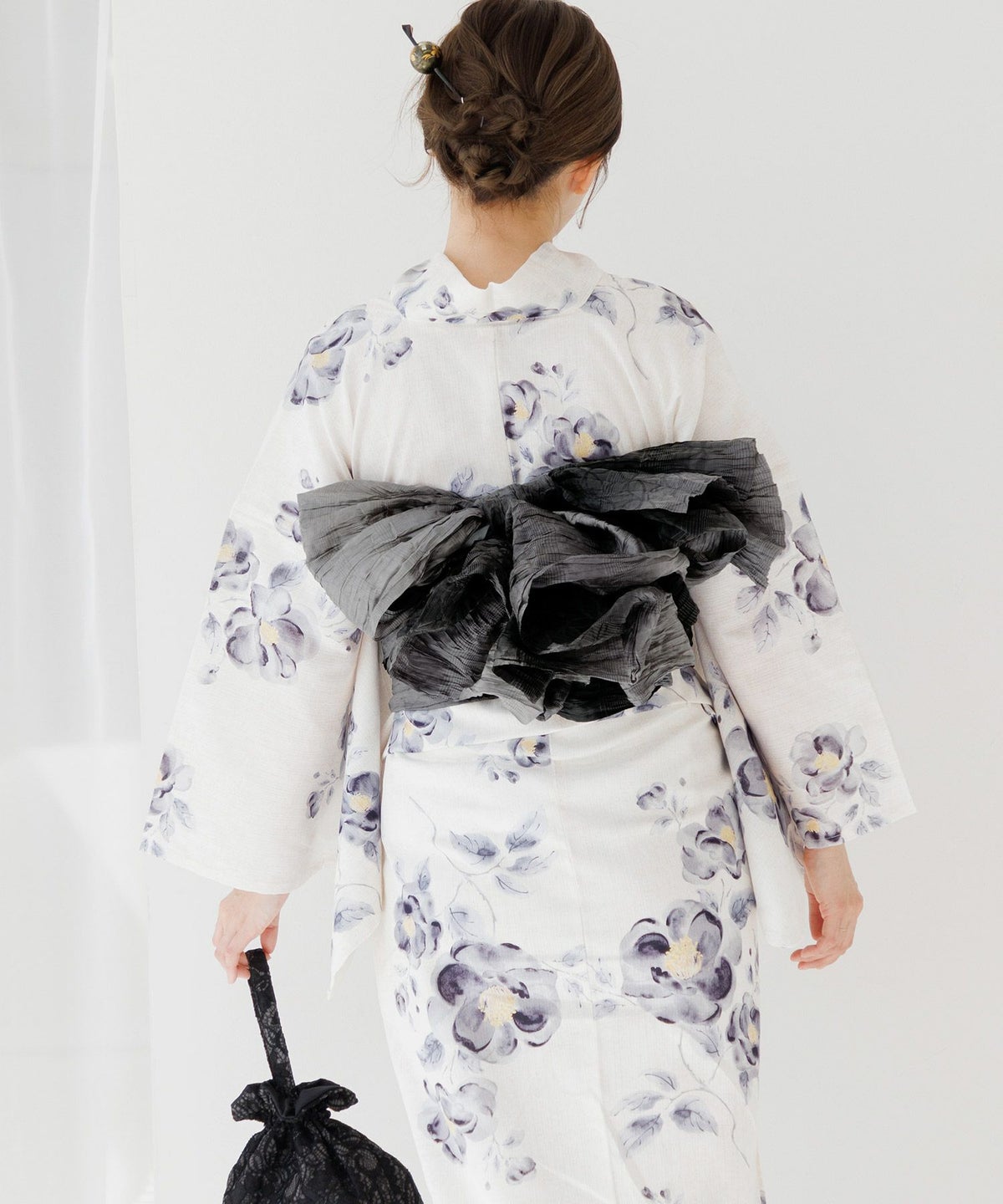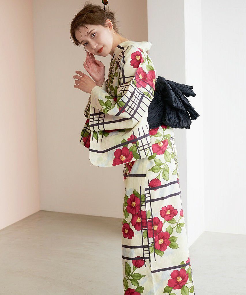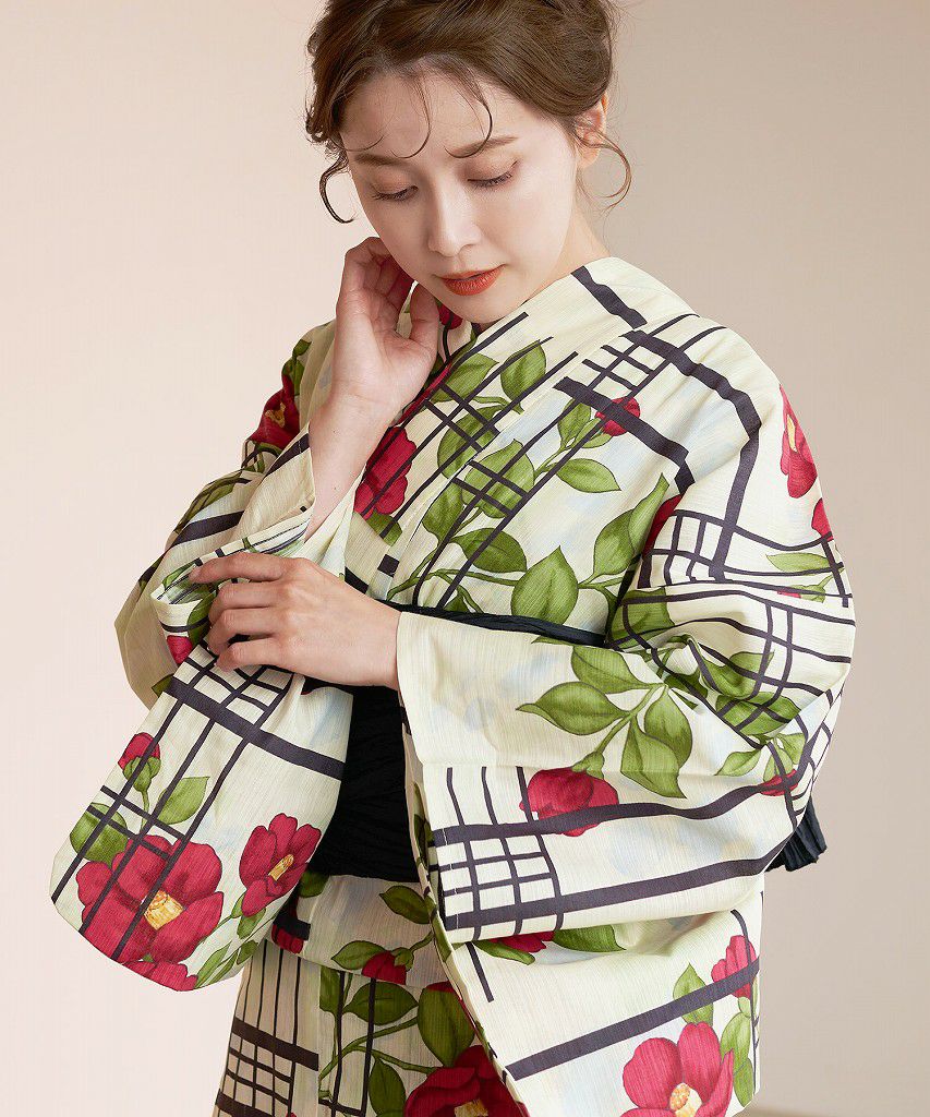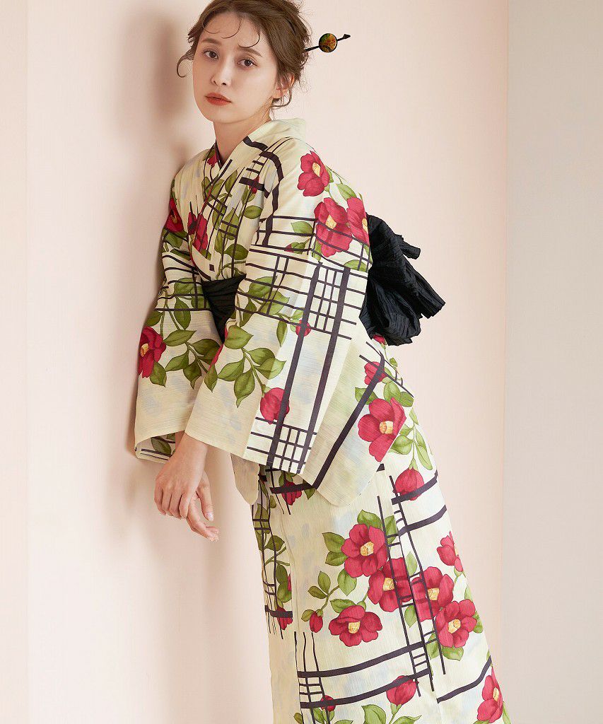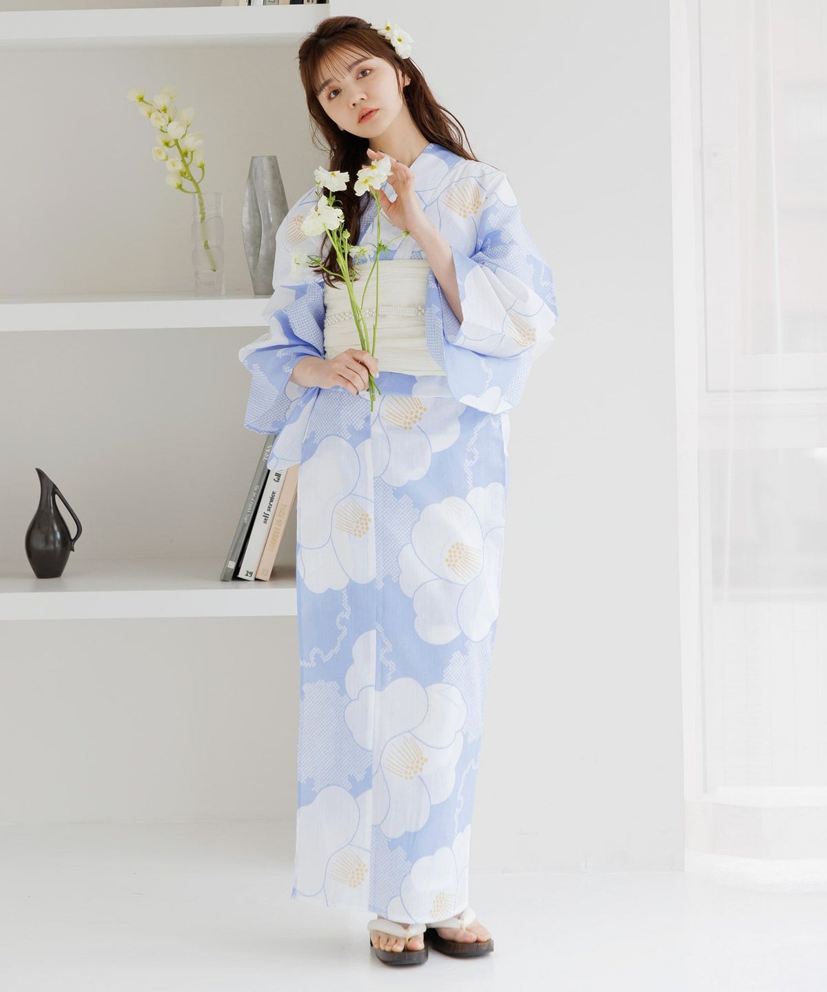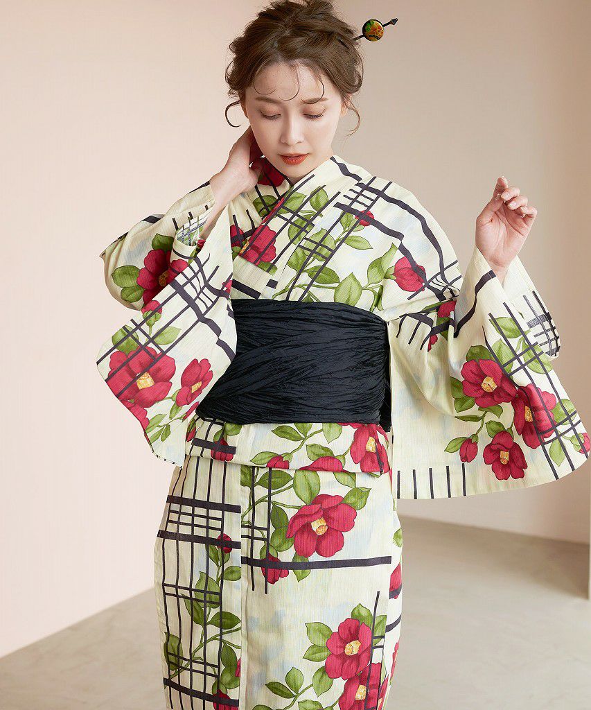 浴衣5点セット(ゆかた・帯・下駄・着付けマニュアル・腰ひも) 浮世の丸椿