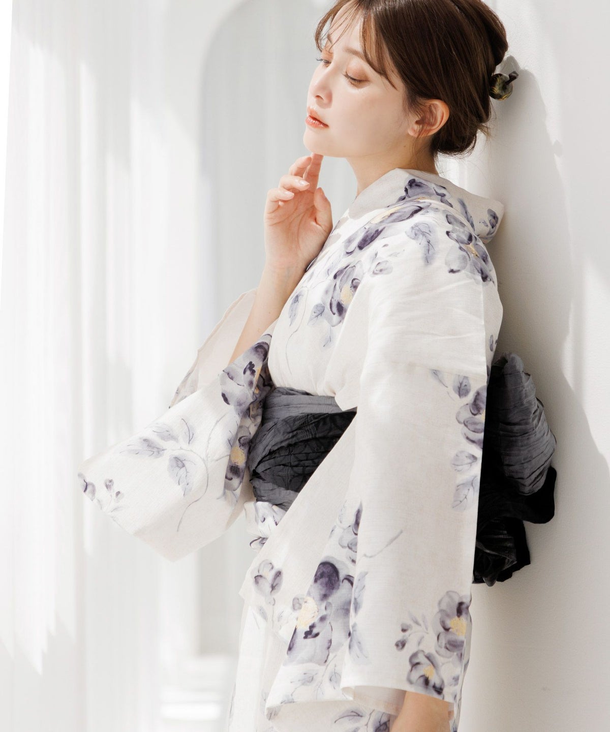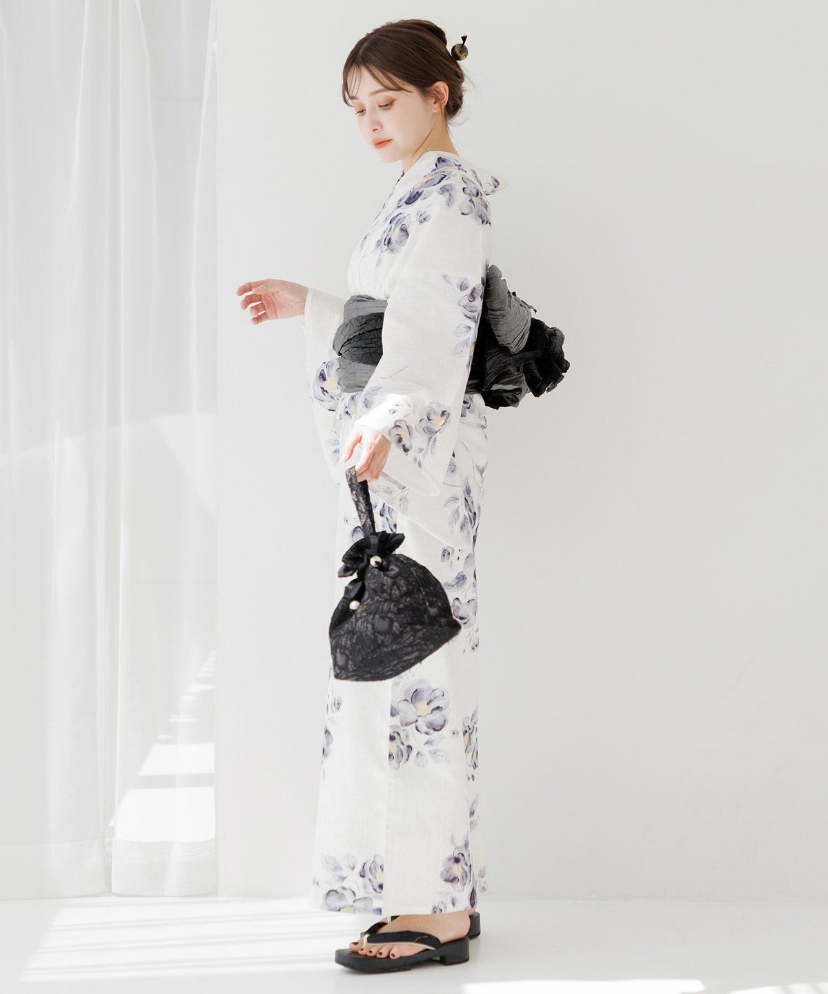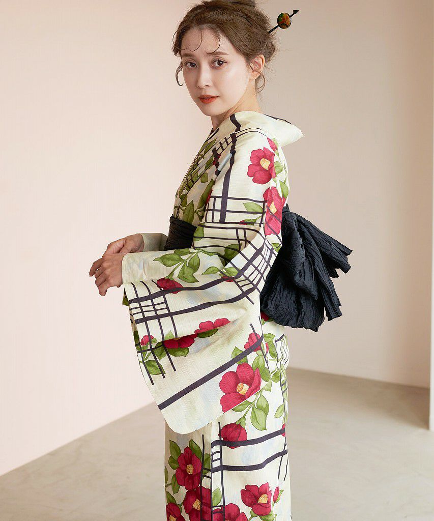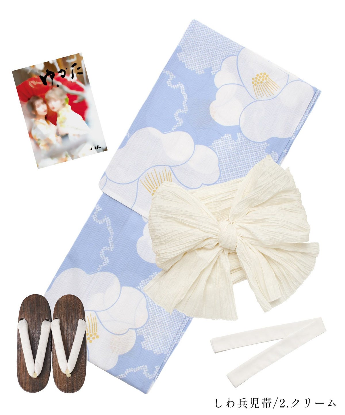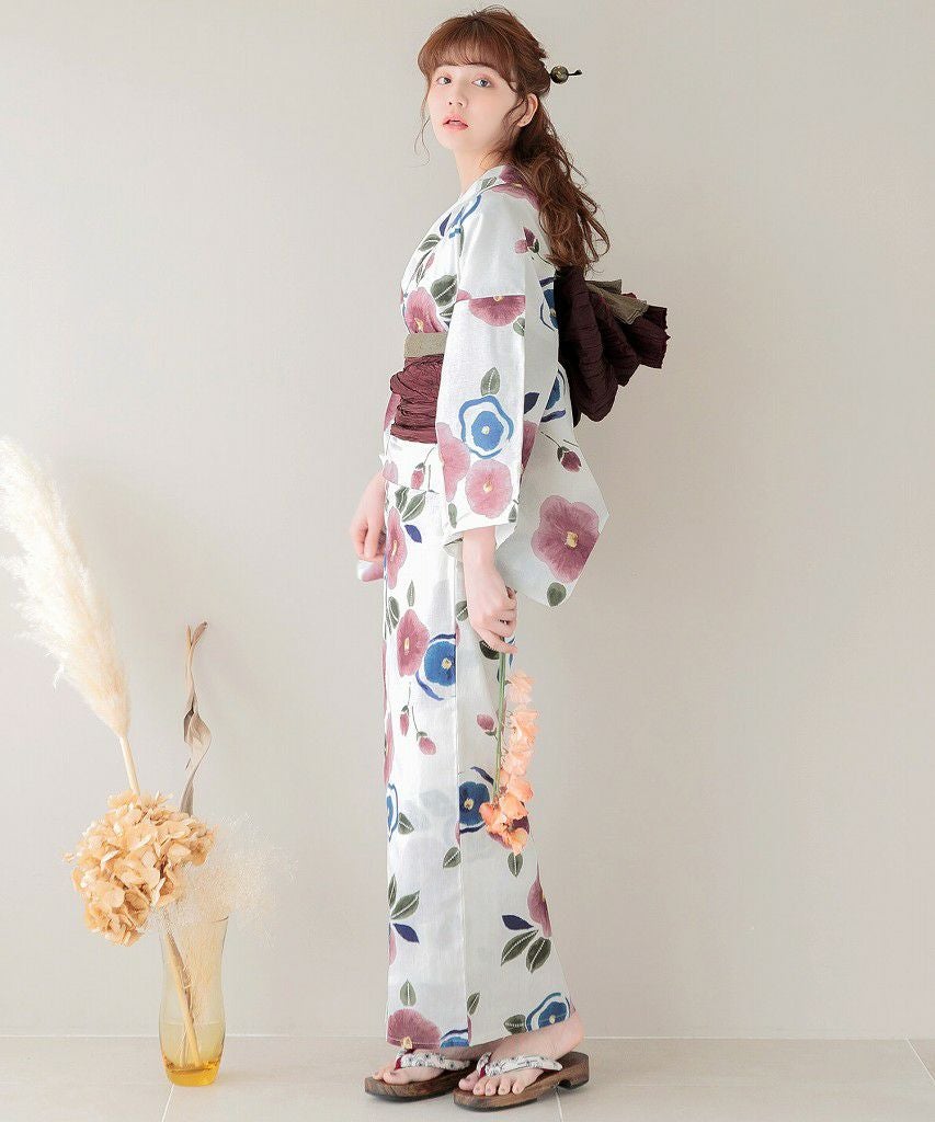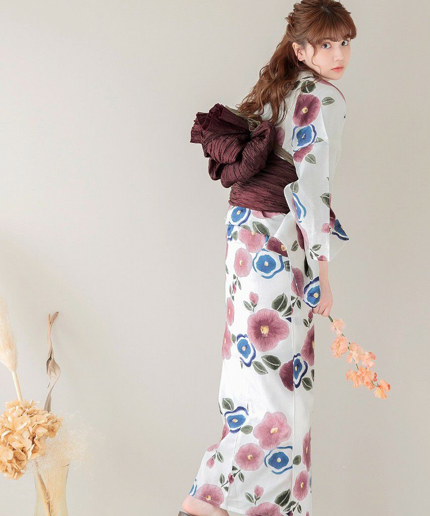 浴衣5点セット(ゆかた・帯・下駄・着付けマニュアル・腰ひも) 浮世の丸椿