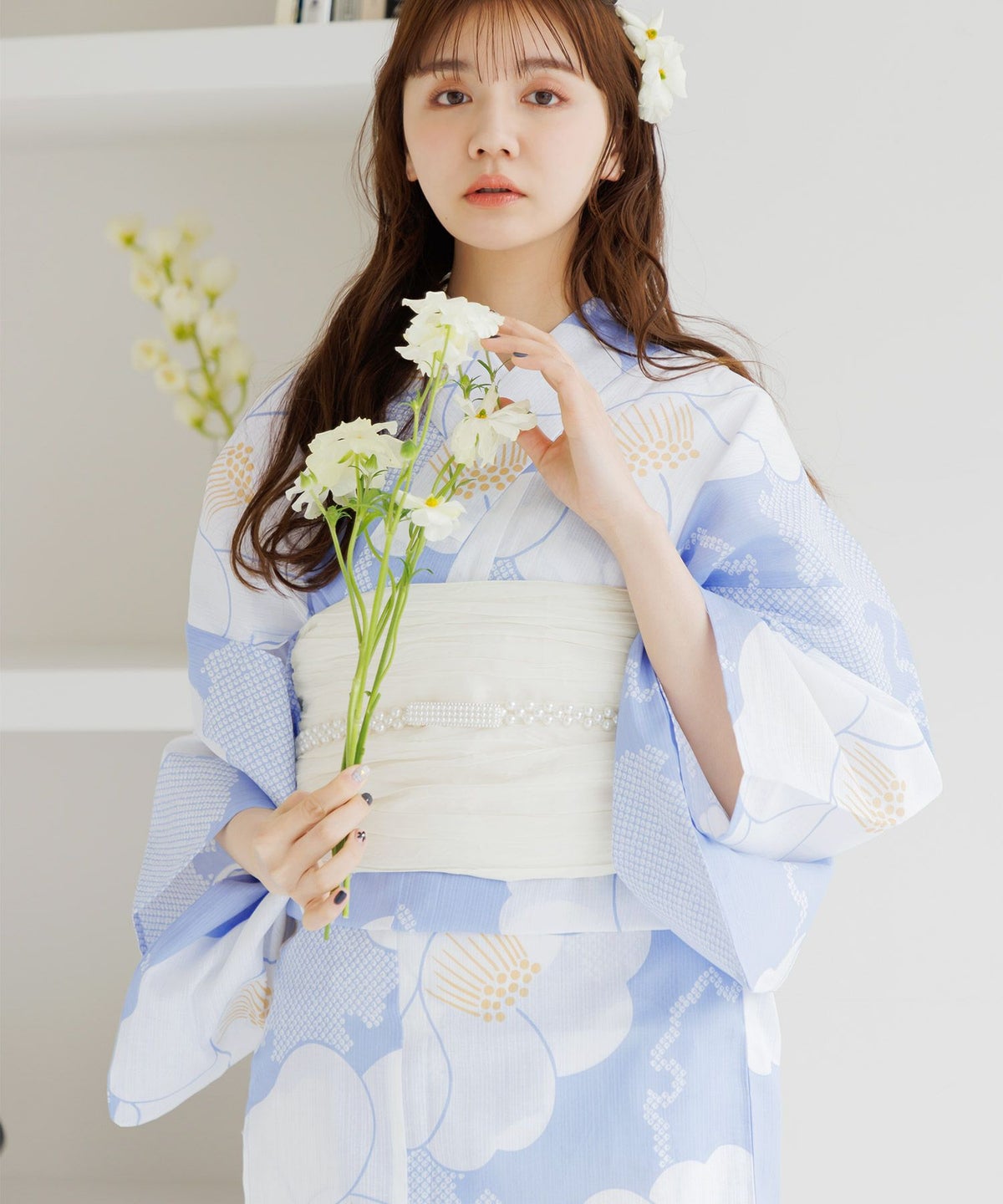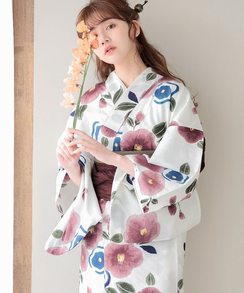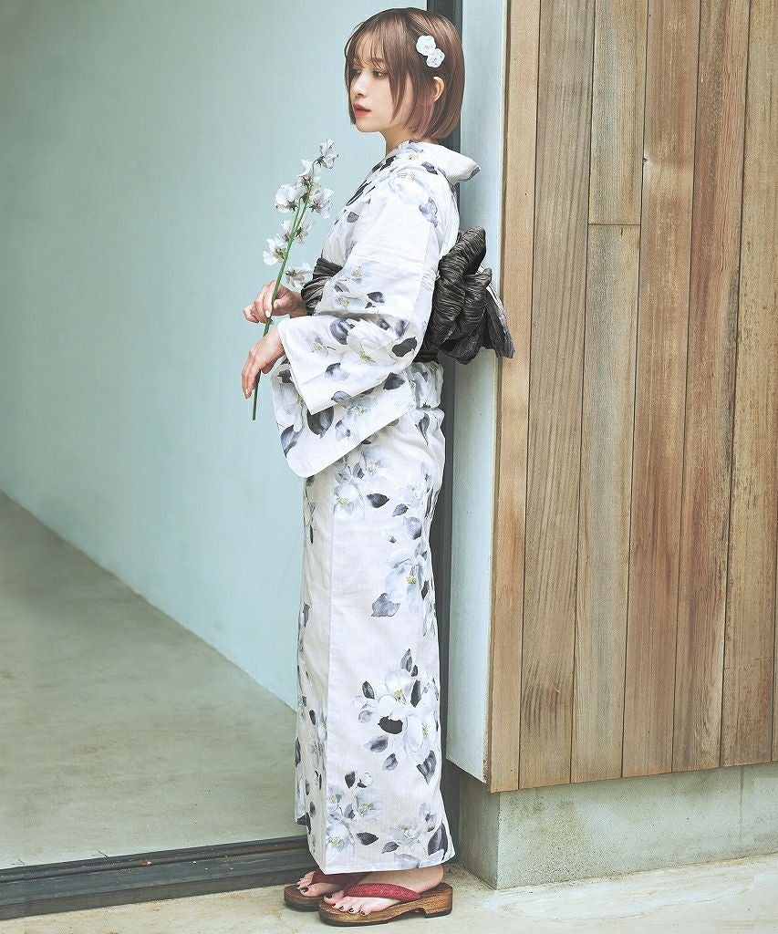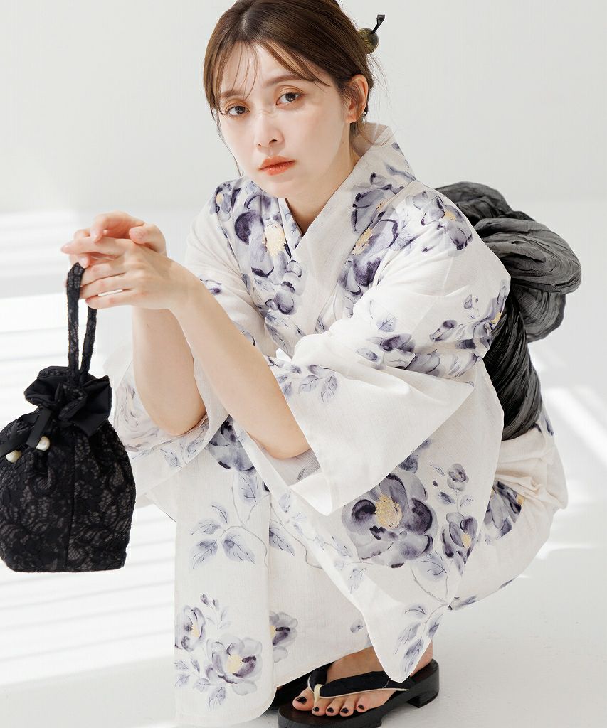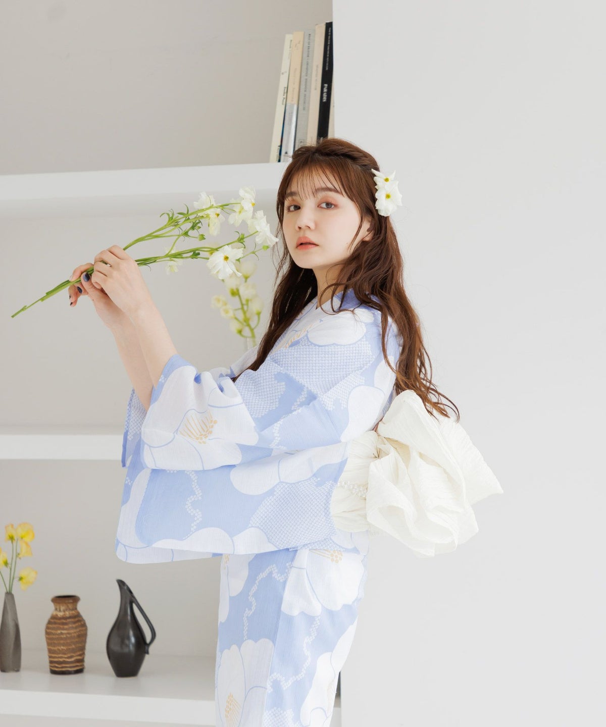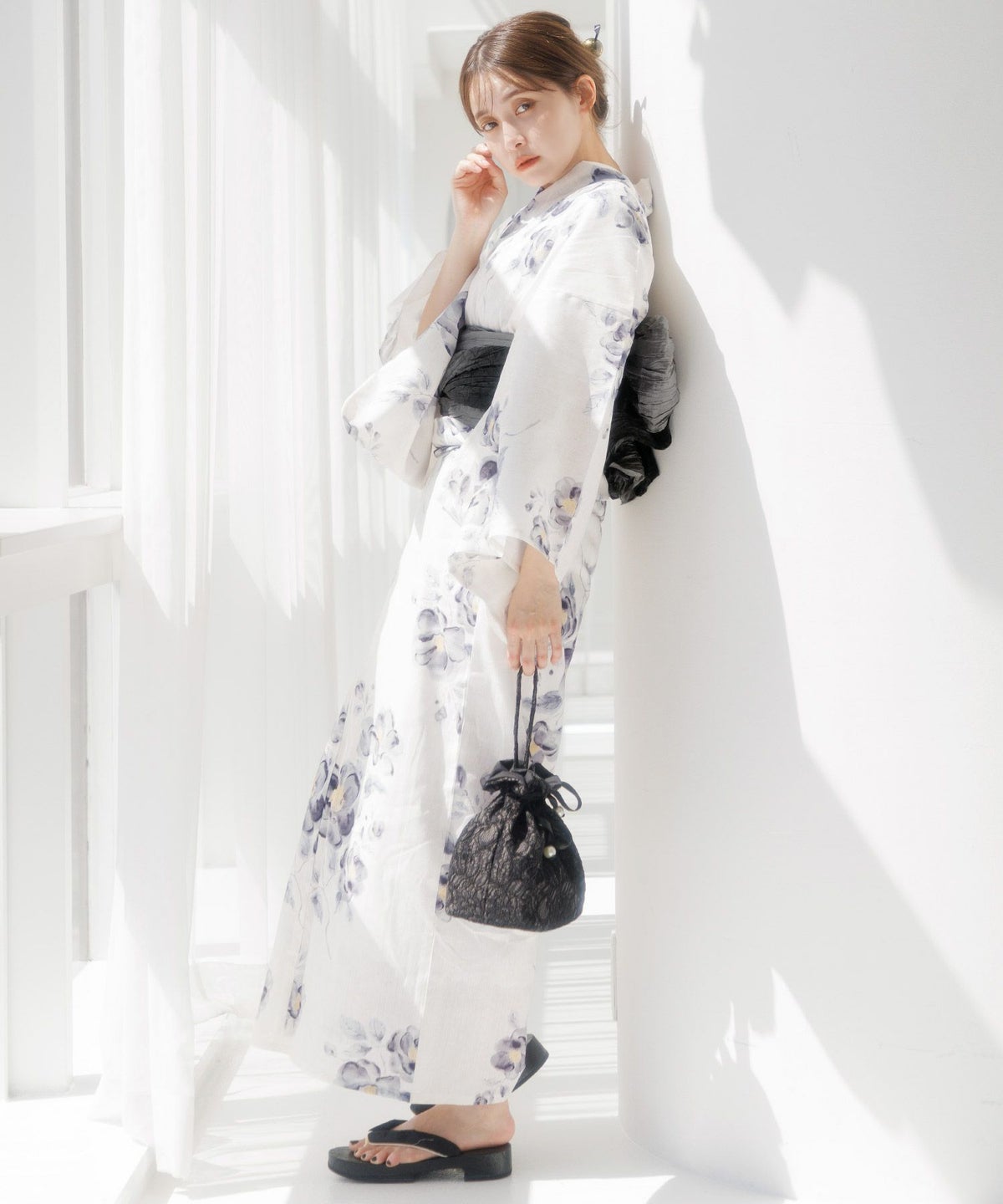 浴衣5点セット(ゆかた・帯・下駄・着付けマニュアル・腰ひも) 浮世の丸椿