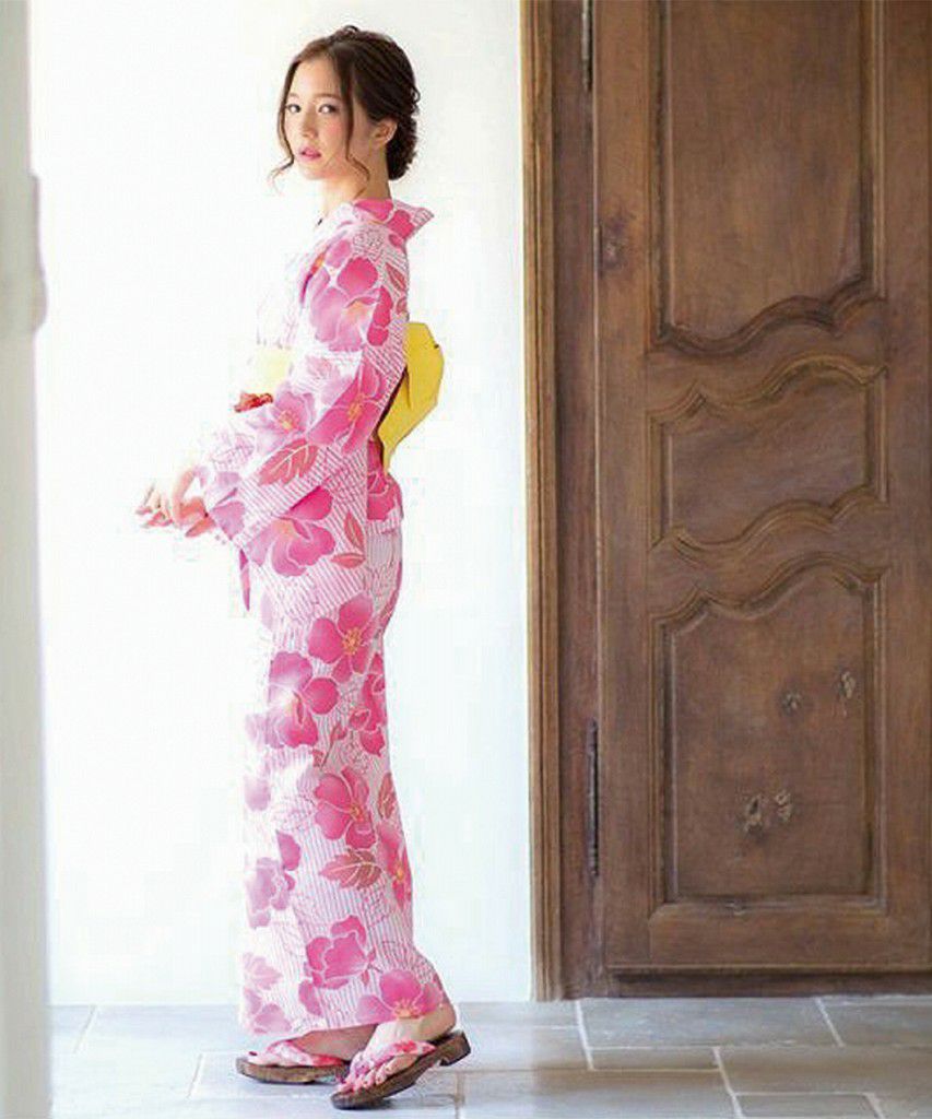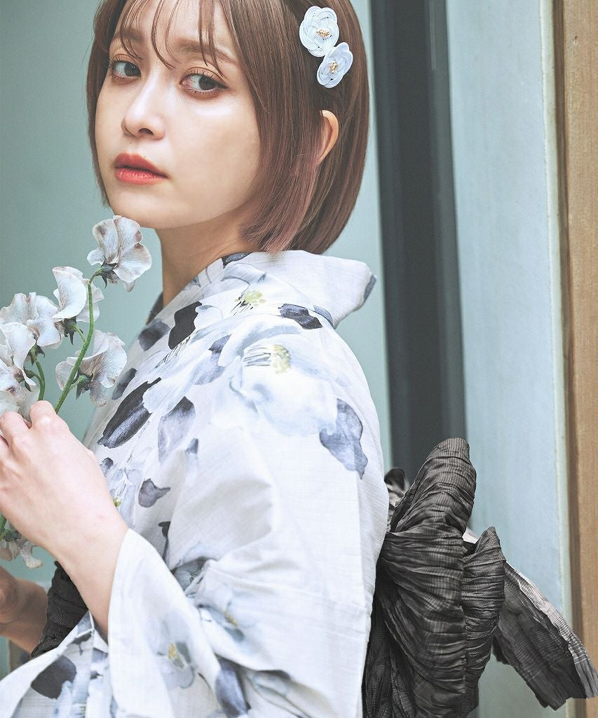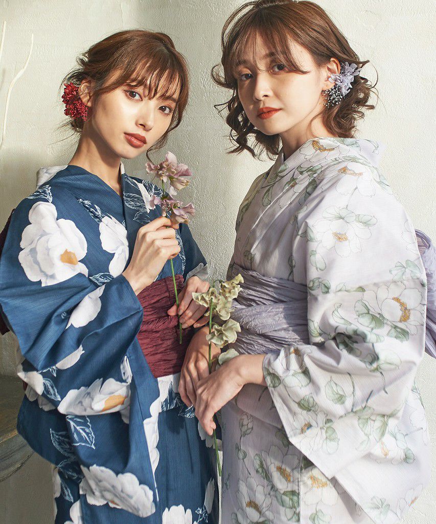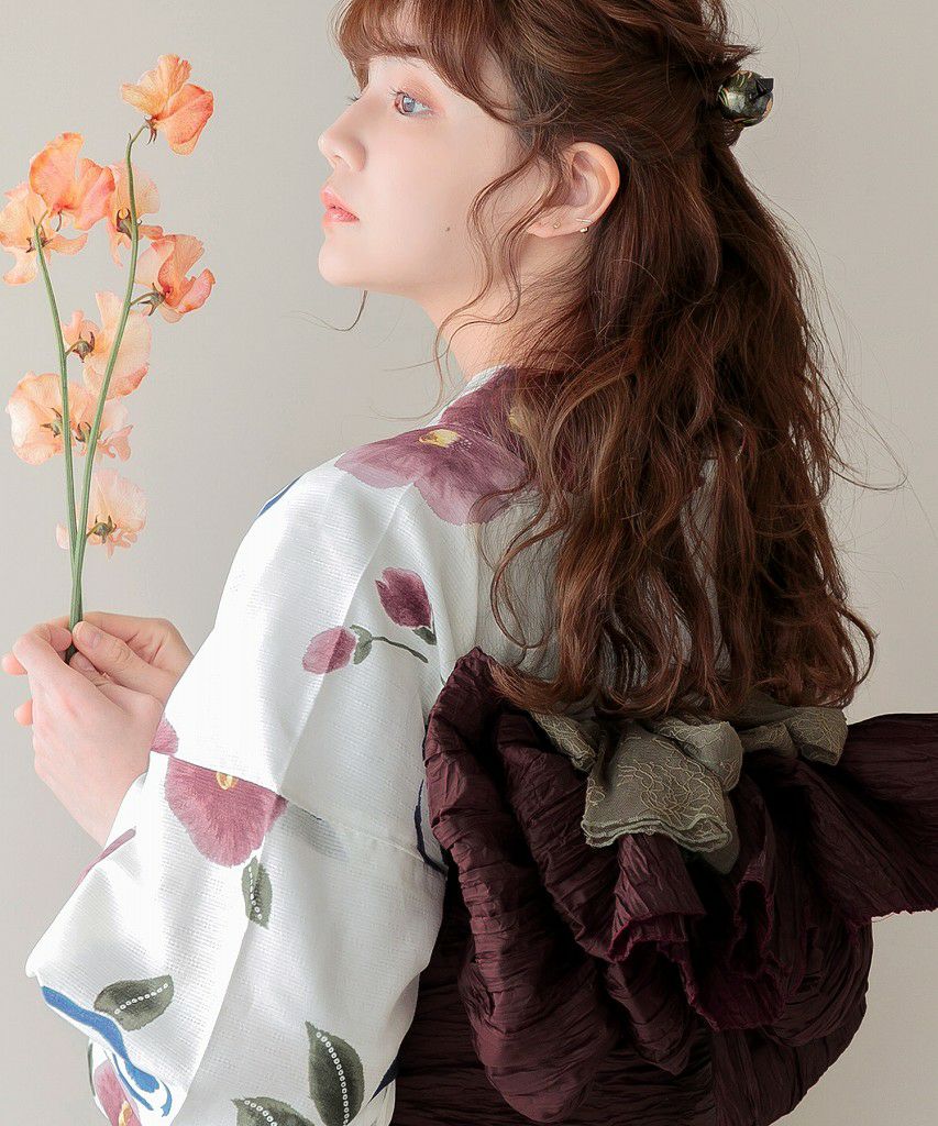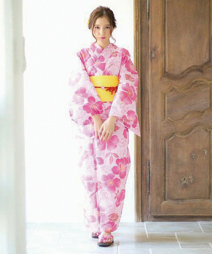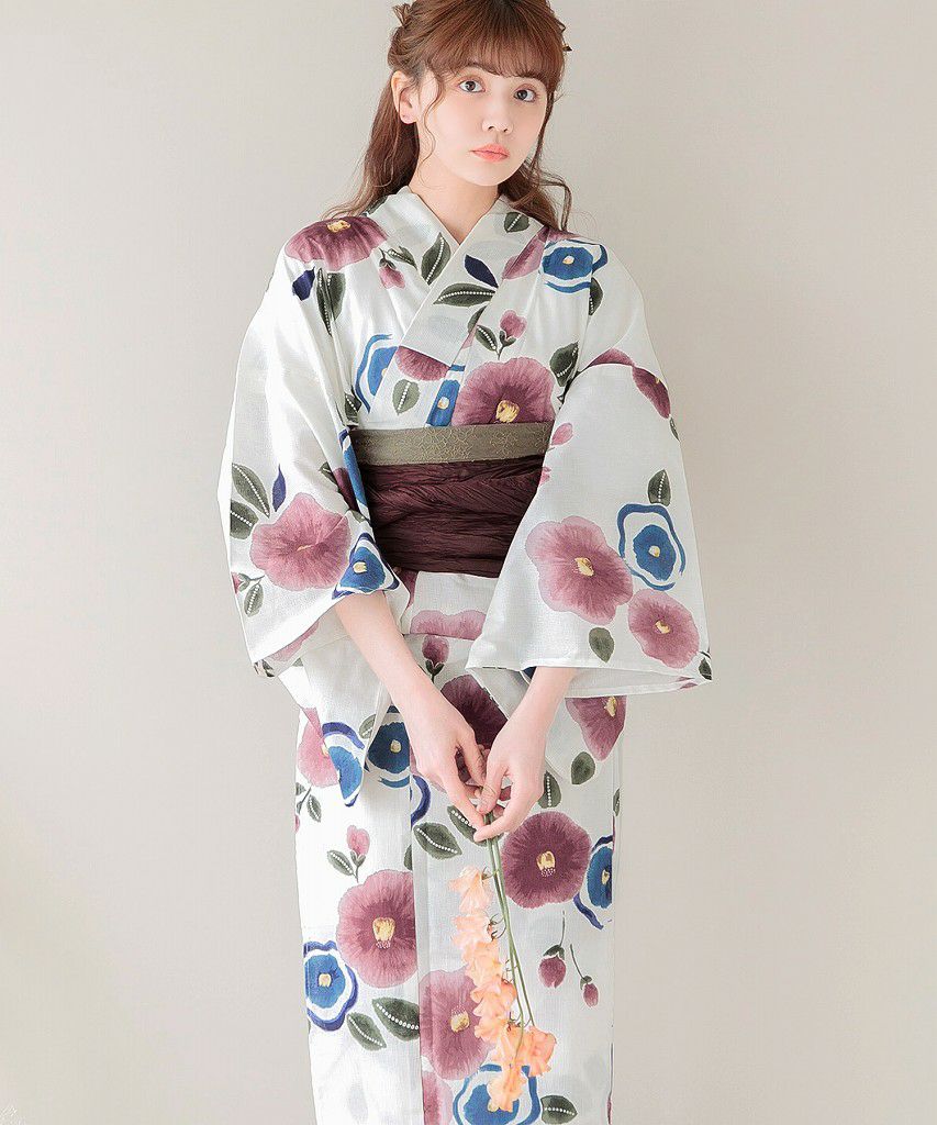 浴衣5点セット(ゆかた・帯・下駄・着付けマニュアル・腰ひも) 浮世の丸椿