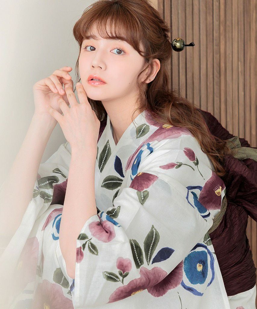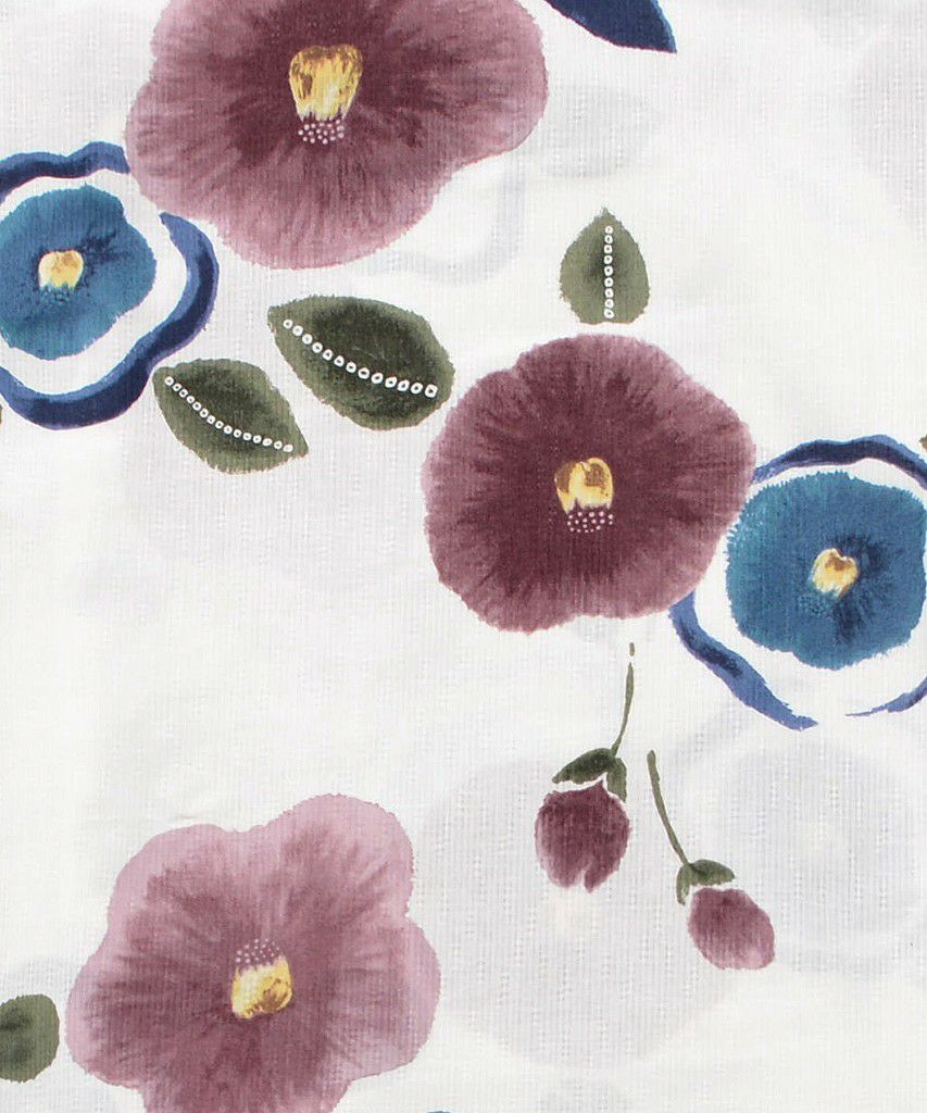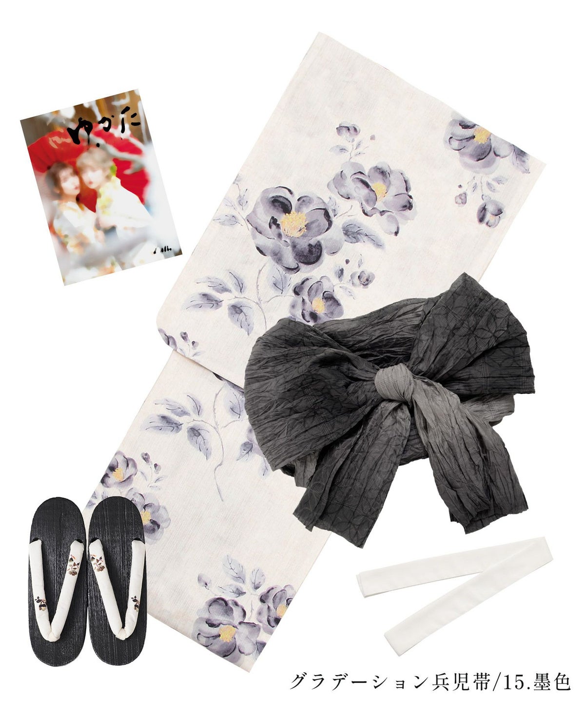 浴衣5点セット(ゆかた・帯・下駄・着付けマニュアル・腰ひも) はんなり水彩椿(瞑)