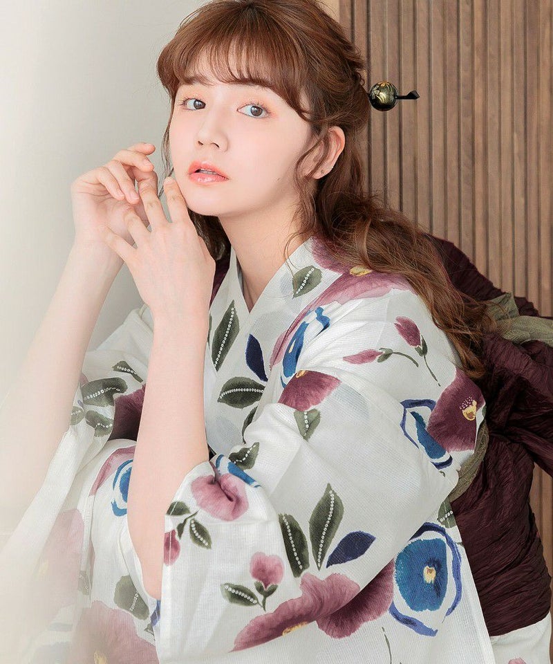 浴衣5点セット(ゆかた・帯・下駄・着付けマニュアル・腰ひも) 浮世の丸椿