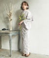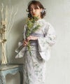浴衣5点セット(ゆかた・帯・下駄・着付けマニュアル・腰ひも) 薄鈍色の椿ちらし
