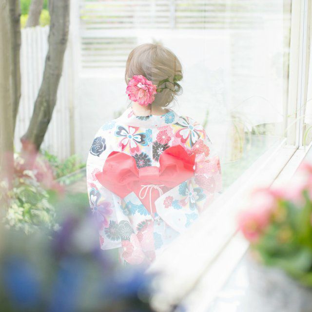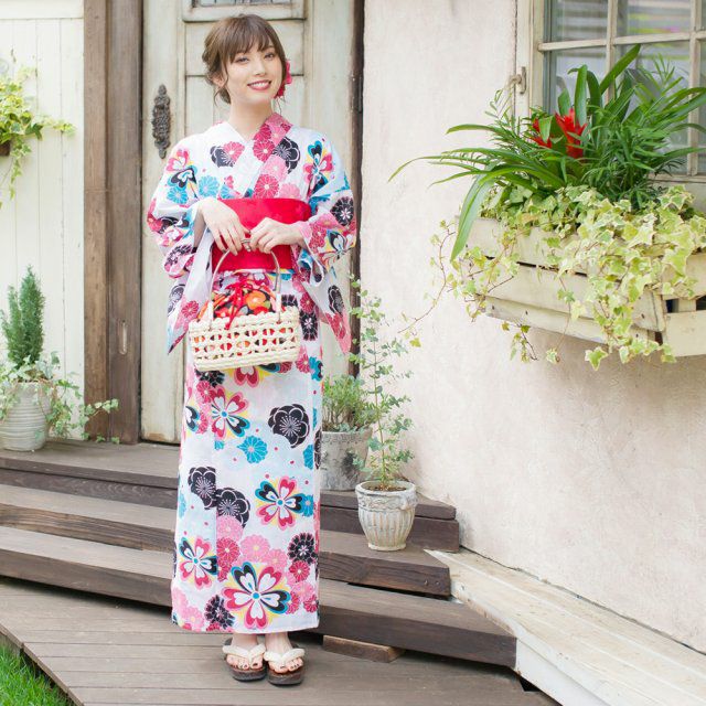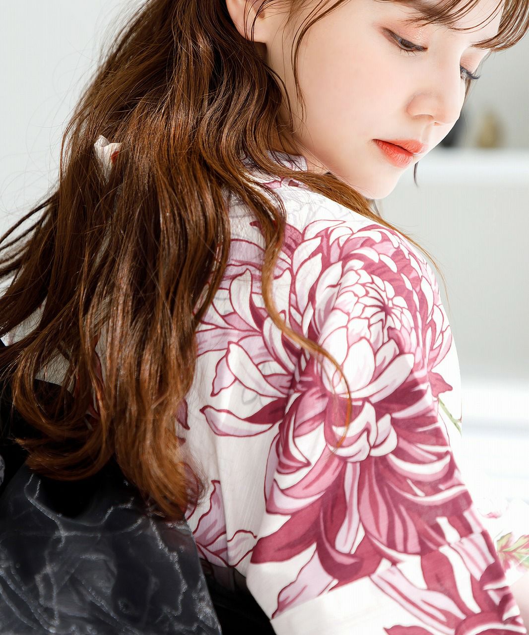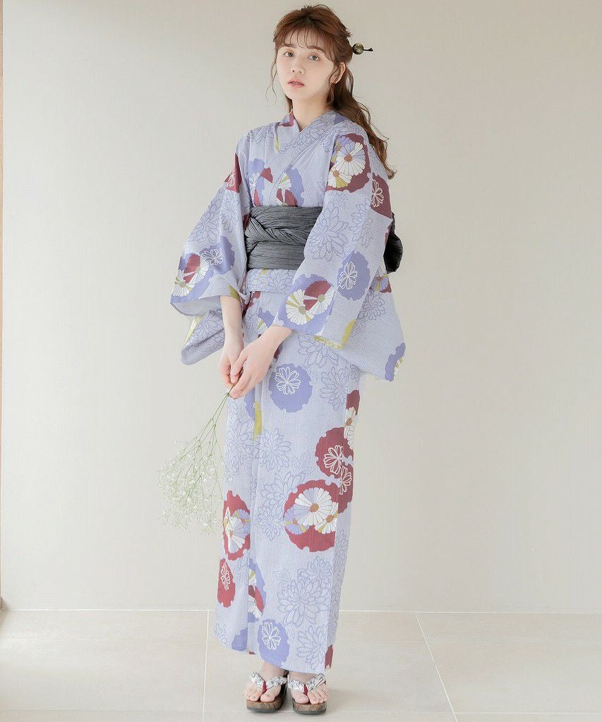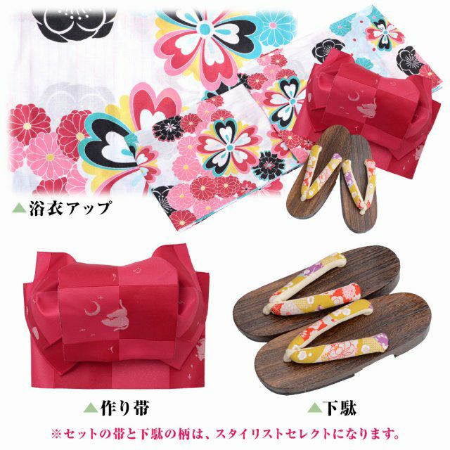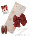 浴衣5点セット(ゆかた・帯・下駄・着付けマニュアル・腰ひも) 大正ロマン手毬菊