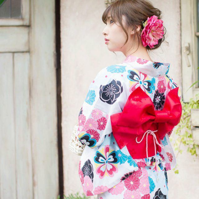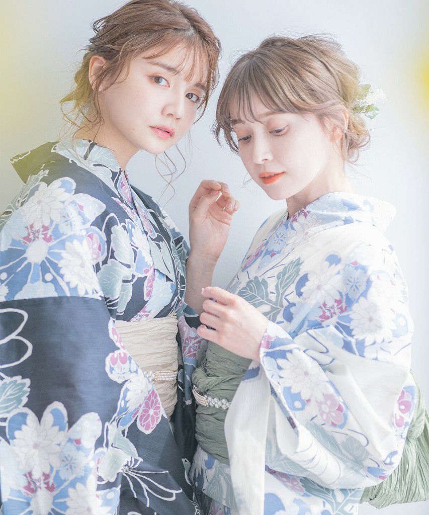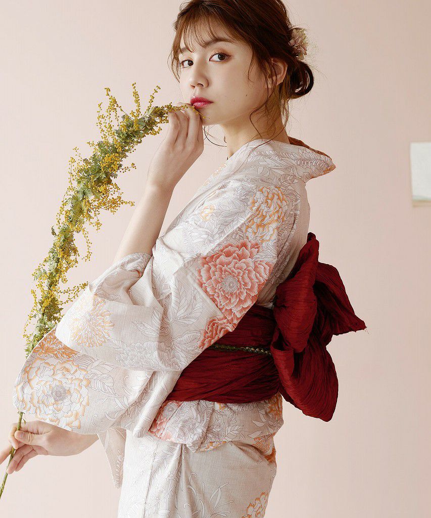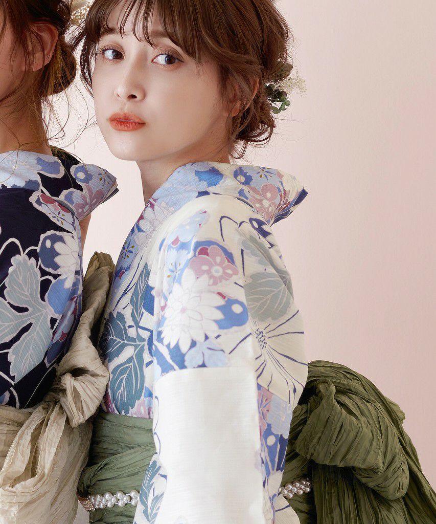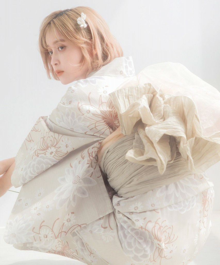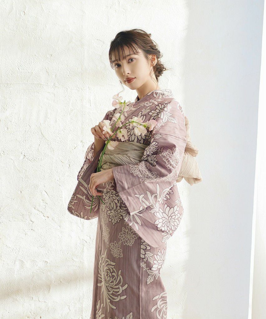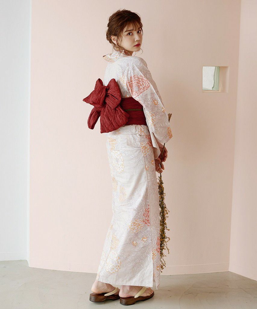 浴衣5点セット(ゆかた・帯・下駄・着付けマニュアル・腰ひも) 梅見月の菊ちらし