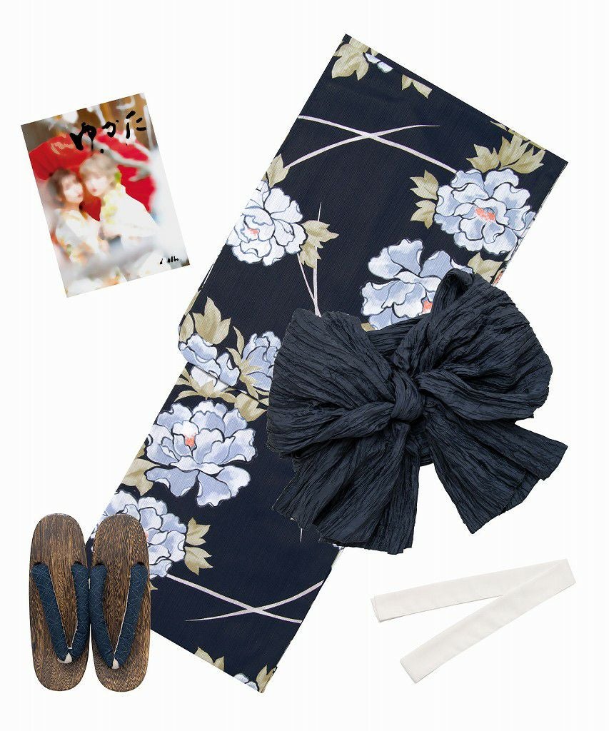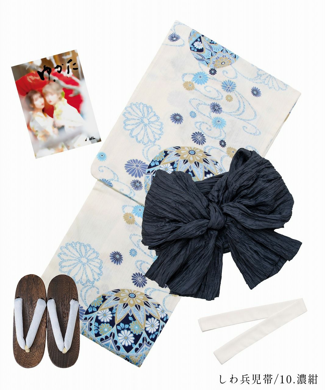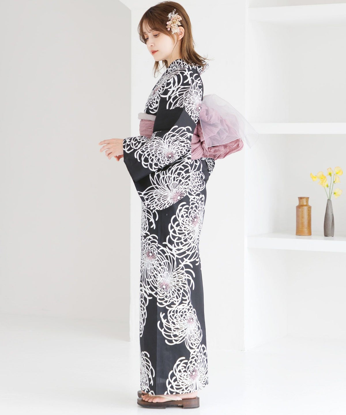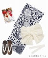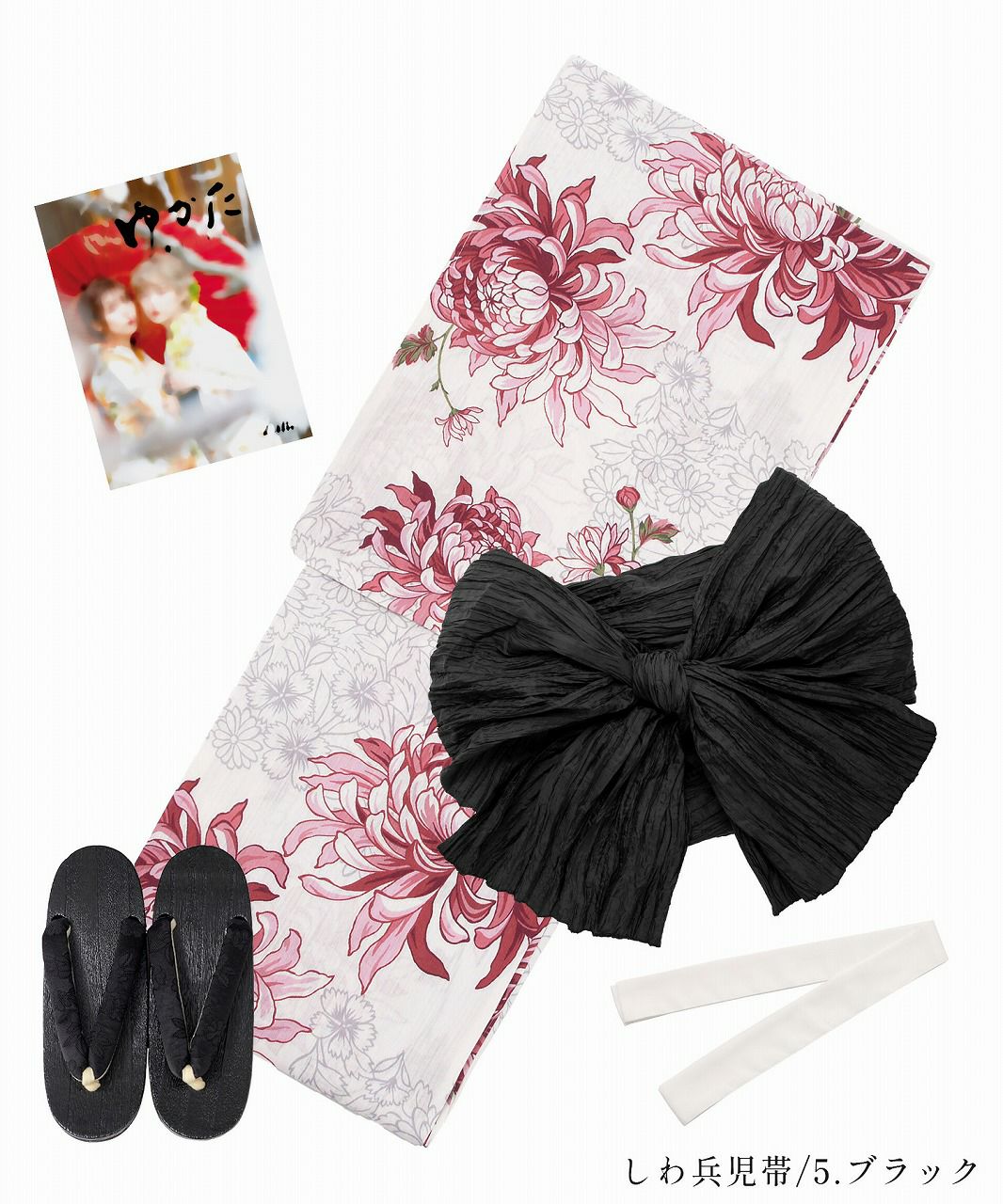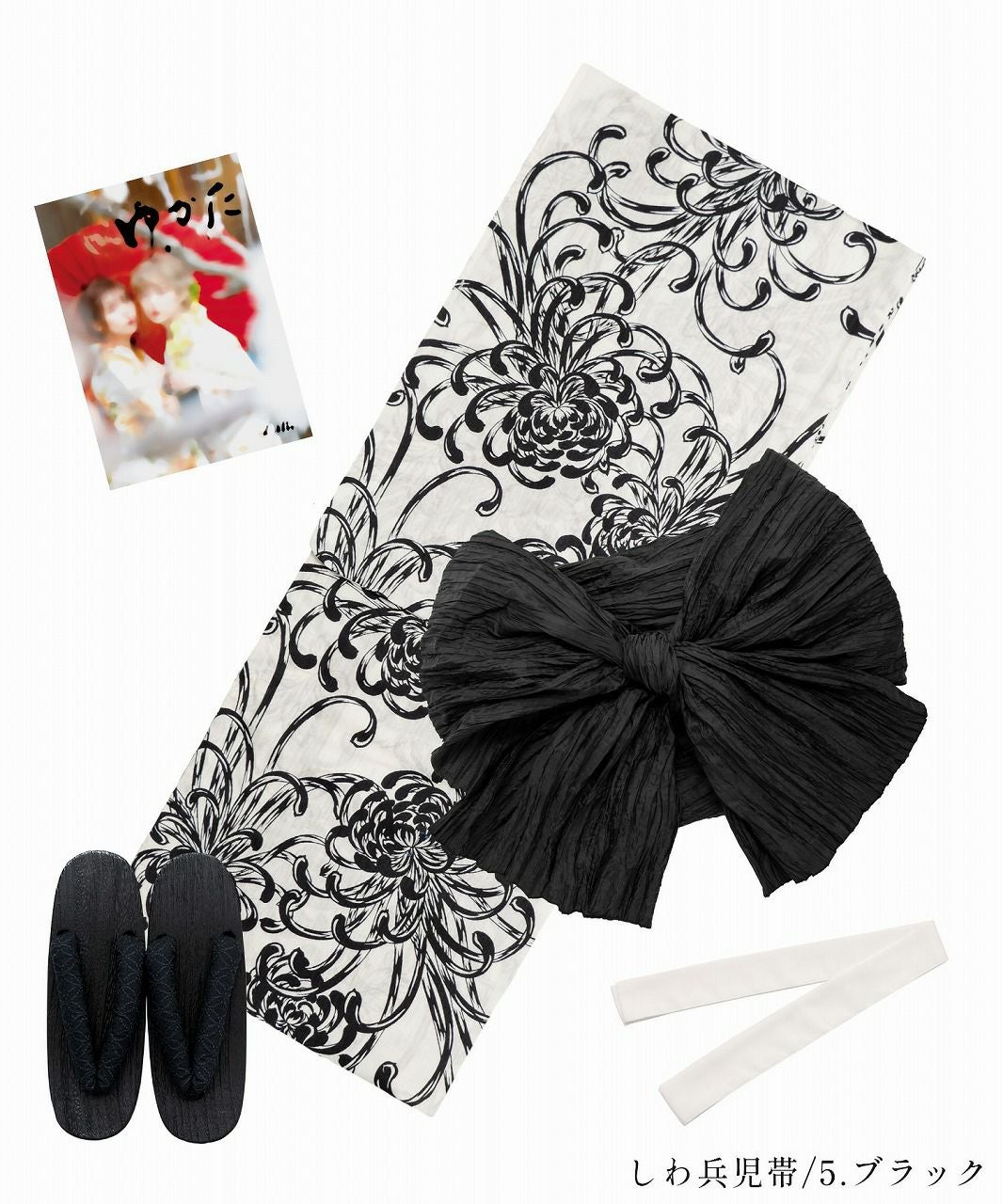 浴衣5点セット(ゆかた・帯・下駄・着付けマニュアル・腰ひも) 下弦の乱菊しらべ