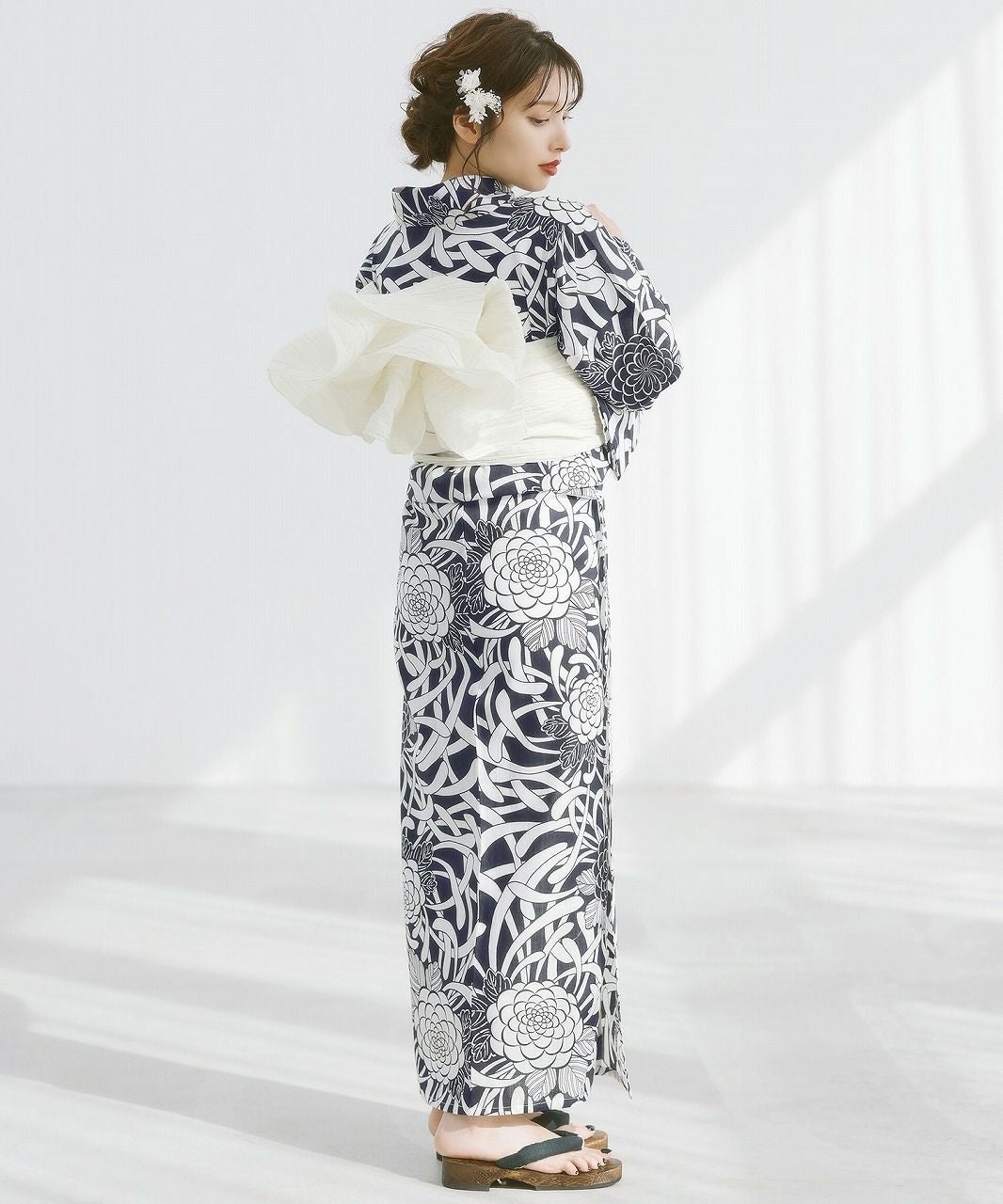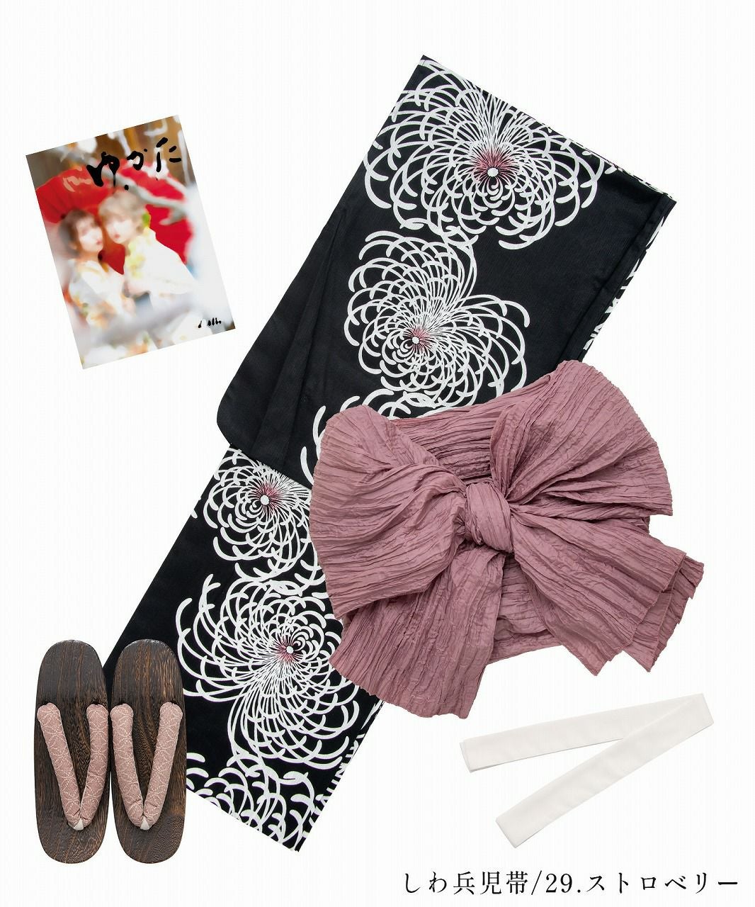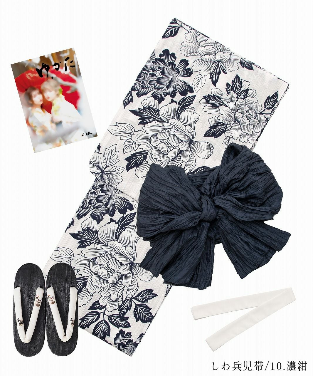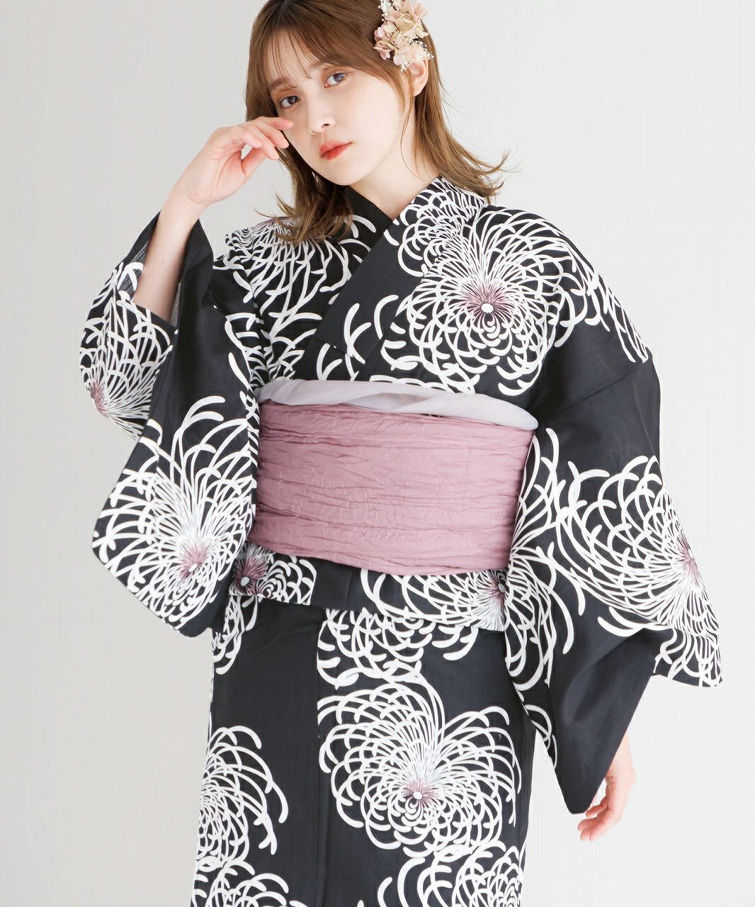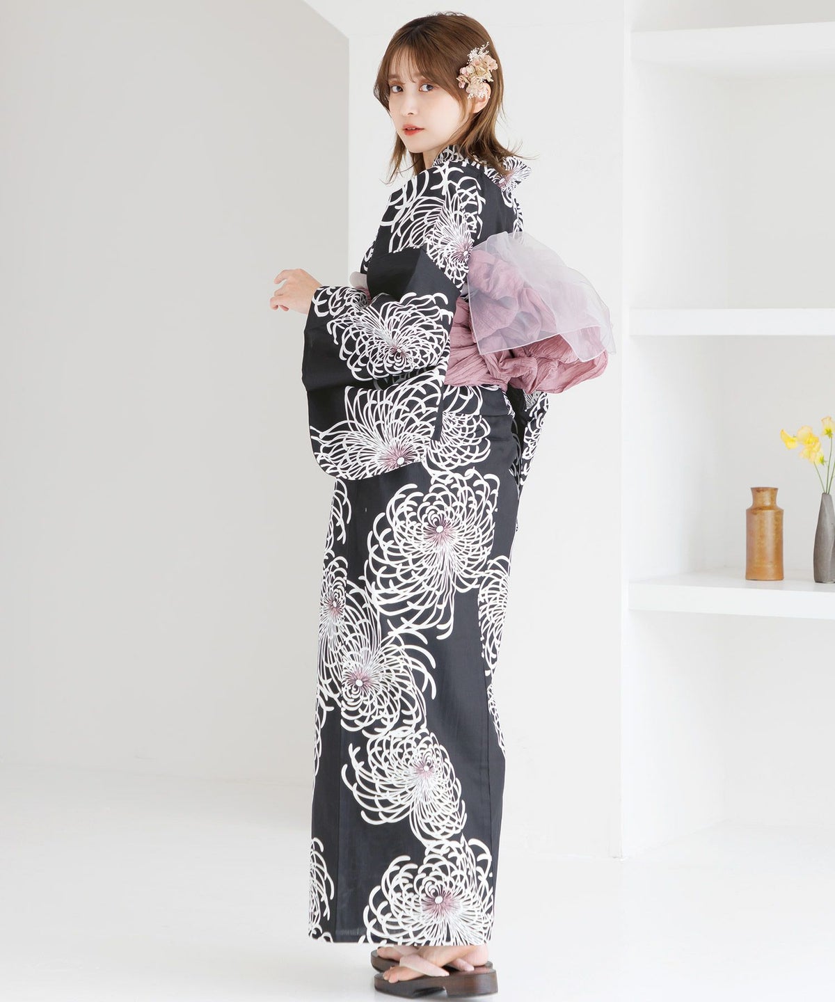 浴衣5点セット(ゆかた・帯・下駄・着付けマニュアル・腰ひも) 下弦の乱菊しらべ