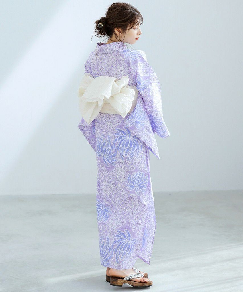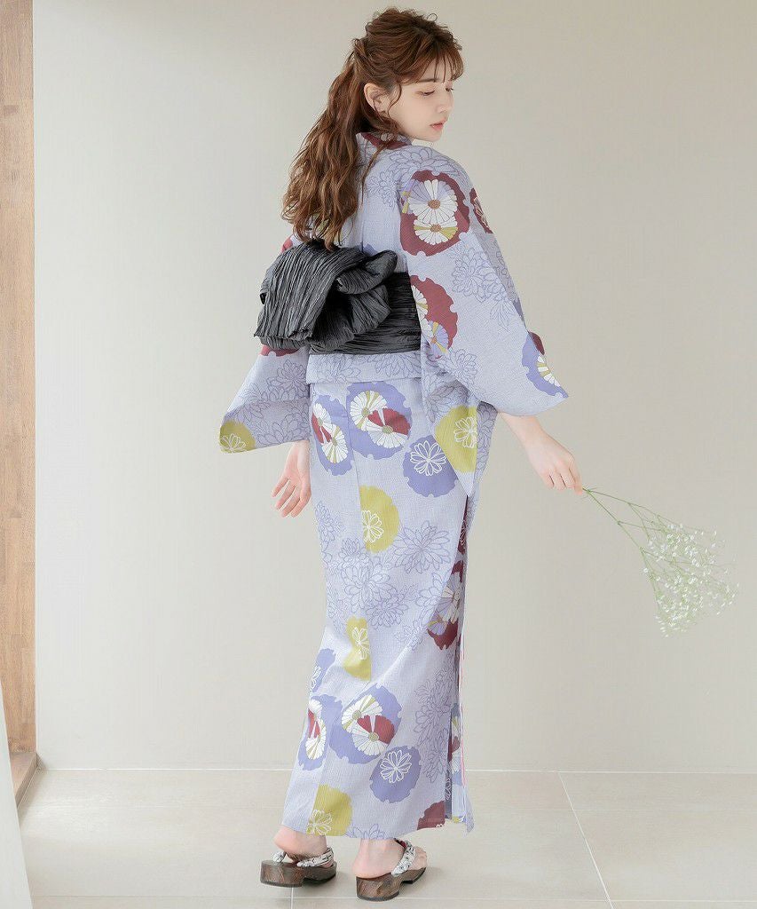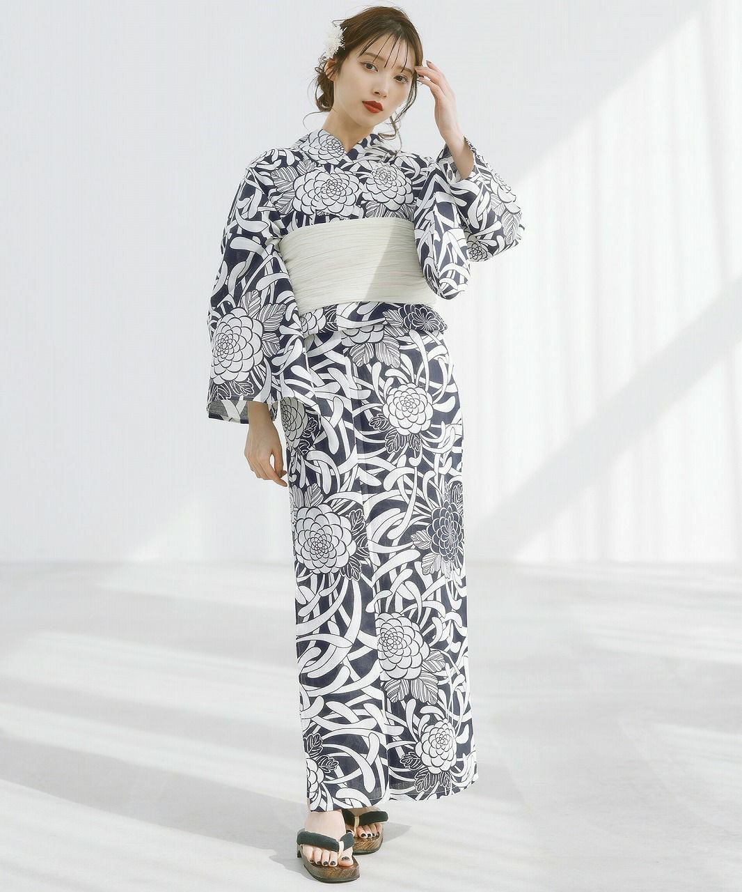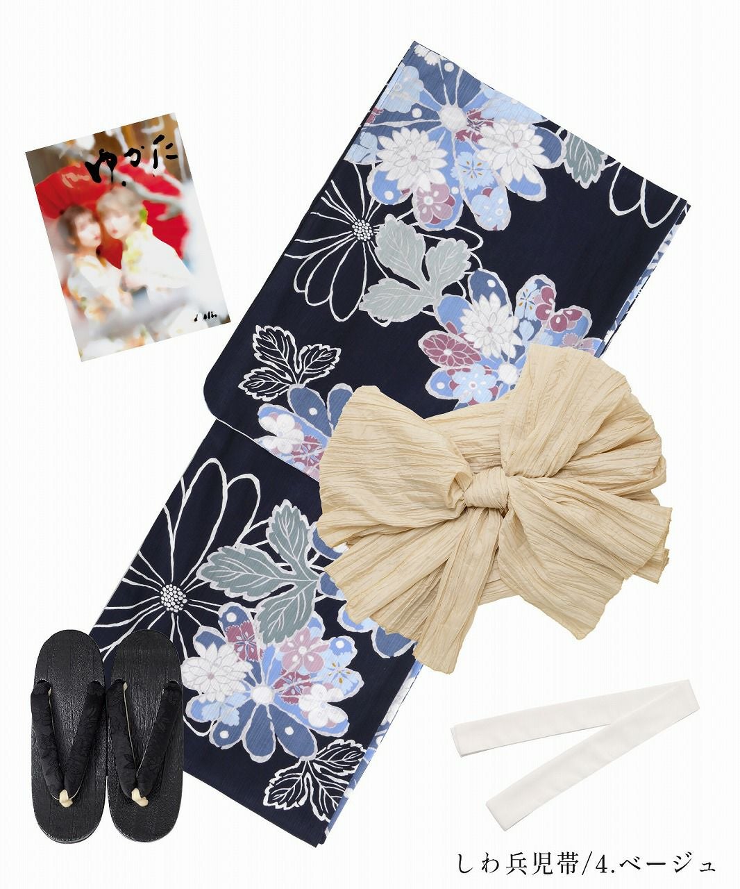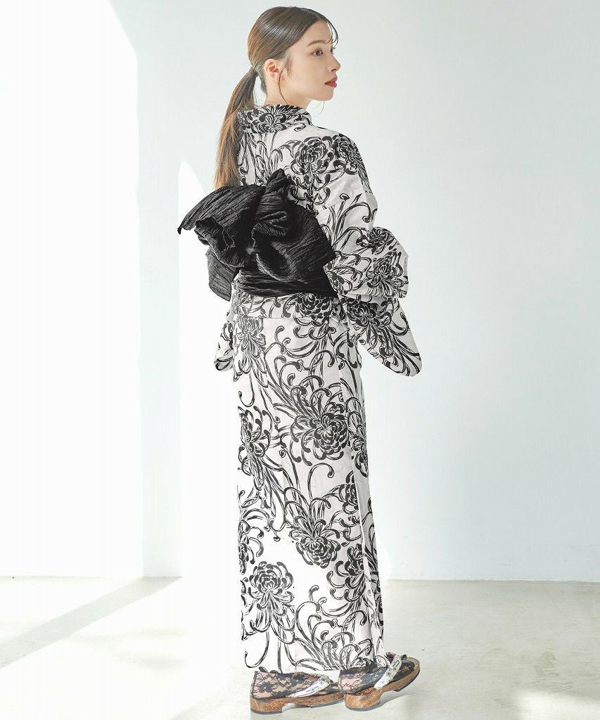 浴衣5点セット(ゆかた・帯・下駄・着付けマニュアル・腰ひも) 下弦の乱菊しらべ
