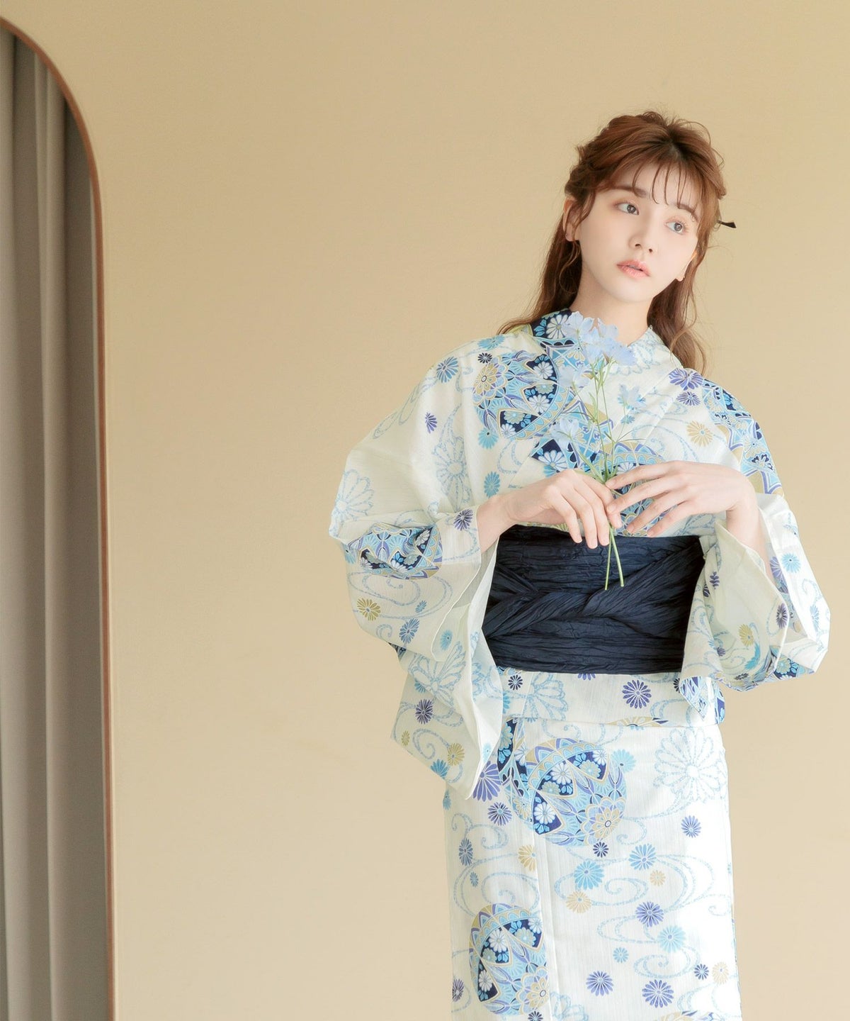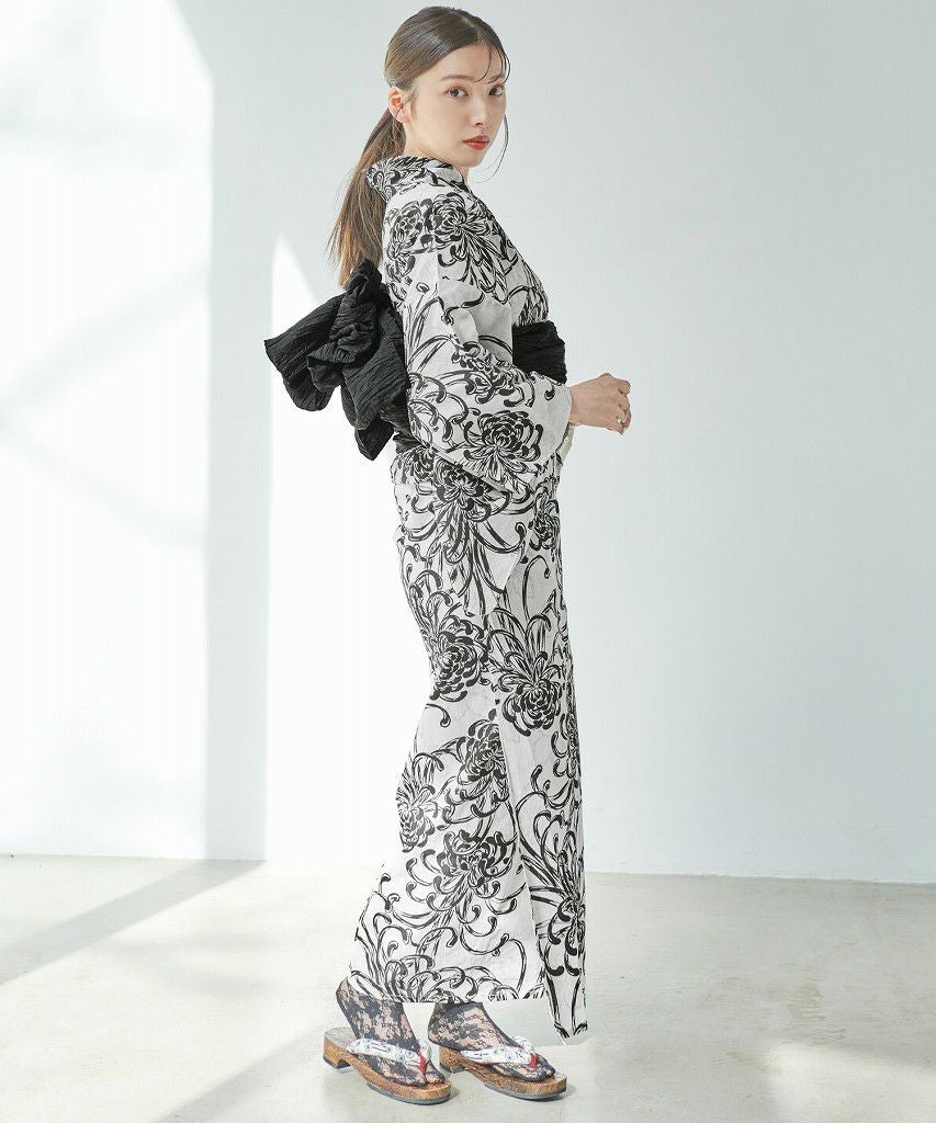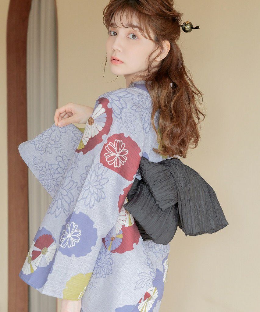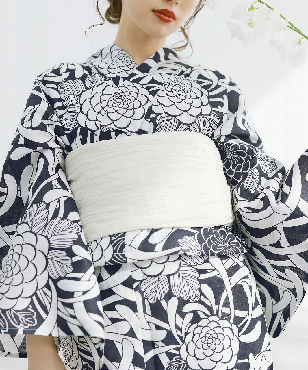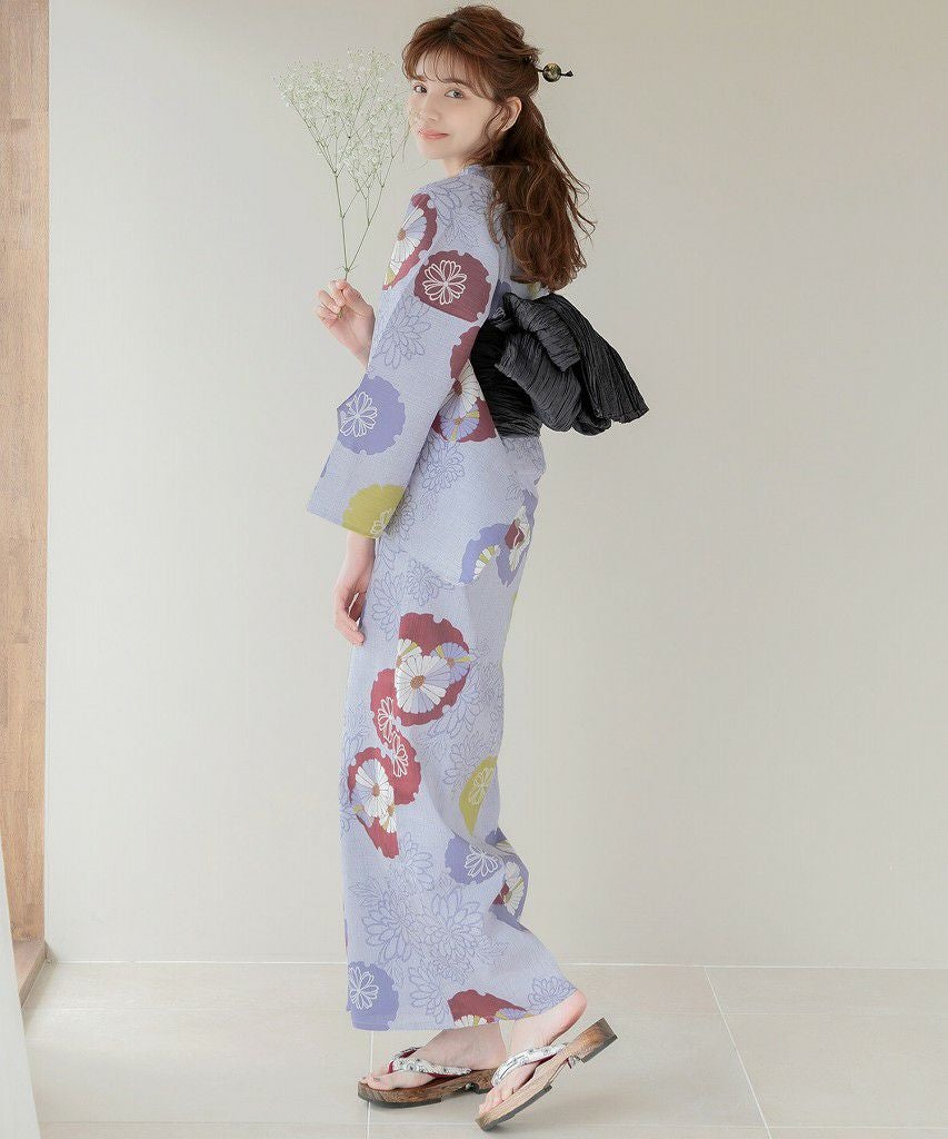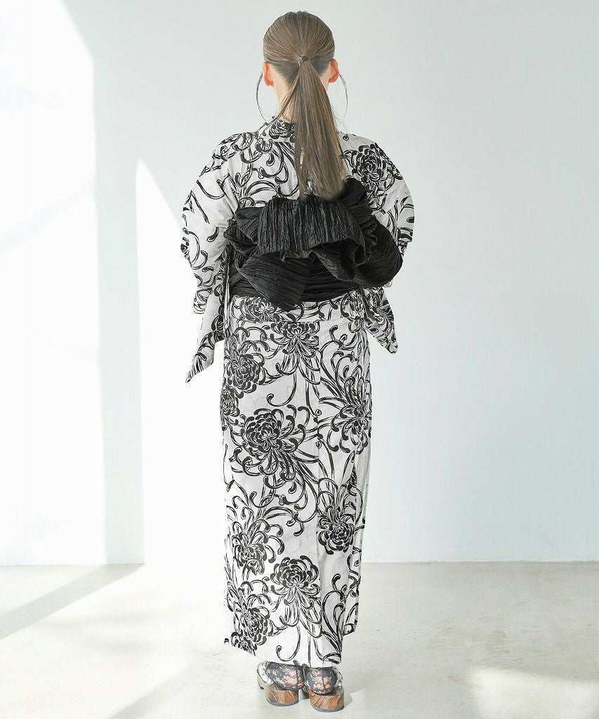 浴衣5点セット(ゆかた・帯・下駄・着付けマニュアル・腰ひも) 下弦の乱菊しらべ