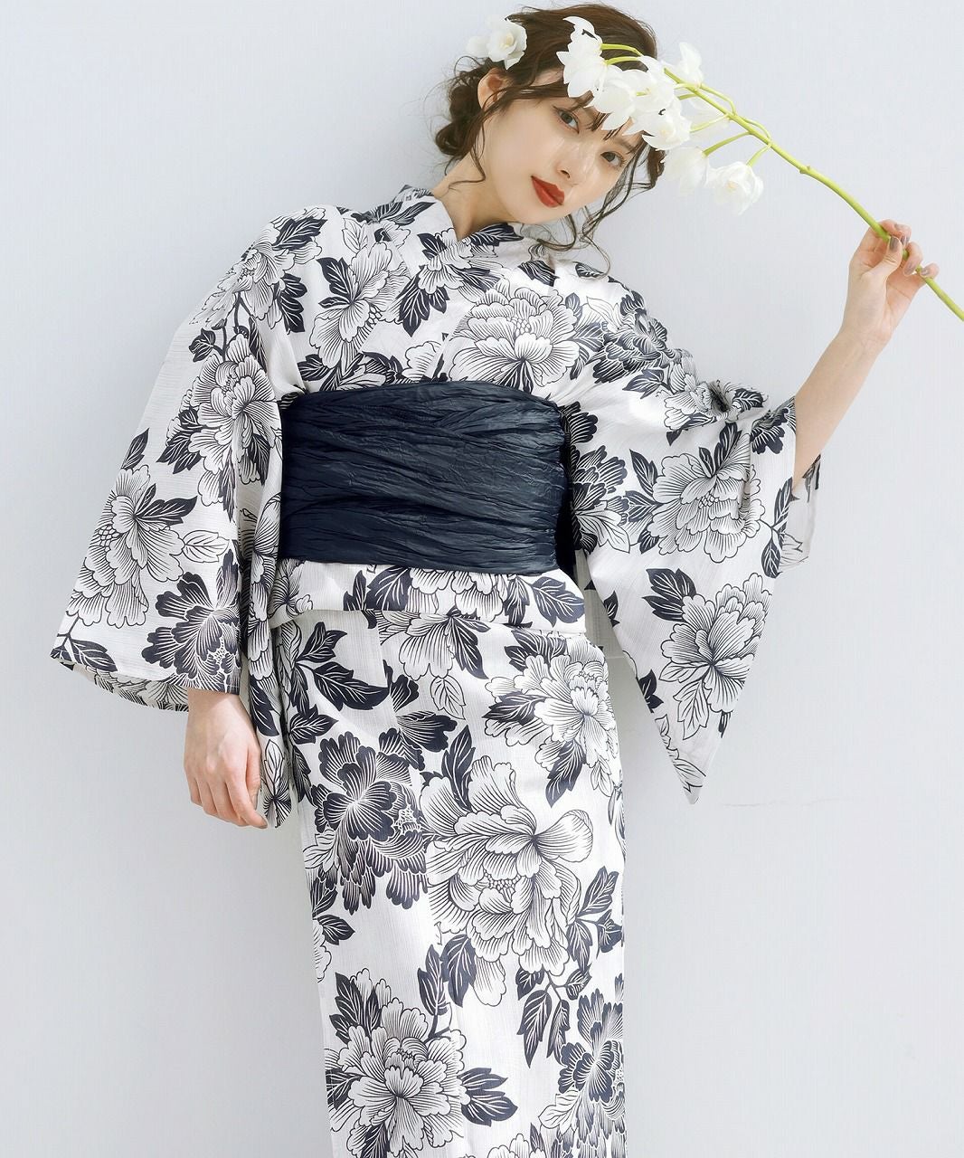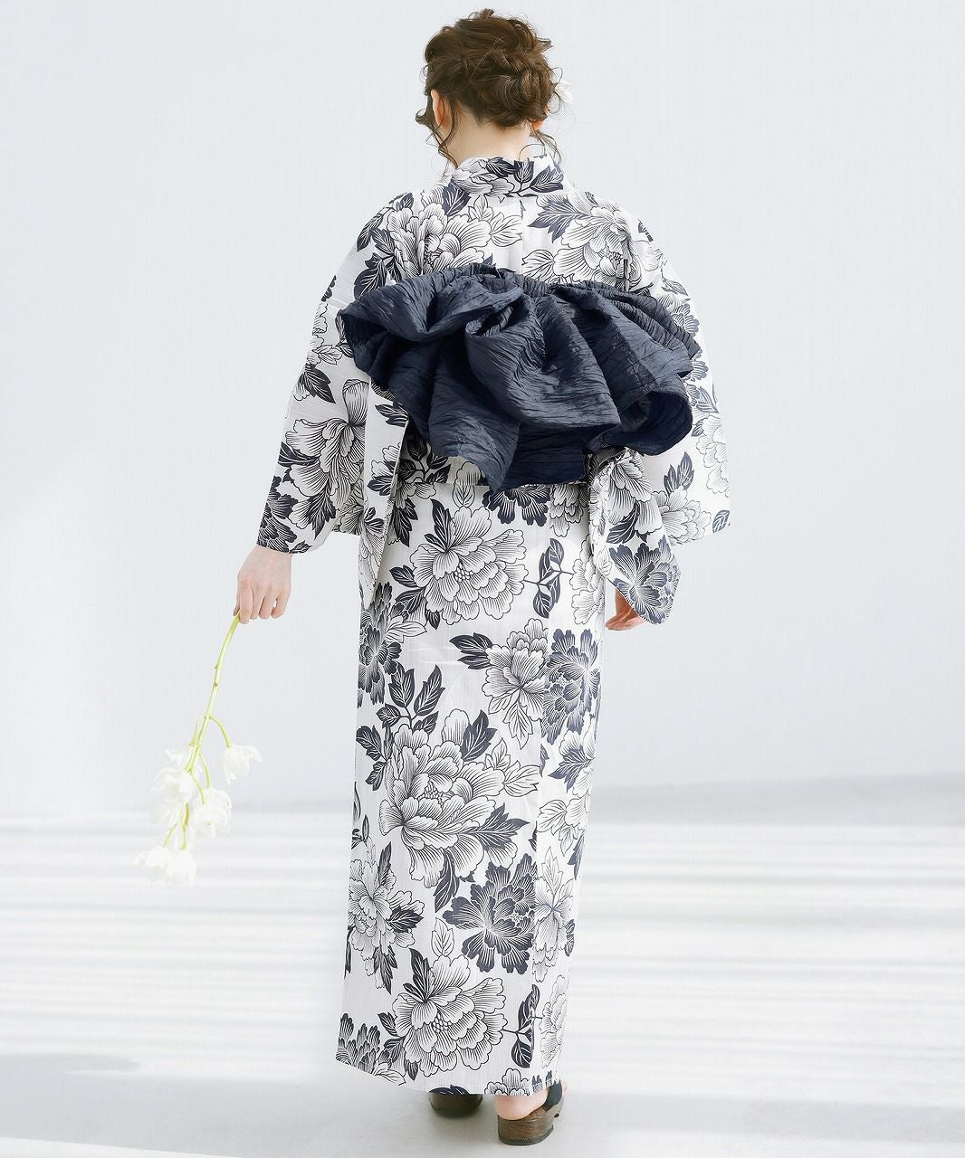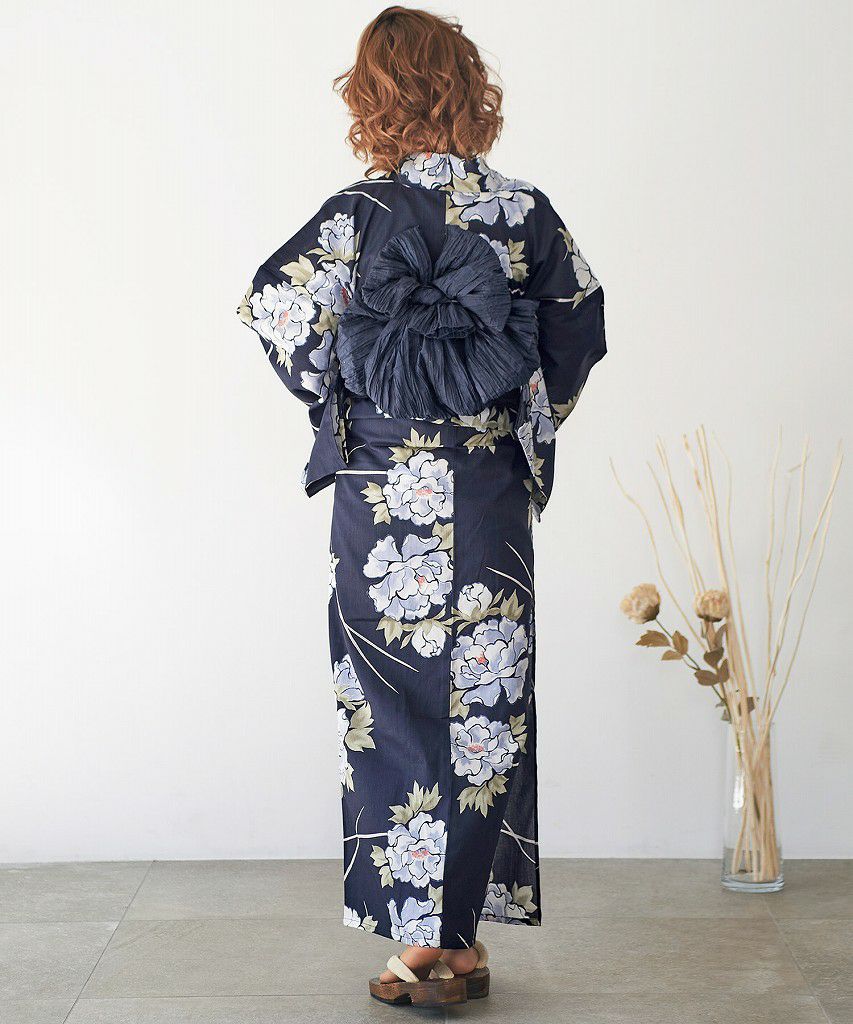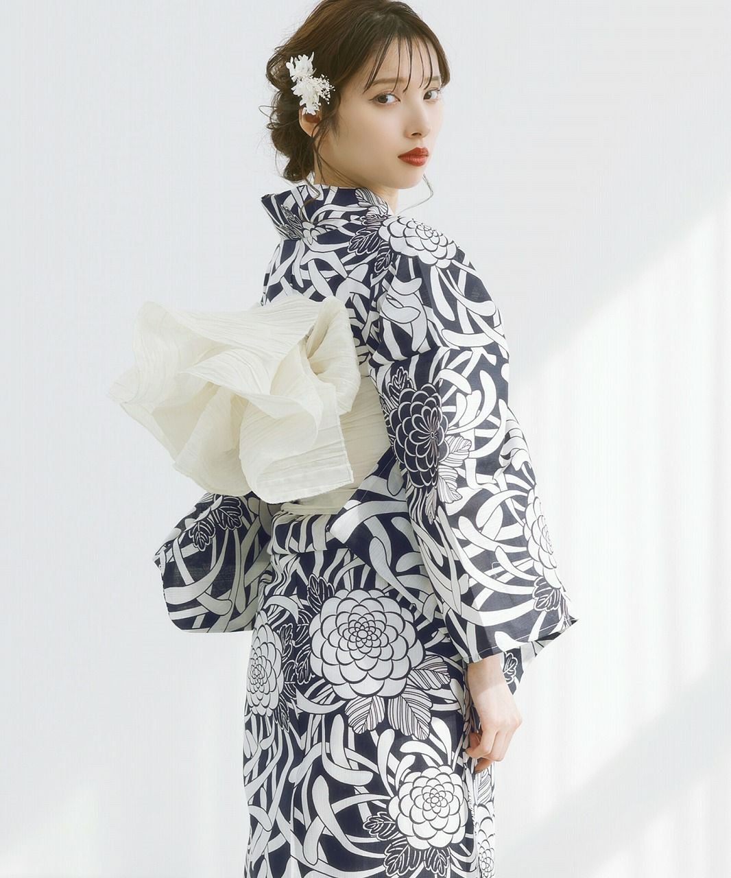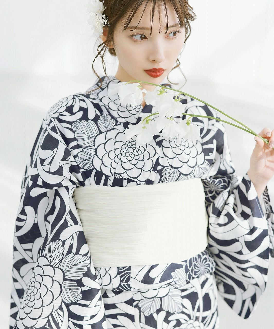 浴衣5点セット(ゆかた・帯・下駄・着付けマニュアル・腰ひも) 下弦の乱菊しらべ