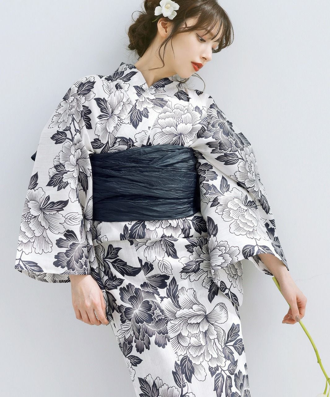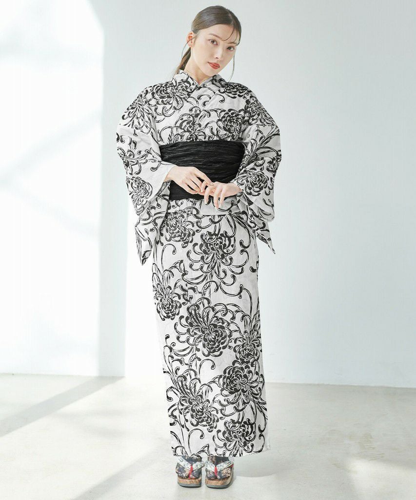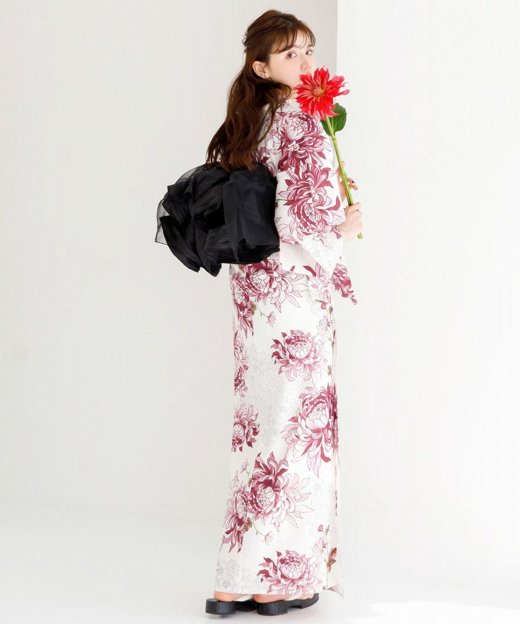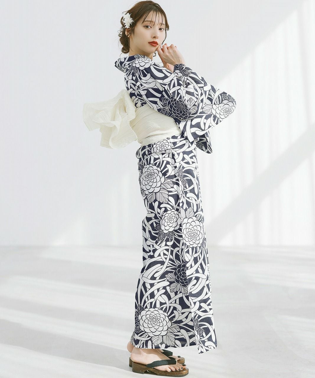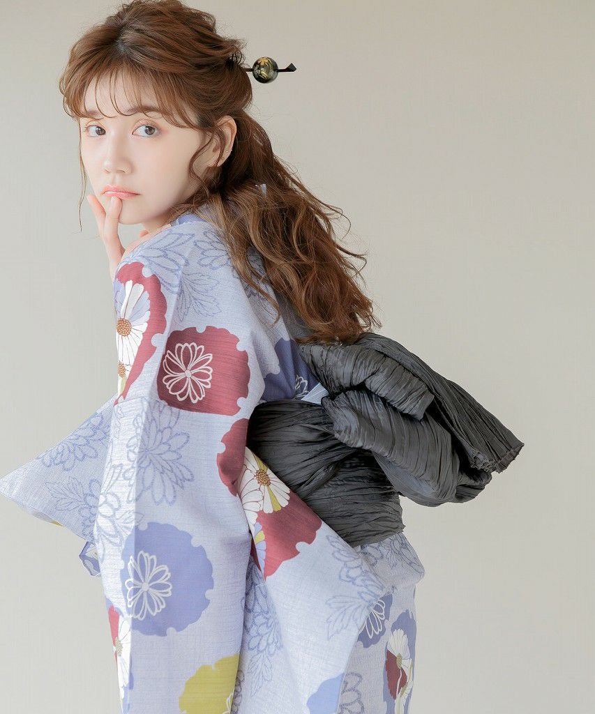 浴衣5点セット(ゆかた・帯・下駄・着付けマニュアル・腰ひも) 下弦の乱菊しらべ