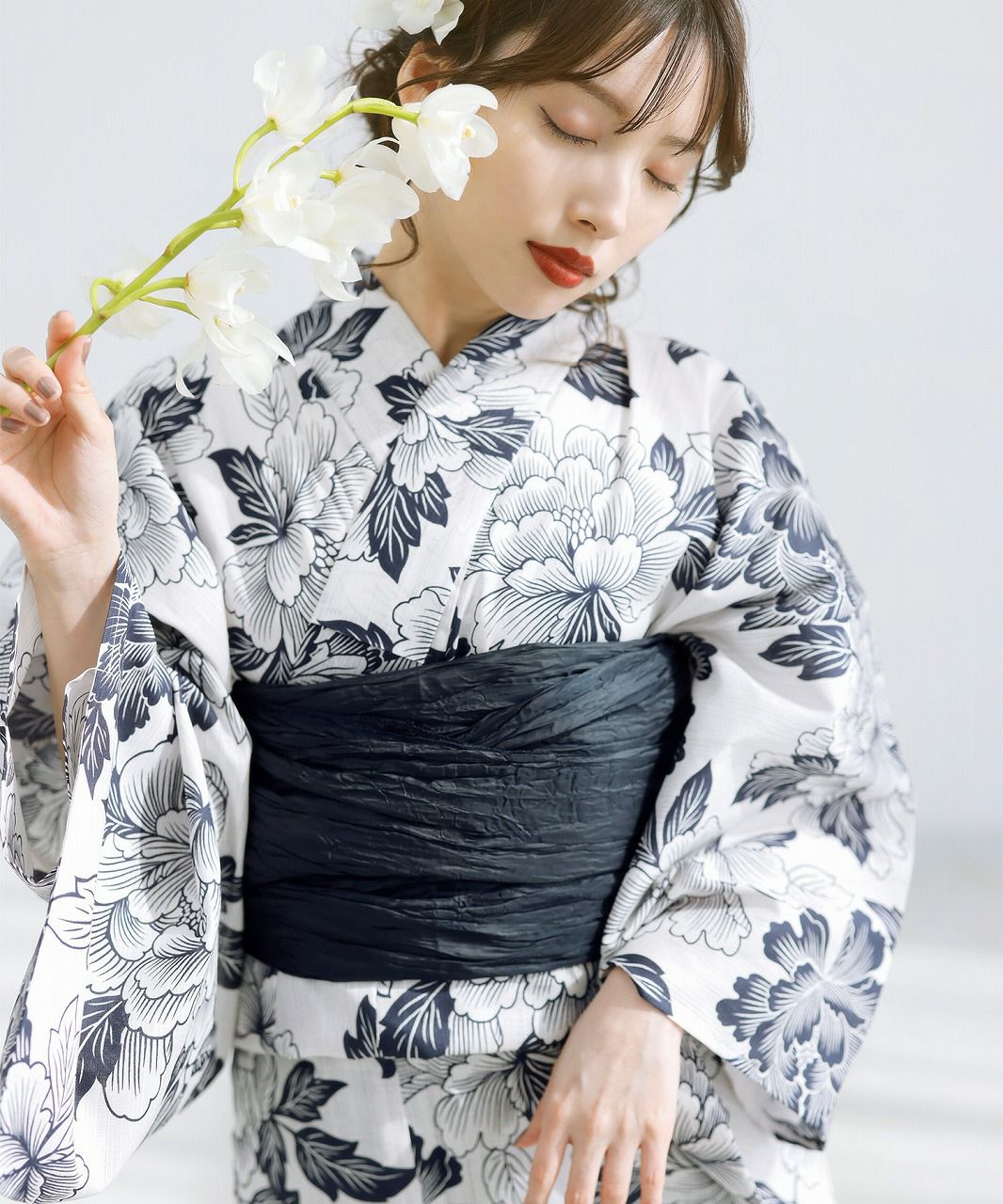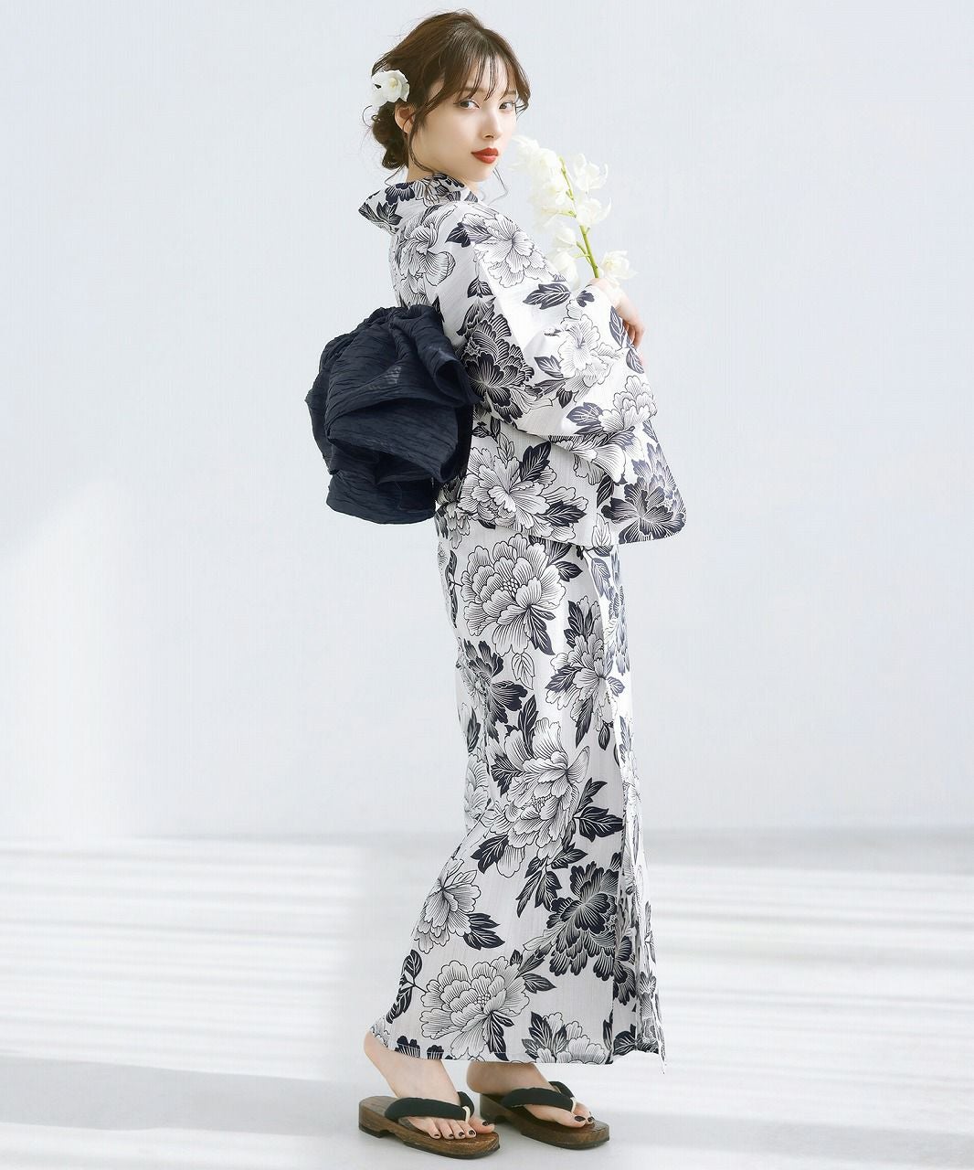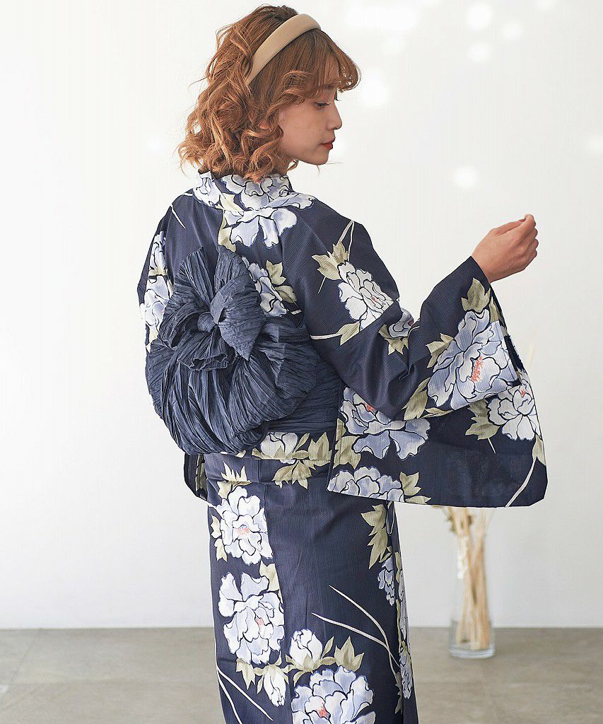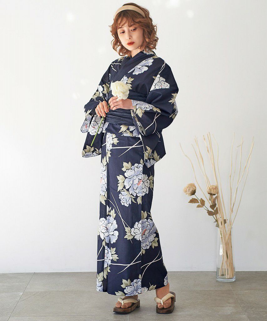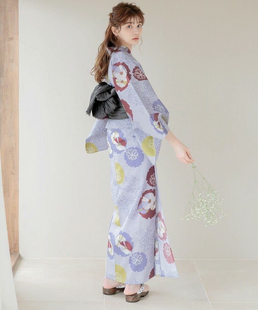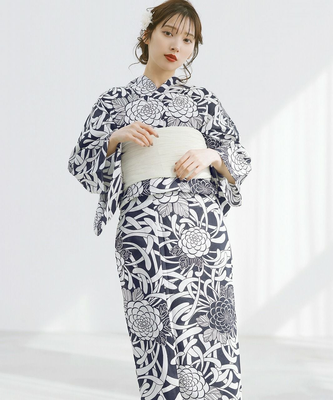 浴衣5点セット(ゆかた・帯・下駄・着付けマニュアル・腰ひも) 下弦の乱菊しらべ