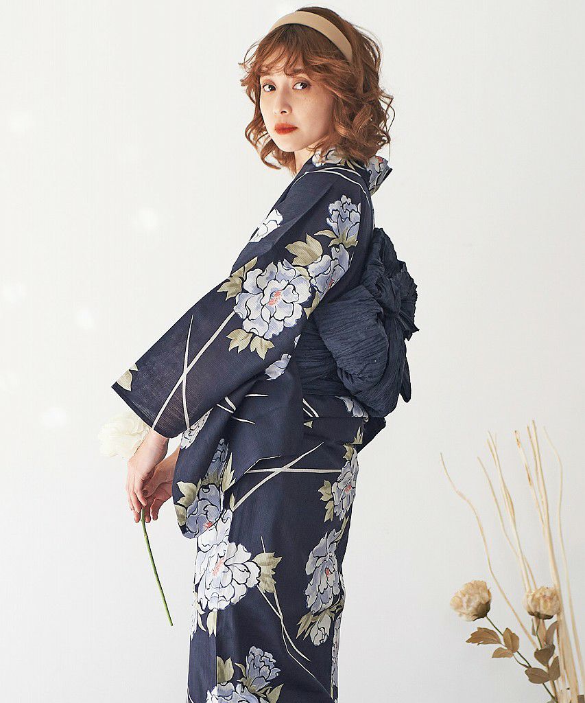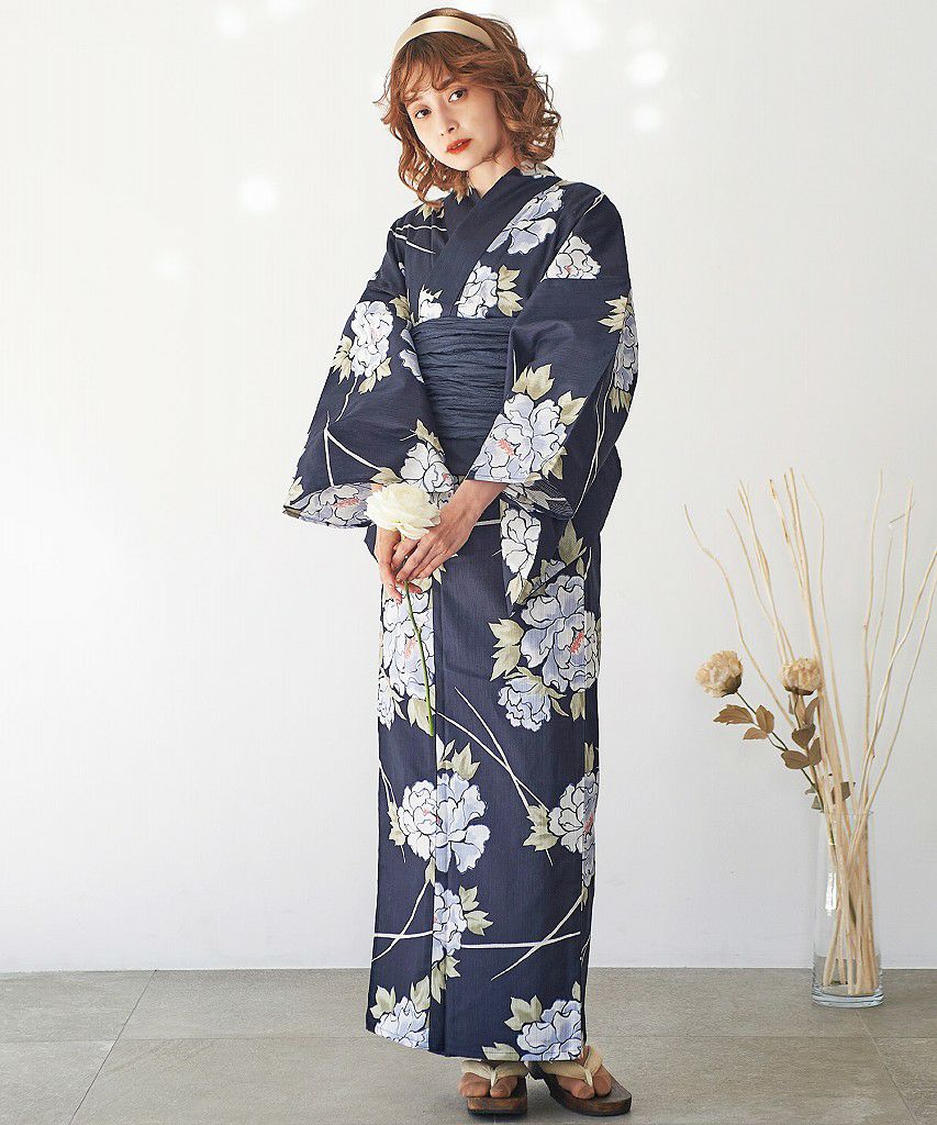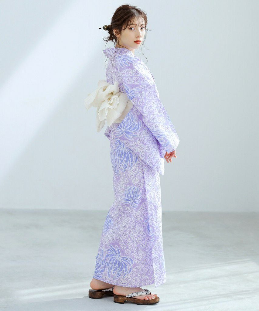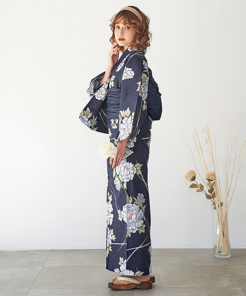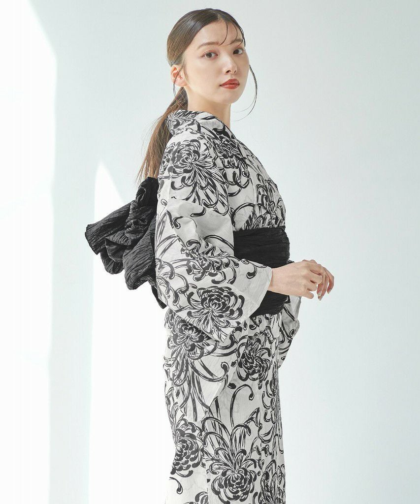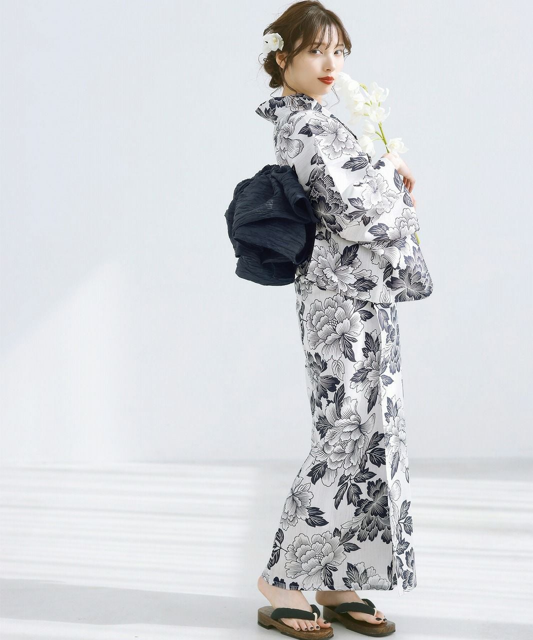浴衣5点セット(ゆかた・帯・下駄・着付けマニュアル・腰ひも) 下弦の乱菊しらべ
