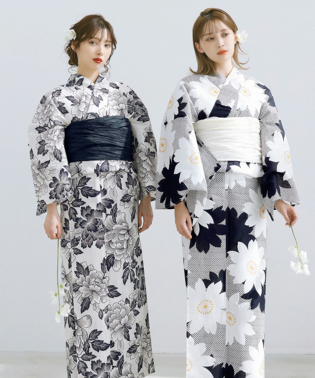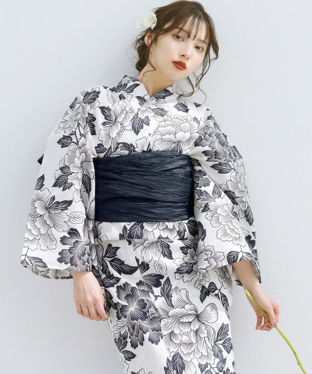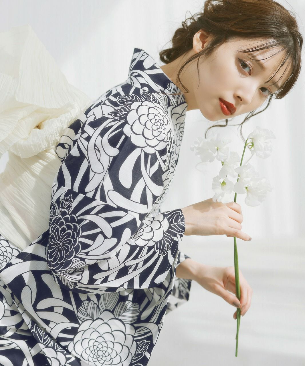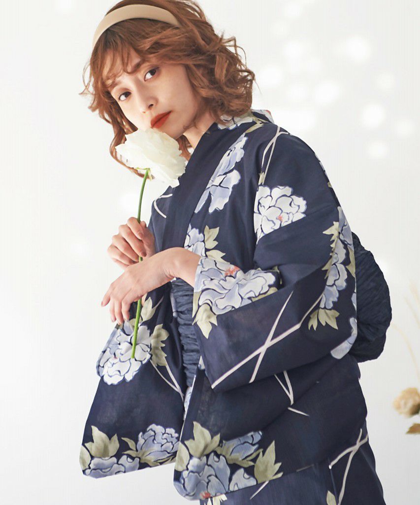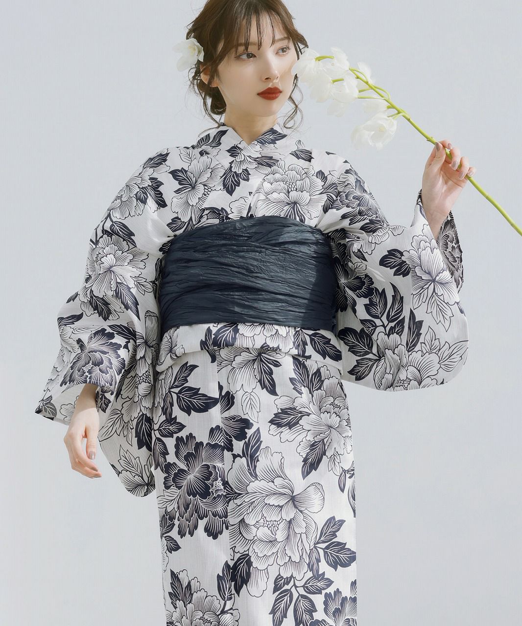 浴衣5点セット(ゆかた・帯・下駄・着付けマニュアル・腰ひも) 下弦の乱菊しらべ