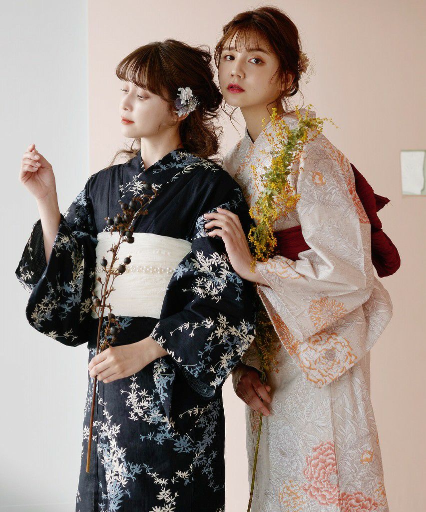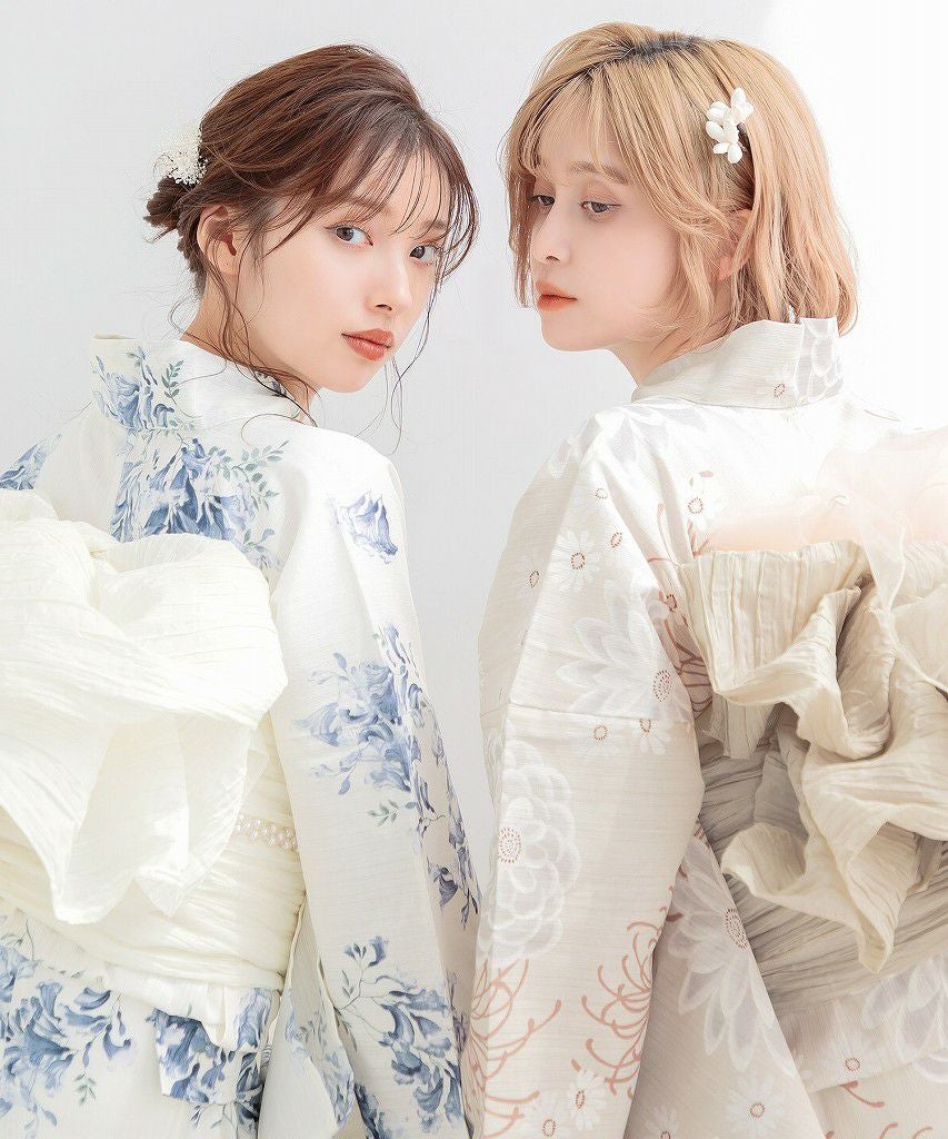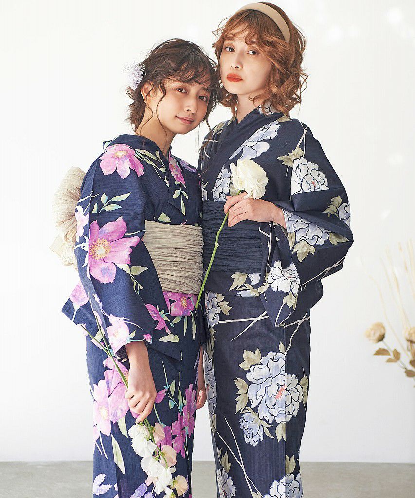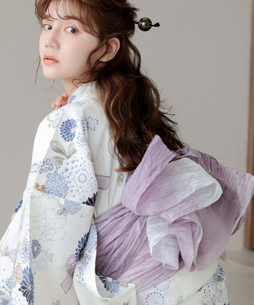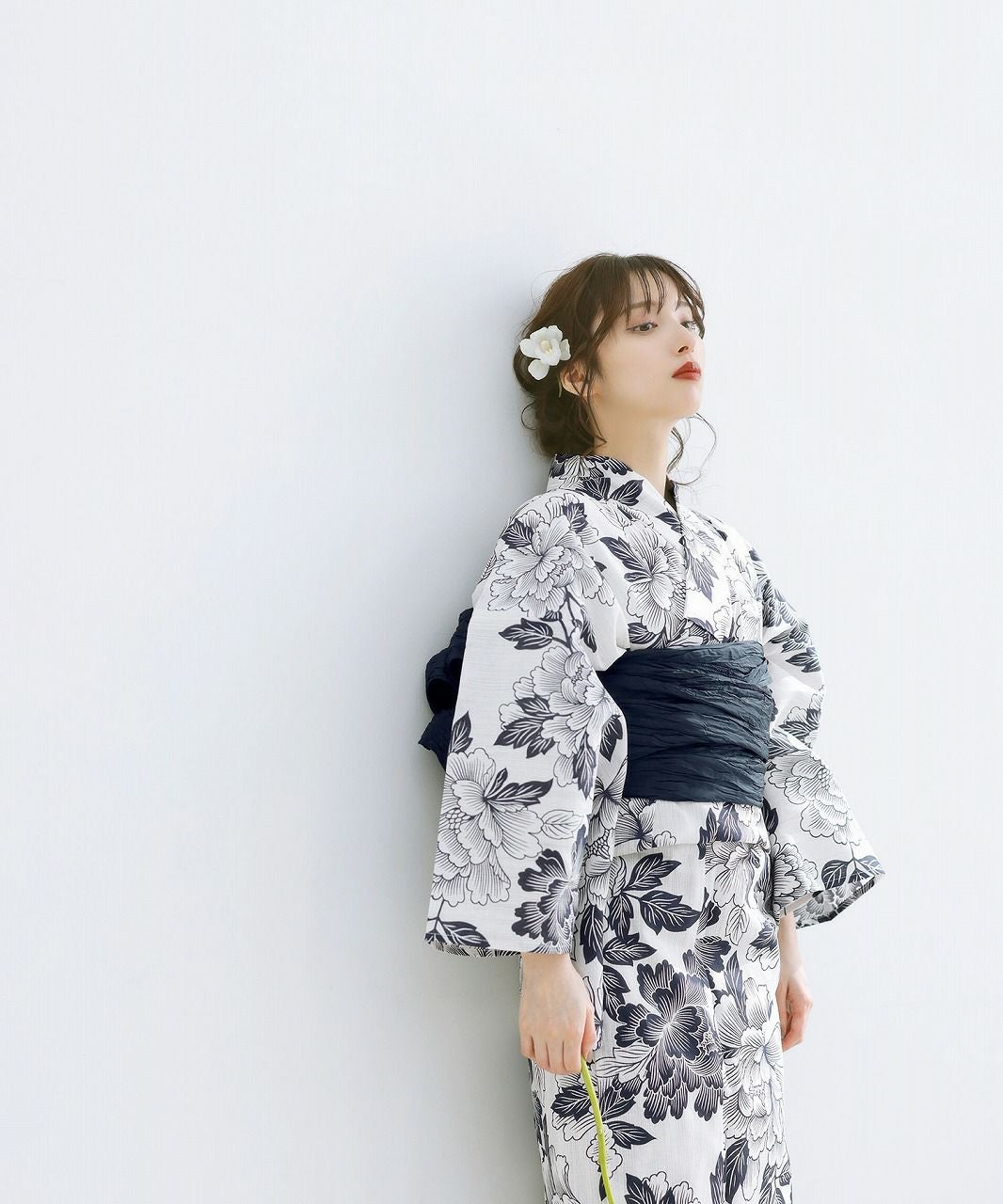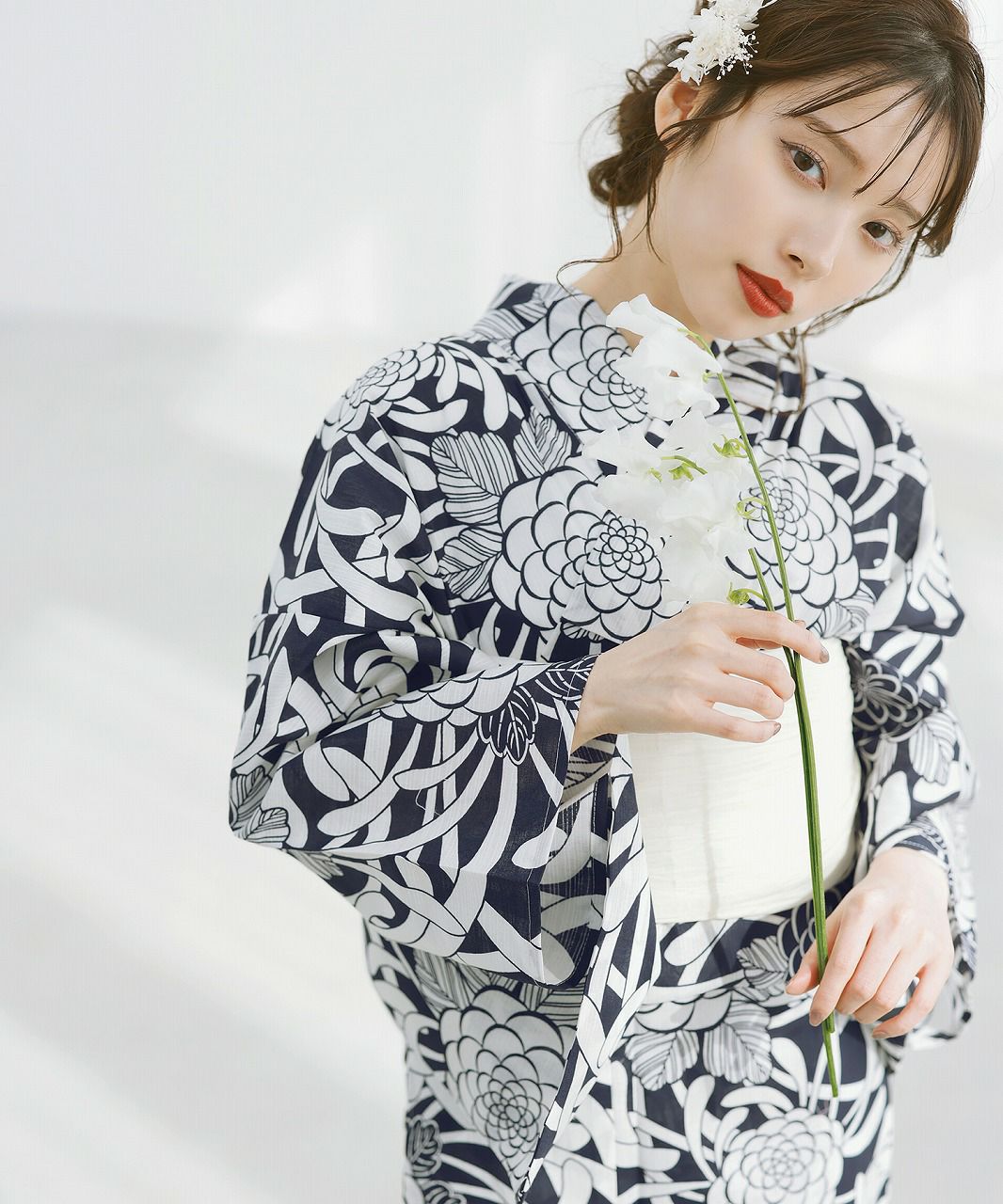 浴衣5点セット(ゆかた・帯・下駄・着付けマニュアル・腰ひも) 下弦の乱菊しらべ