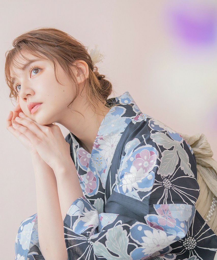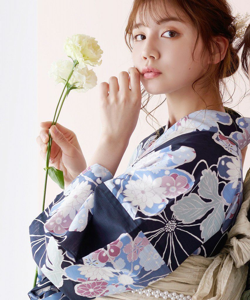 浴衣5点セット(ゆかた・帯・下駄・着付けマニュアル・腰ひも) 燦々京まつり(紺碧)
