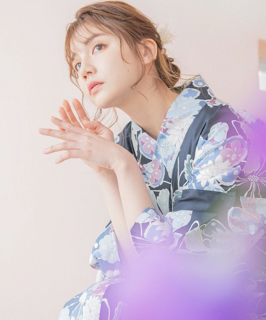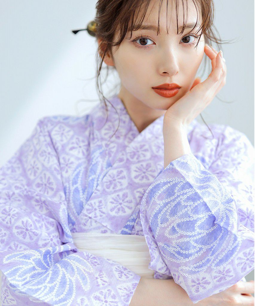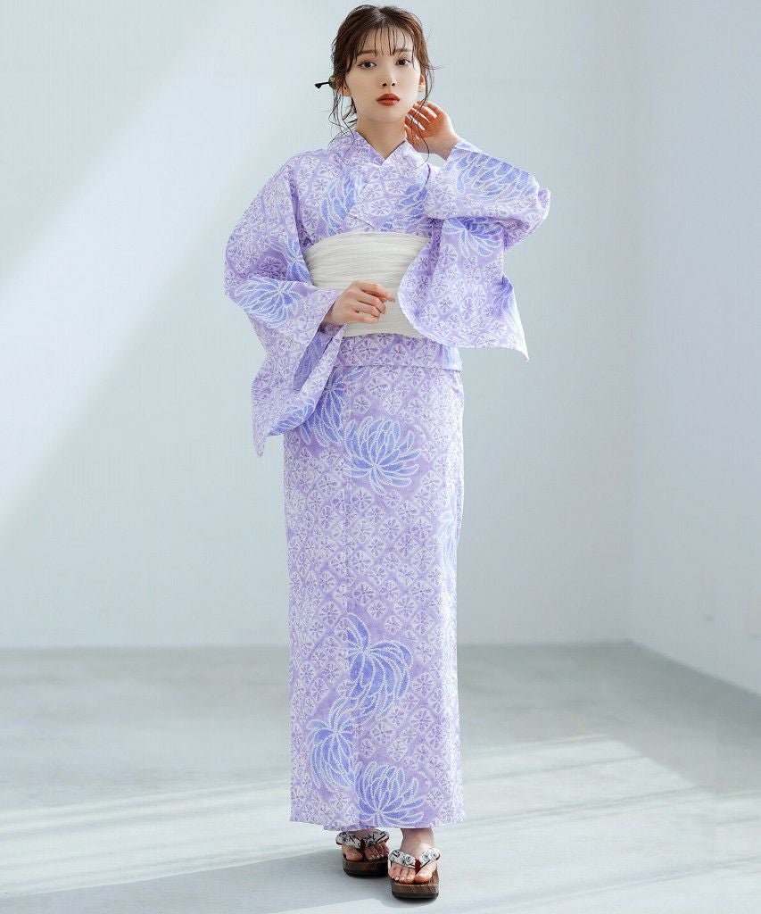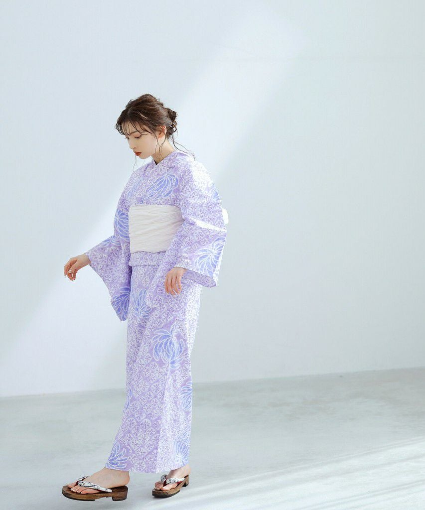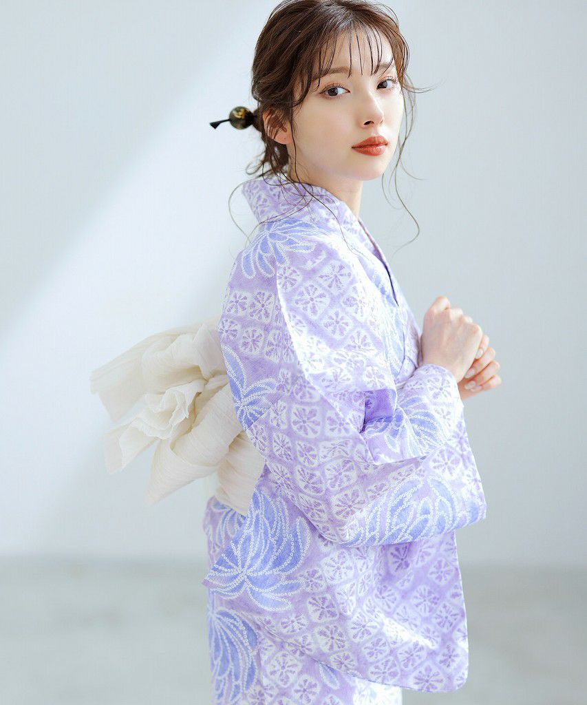 浴衣5点セット(ゆかた・帯・下駄・着付けマニュアル・腰ひも) 江戸紫の絢爛重ね