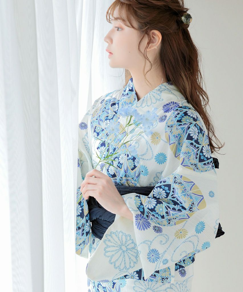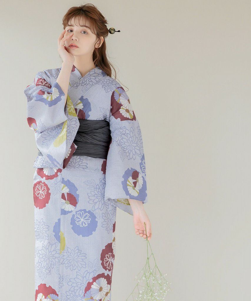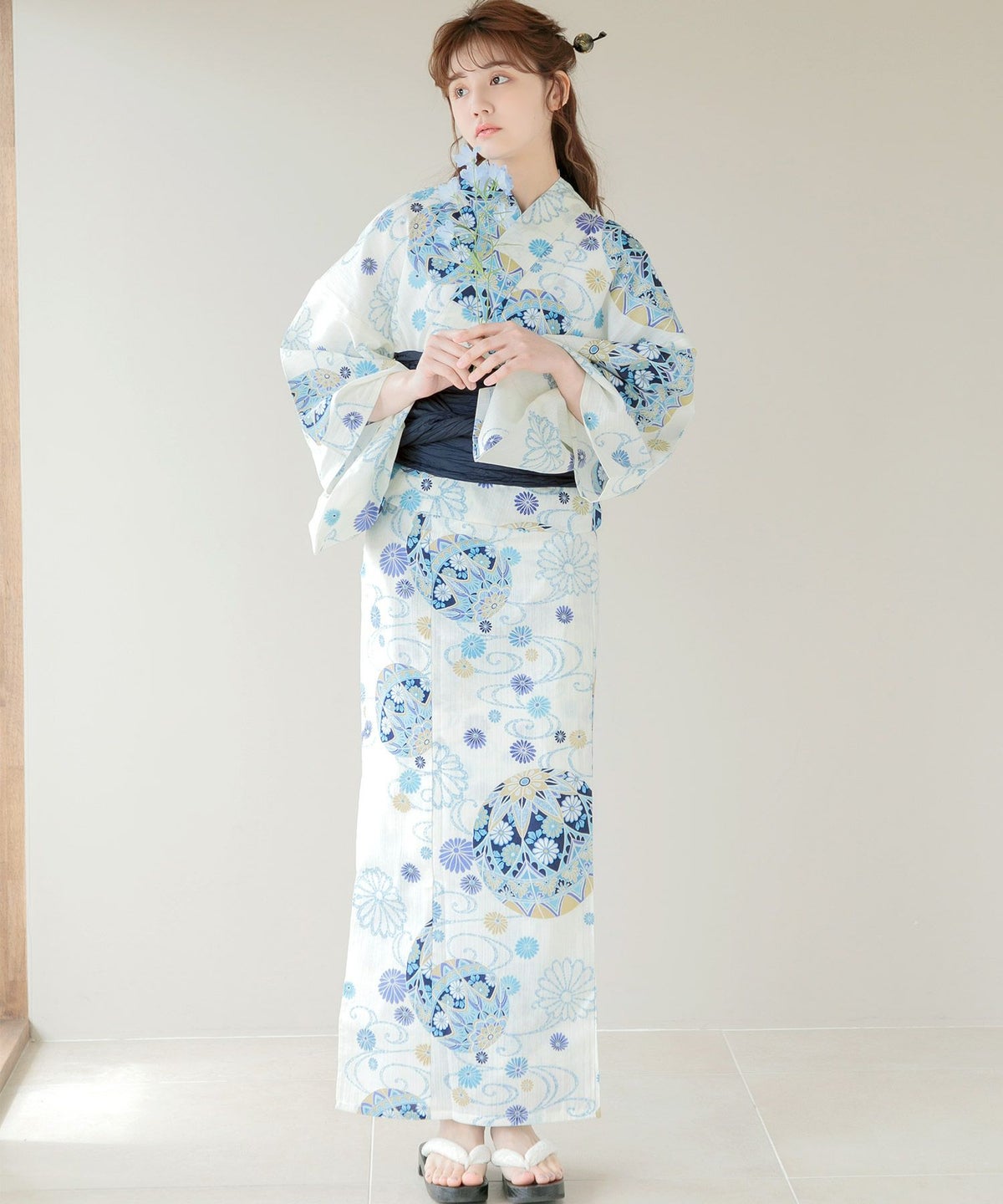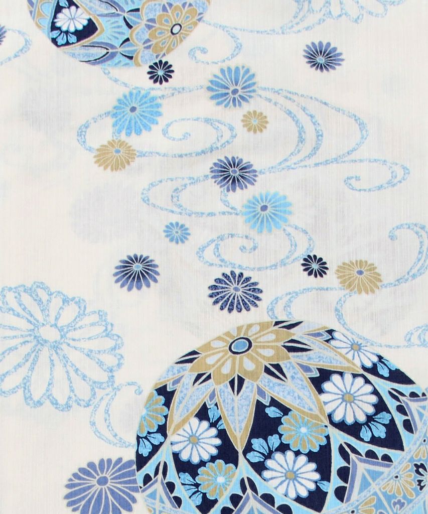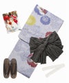 浴衣5点セット(ゆかた・帯・下駄・着付けマニュアル・腰ひも) 涼風の手毬菊