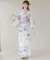 浴衣5点セット(ゆかた・帯・下駄・着付けマニュアル・腰ひも) 燦々京まつり(紺碧)