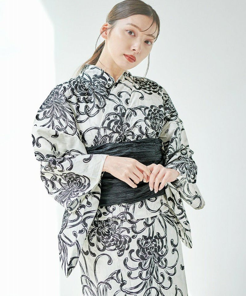 浴衣5点セット(ゆかた・帯・下駄・着付けマニュアル・腰ひも) 威風絢爛
