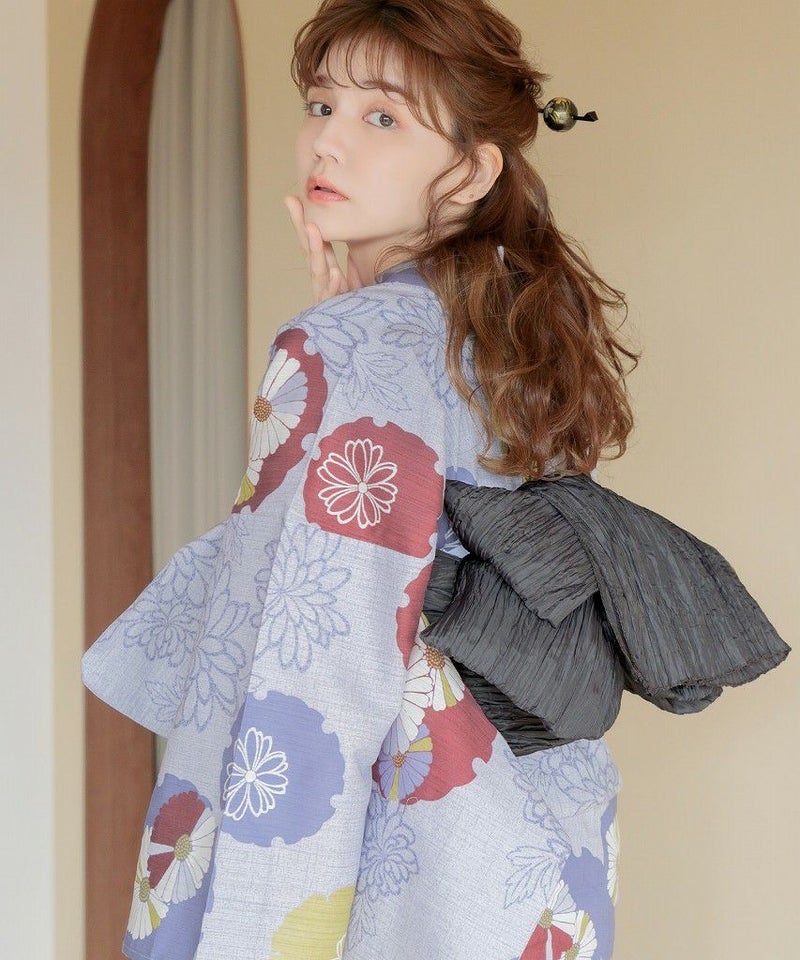 浴衣5点セット(ゆかた・帯・下駄・着付けマニュアル・腰ひも) 大正ロマン手毬菊