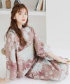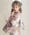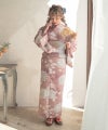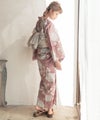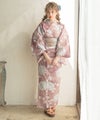 浴衣5点セット(ゆかた・帯・下駄・着付けマニュアル・腰ひも) 梅見月の菊ちらし