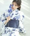 花紺青色の泡沫しらべ 2025 セパレート浴衣3点セット(ゆかた・帯・着付け本)