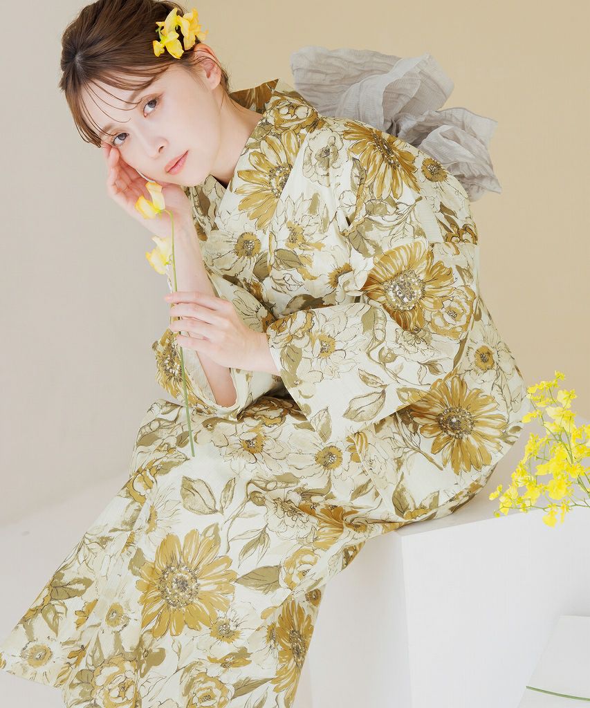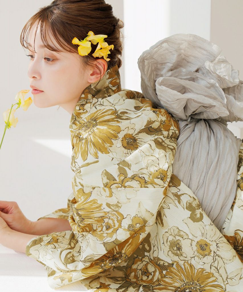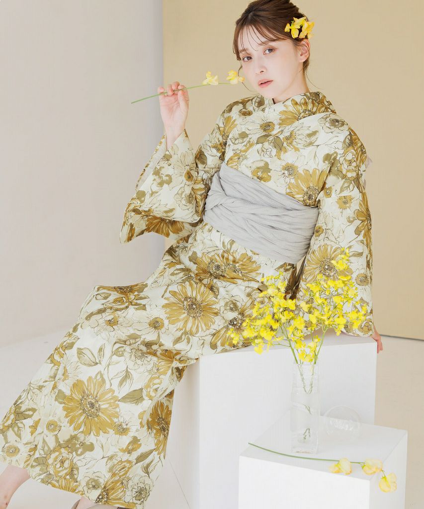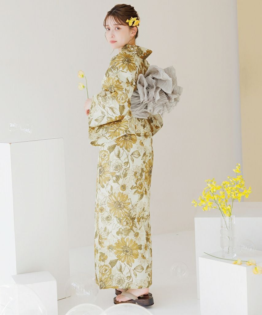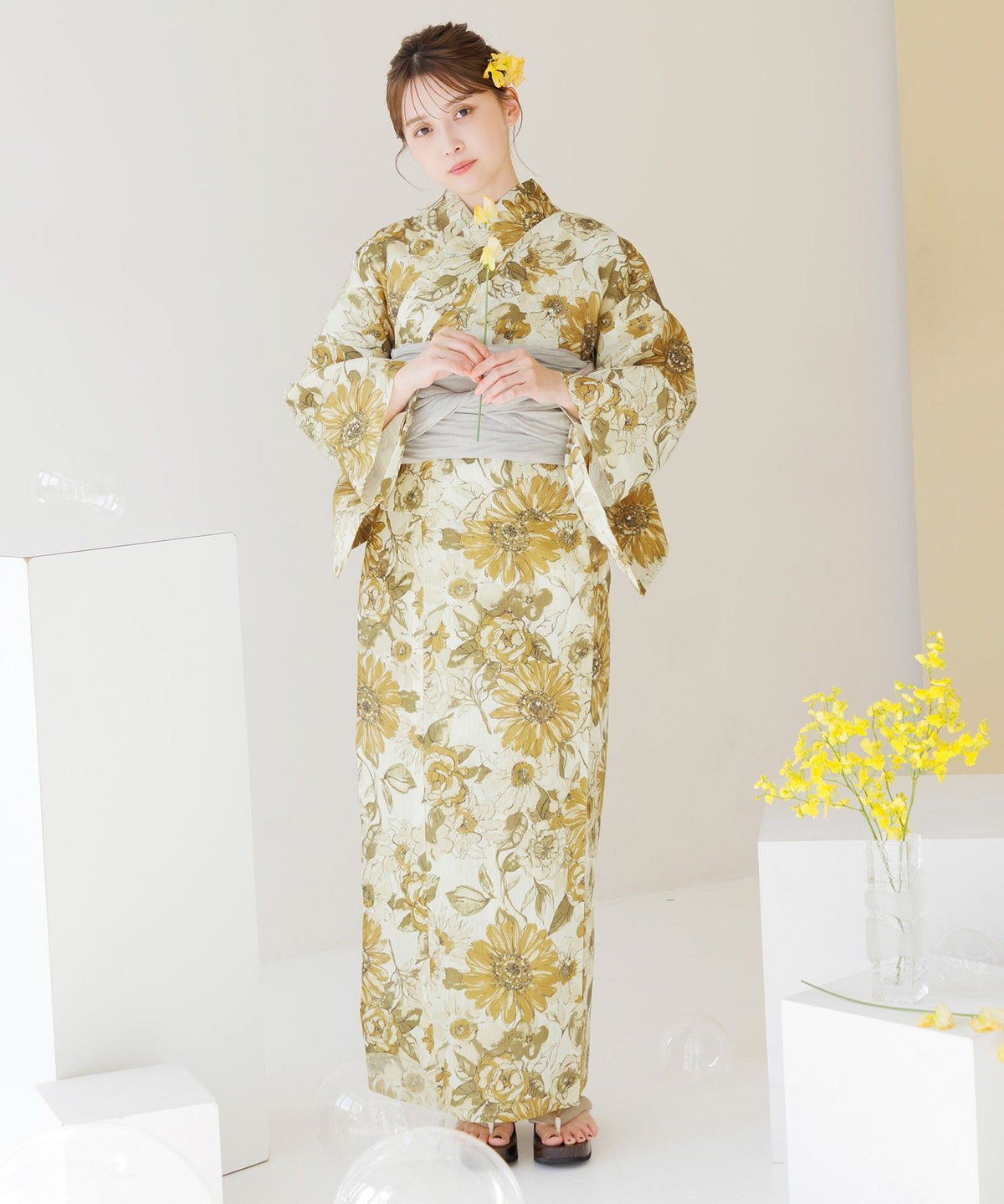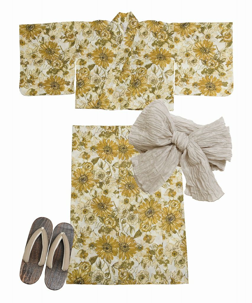 セパレート浴衣3点セット(ゆかた・帯・下駄) 夏色ひまわり