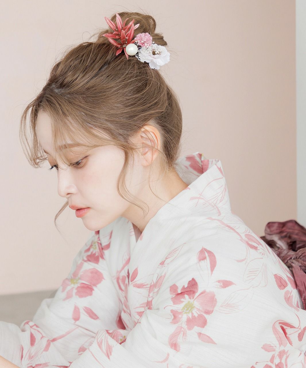 2.あじさい×かすみ草 ドライフラワー髪飾り(4本セット)