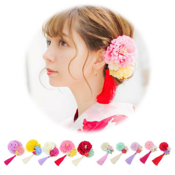 タッセル付きフラワーアクセサリー(髪飾り) (小)空色