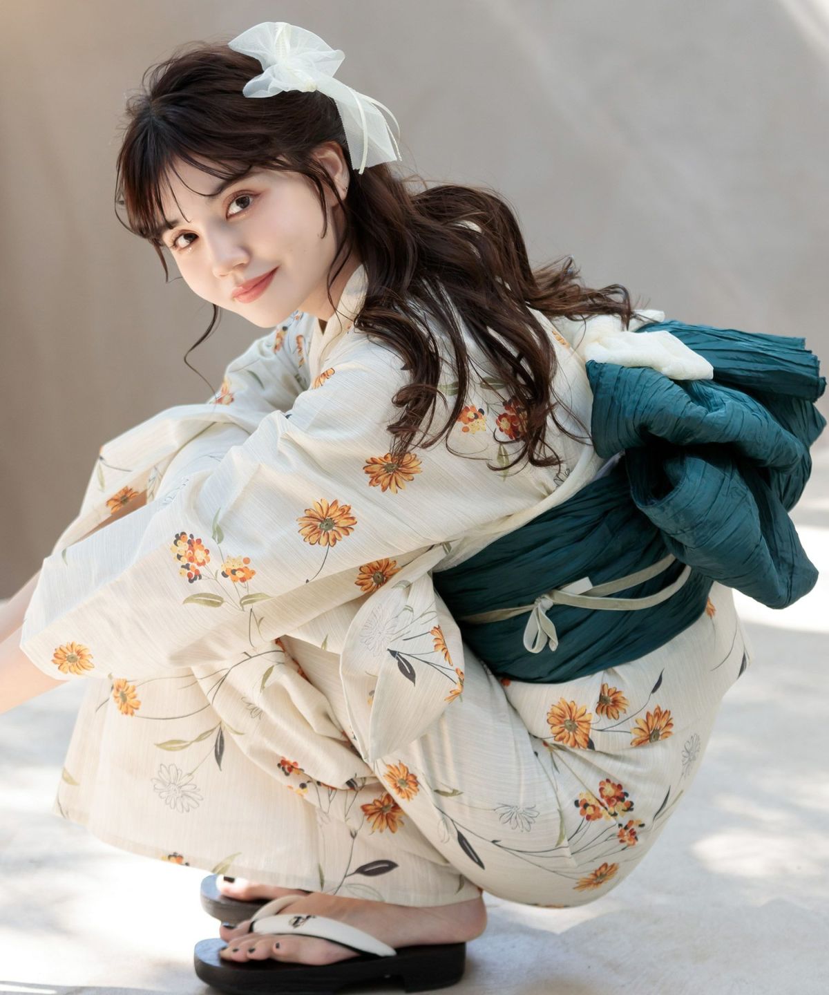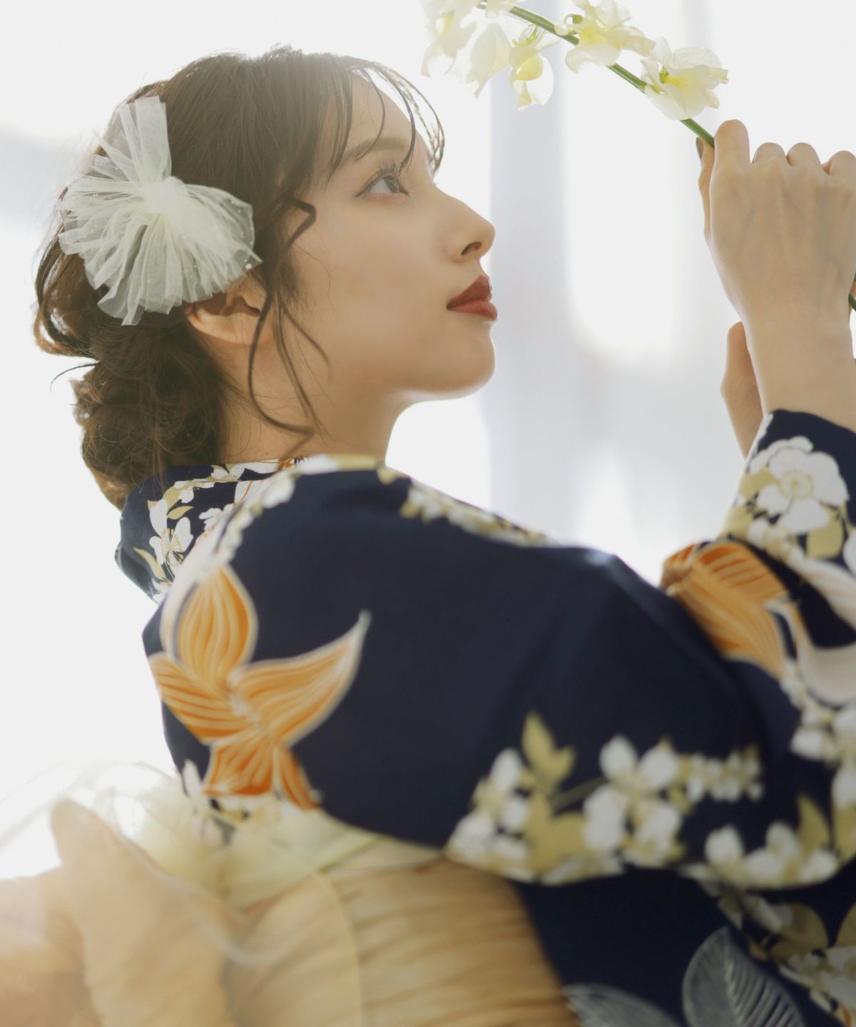(小)空色 タッセル付きフラワーアクセサリー(髪飾り)