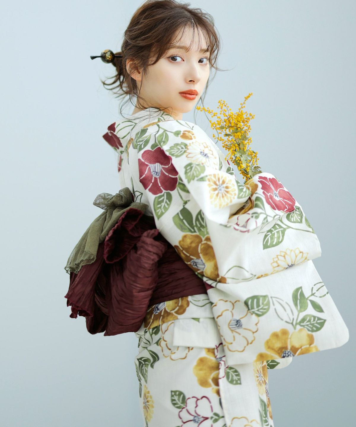 褐色えんじ しわ加工くしゅふわ兵児帯