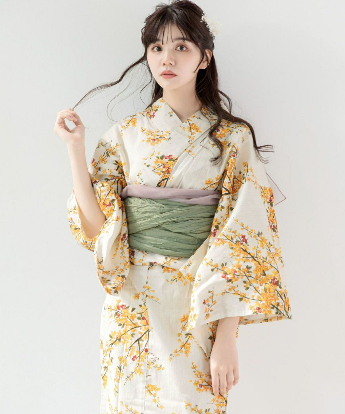 しわ加工くしゅふわ兵児帯 レモンフィズ