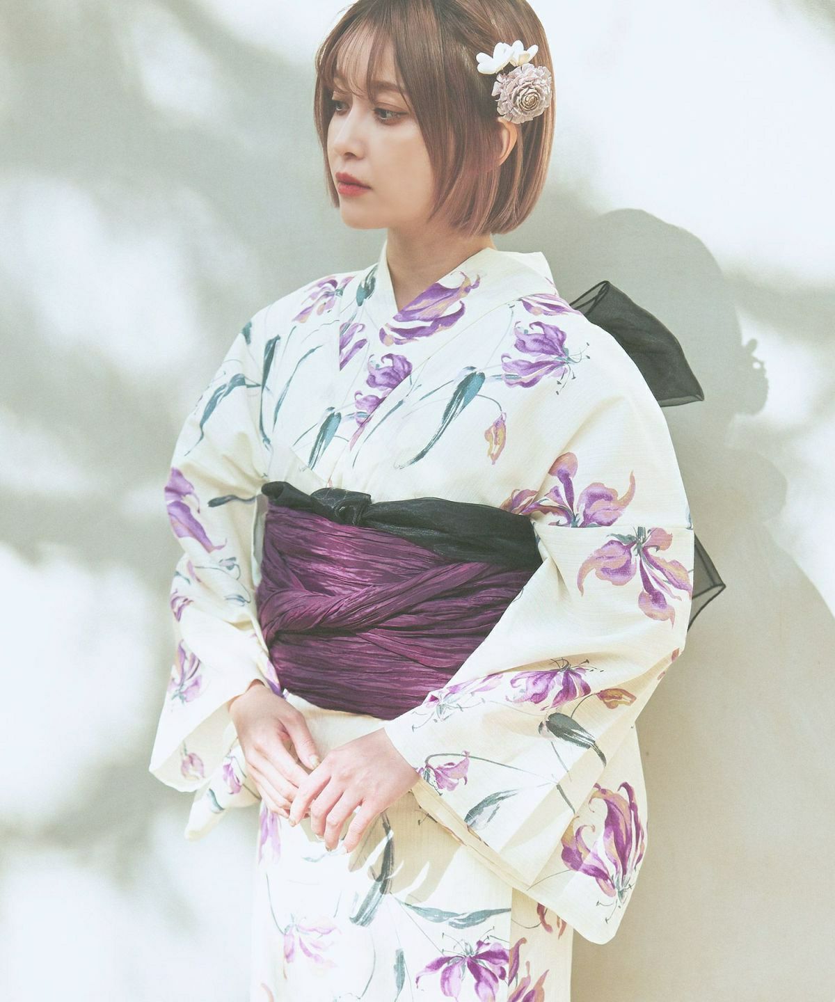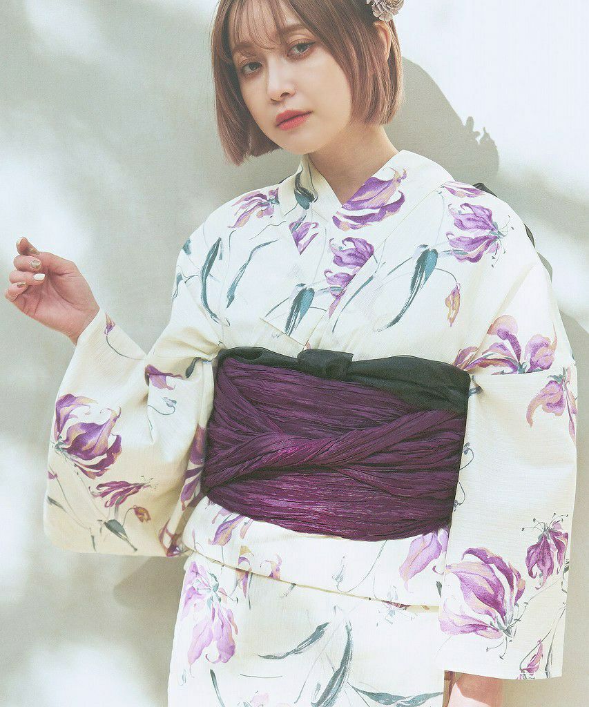 しわ加工くしゅふわ兵児帯 グレープ