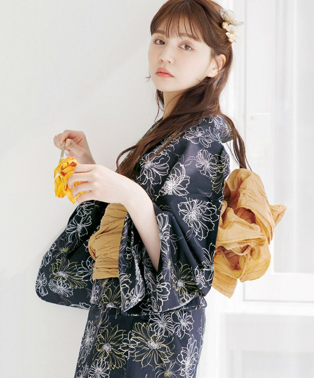 しわ加工くしゅふわ兵児帯 たんぽぽ