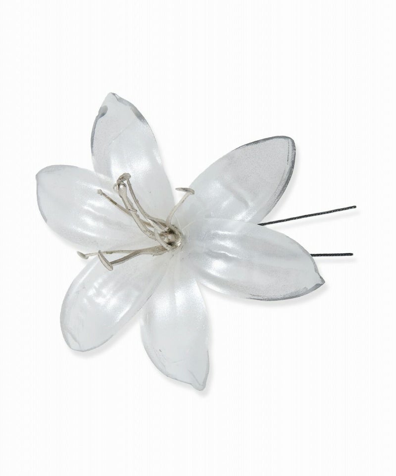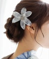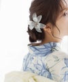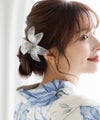 透明感あふれるお花の髪飾り。 サッと挿し込みだけで簡単アレンジ◎ 浴衣や着物などの和装はもちろん、ドレスなどの洋装にもピッタリ! クリアカラーでさりげなくコーディネートを華やかにしてくれるヘアアクセサリーです。