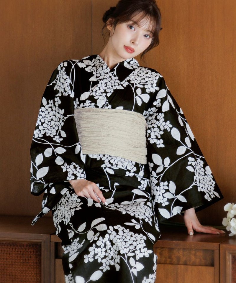 2025 浴衣5点セット(ゆかた・帯・下駄・着付けマニュアル・腰ひも) 霜月の紫陽花しらべ