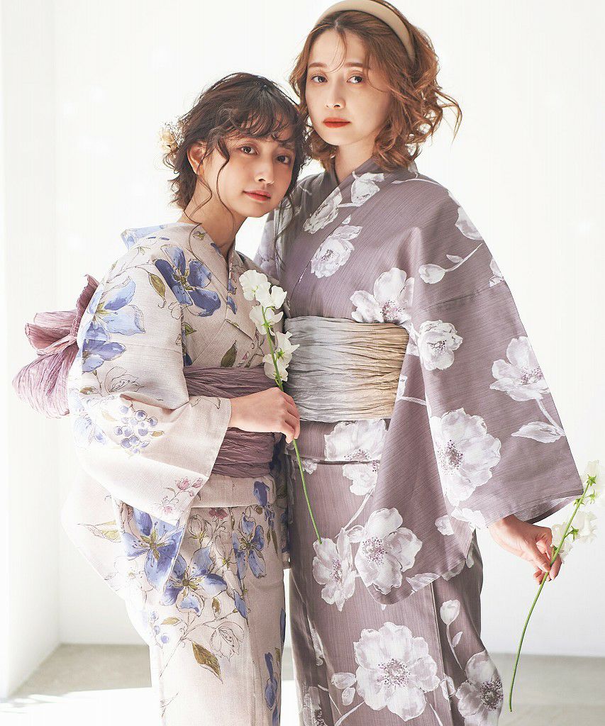 浴衣5点セット(ゆかた・帯・下駄・着付けマニュアル・腰ひも) 如月の幻想しらべ