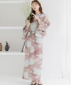 浴衣5点セット(ゆかた・帯・下駄・着付けマニュアル・腰ひも) 梅見月の菊ちらし