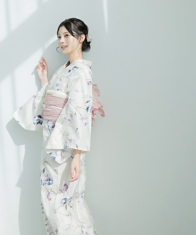 2026 浴衣5点セット(ゆかた・帯・下駄・着付けマニュアル・腰ひも) 【先行予約/5月中旬より順次発送予定】涼風の水彩ひなげし