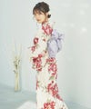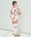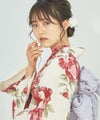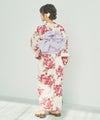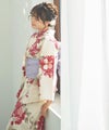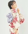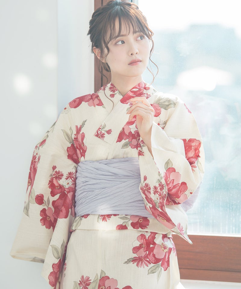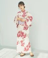 浴衣5点セット(ゆかた・帯・下駄・着付けマニュアル・腰ひも) 生成り地と乙女椿