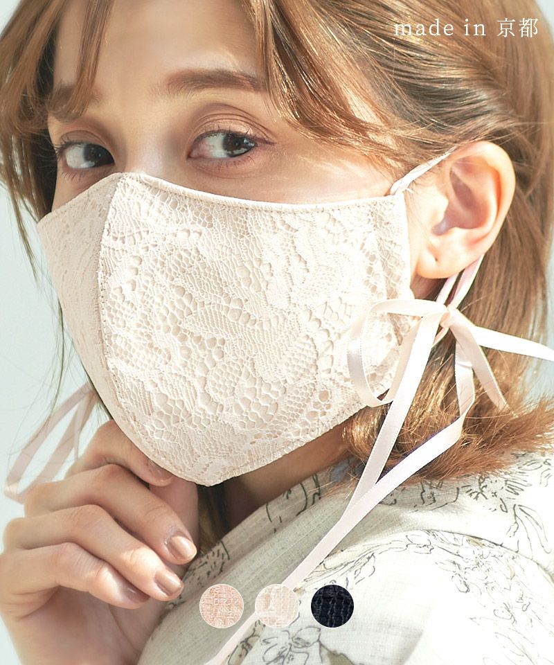【国産】【ゆうパケット】 レースリボンフェミニンファッションマスク/3色