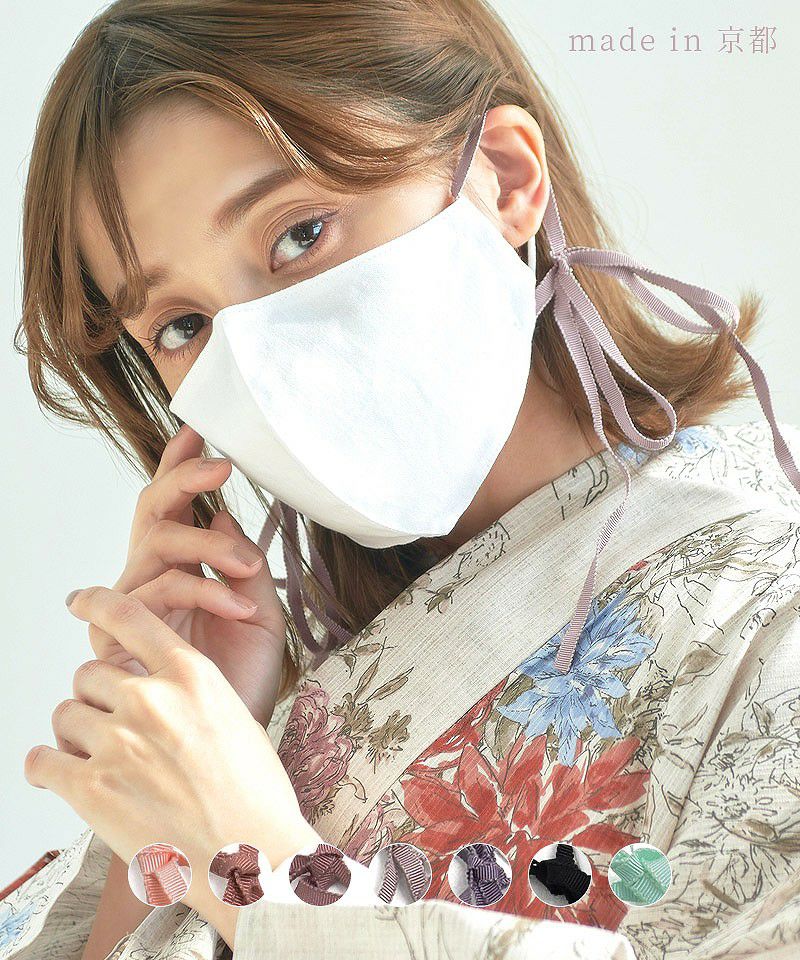 【ゆうパケット】吸水速乾×接触冷感加工のドライタッチ! グログランリボンファッションマスク/全7色