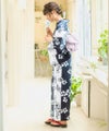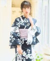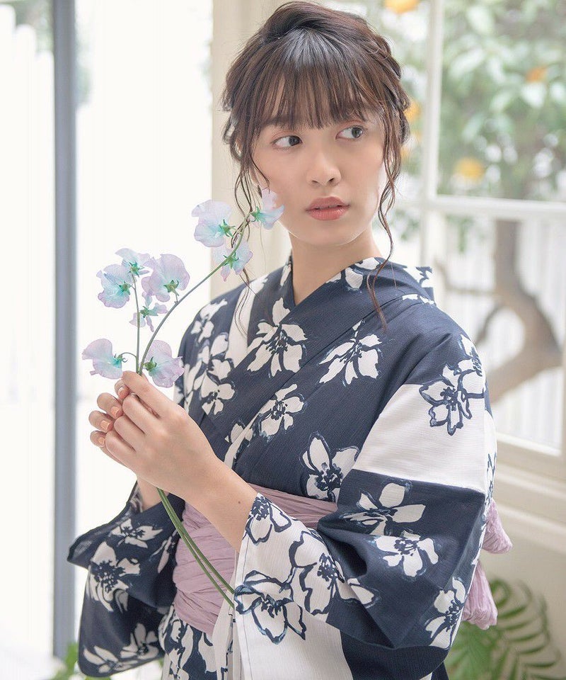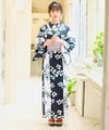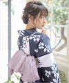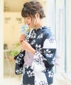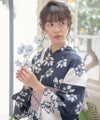 浴衣5点セット(ゆかた・帯・下駄・着付けマニュアル・腰ひも) 如月の藍紺ちらし