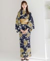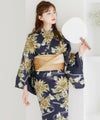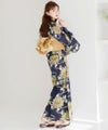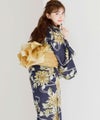 2026 浴衣5点セット(ゆかた・帯・下駄・着付けマニュアル・腰ひも) 夏色の向日葵しらべ(藍)